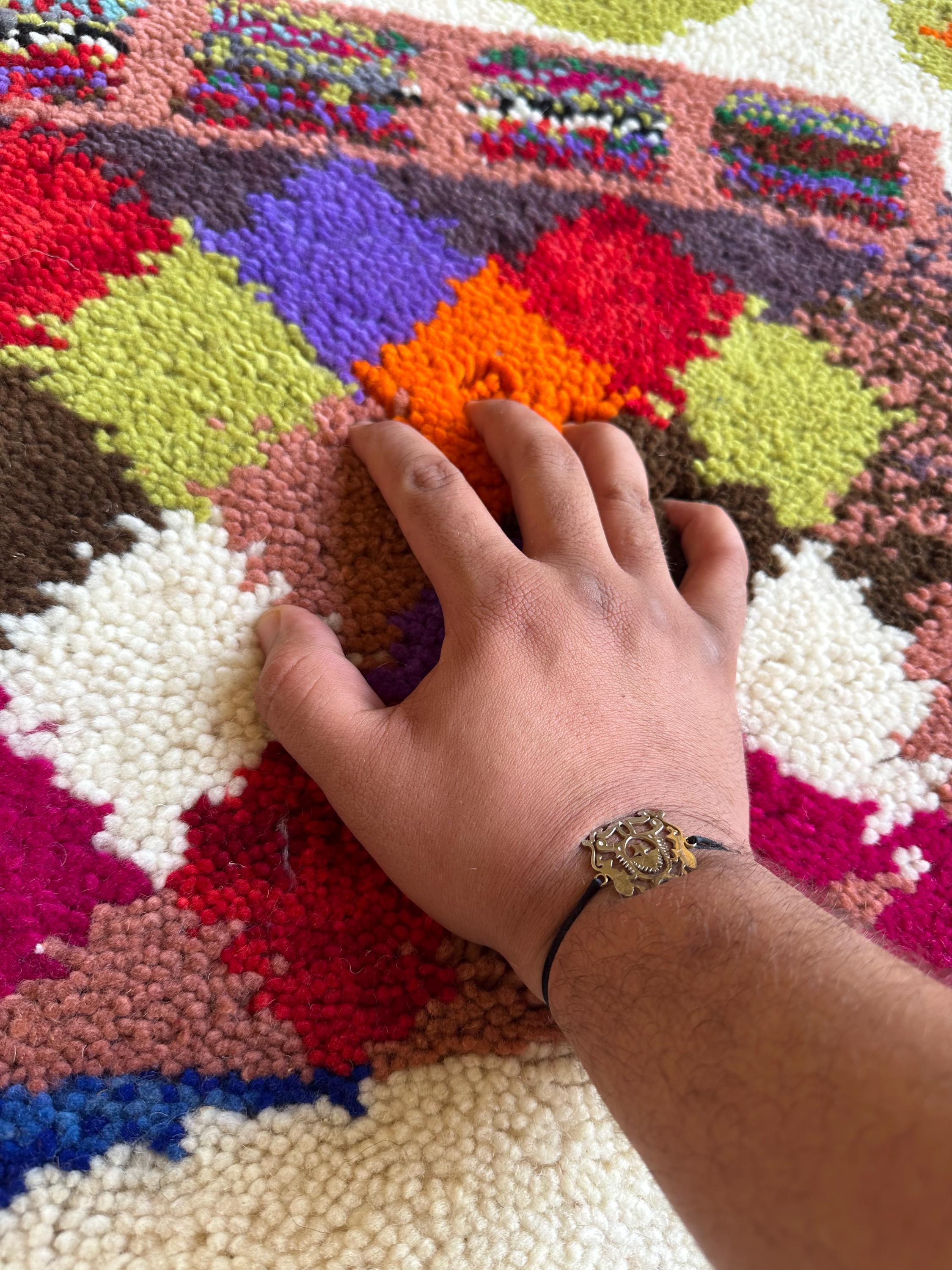 Cultural Significance: A tribute to Berber tradition, these rugs not only enhance your decor but also carry a story of Moroccan heritage, weaving symbols of happiness, protection, and unity.
