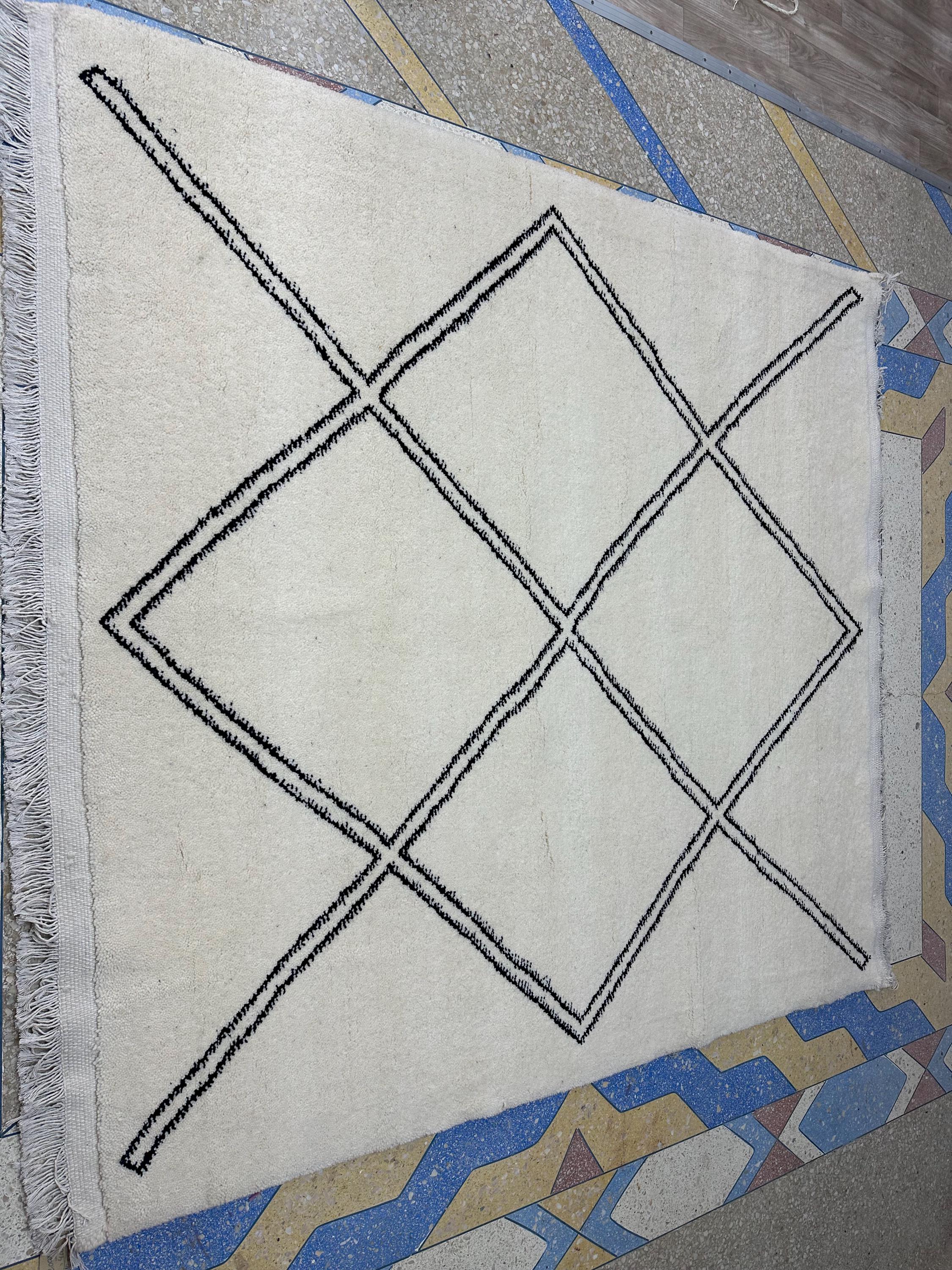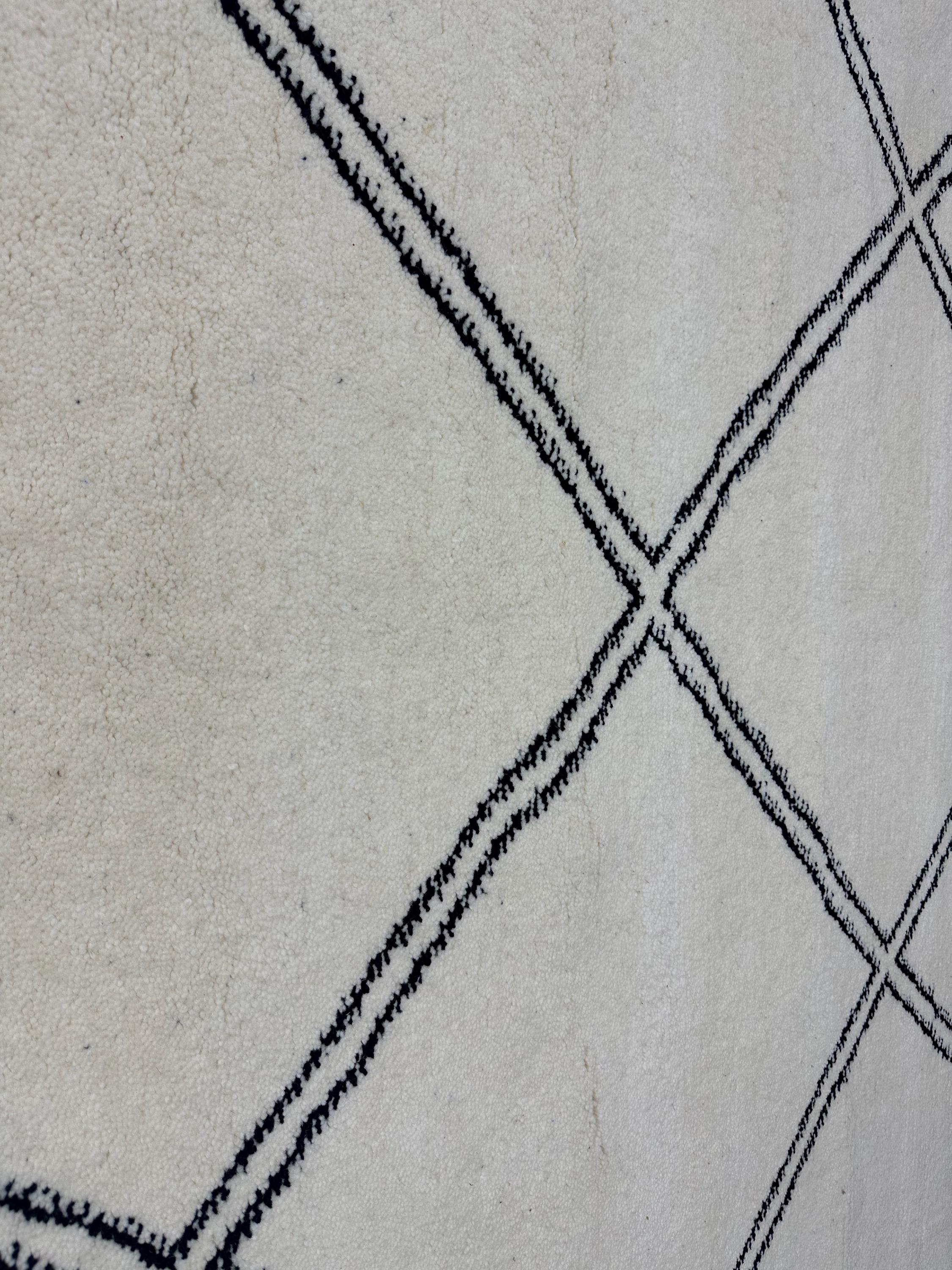 Enhance your home with this White and Black Geometric Beni Ourain Rug, a custom handmade Moroccan wool carpet designed for elegance and comfort. Featuring soft, high-quality wool, this Berber rug brings a modern yet timeless touch to living rooms, bedrooms, and bohemian-inspired interiors.