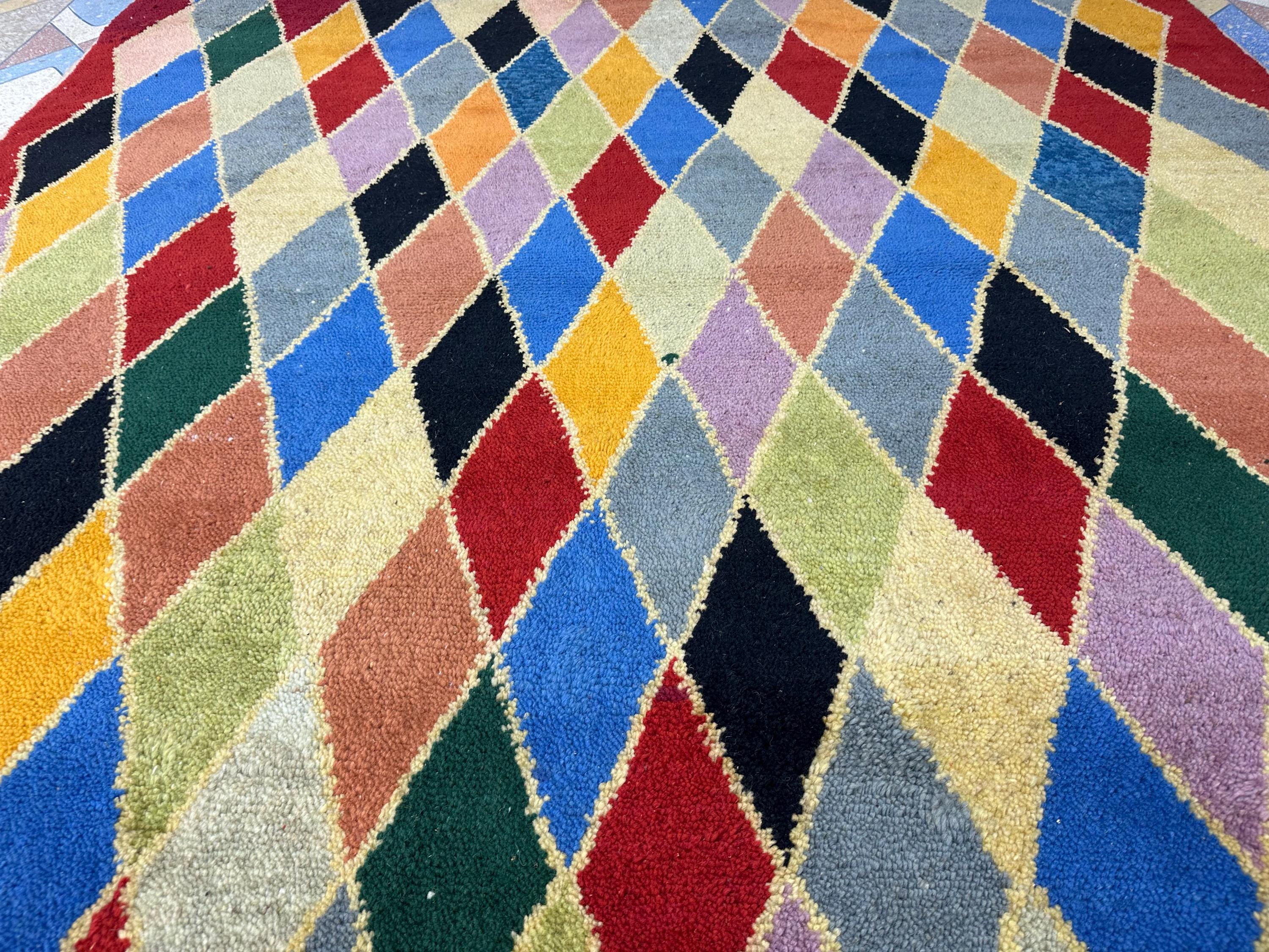Hand-Knotted Checkered Beni Ourain Rug – 10.3 x 6.5ft Moroccan Wool Carpet | Modern Checkerboard Design | Artisan-Crafted Boujaad Wool Rug.