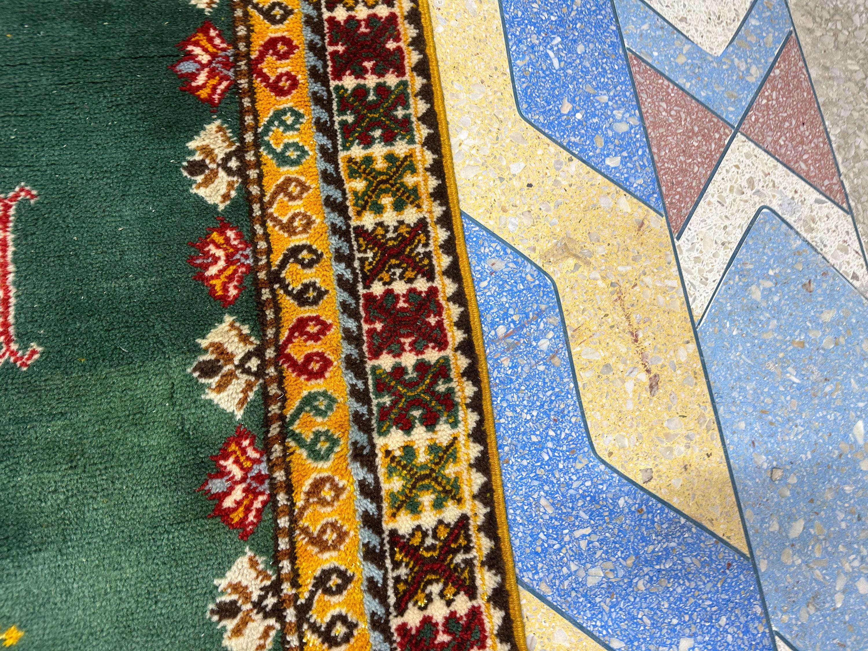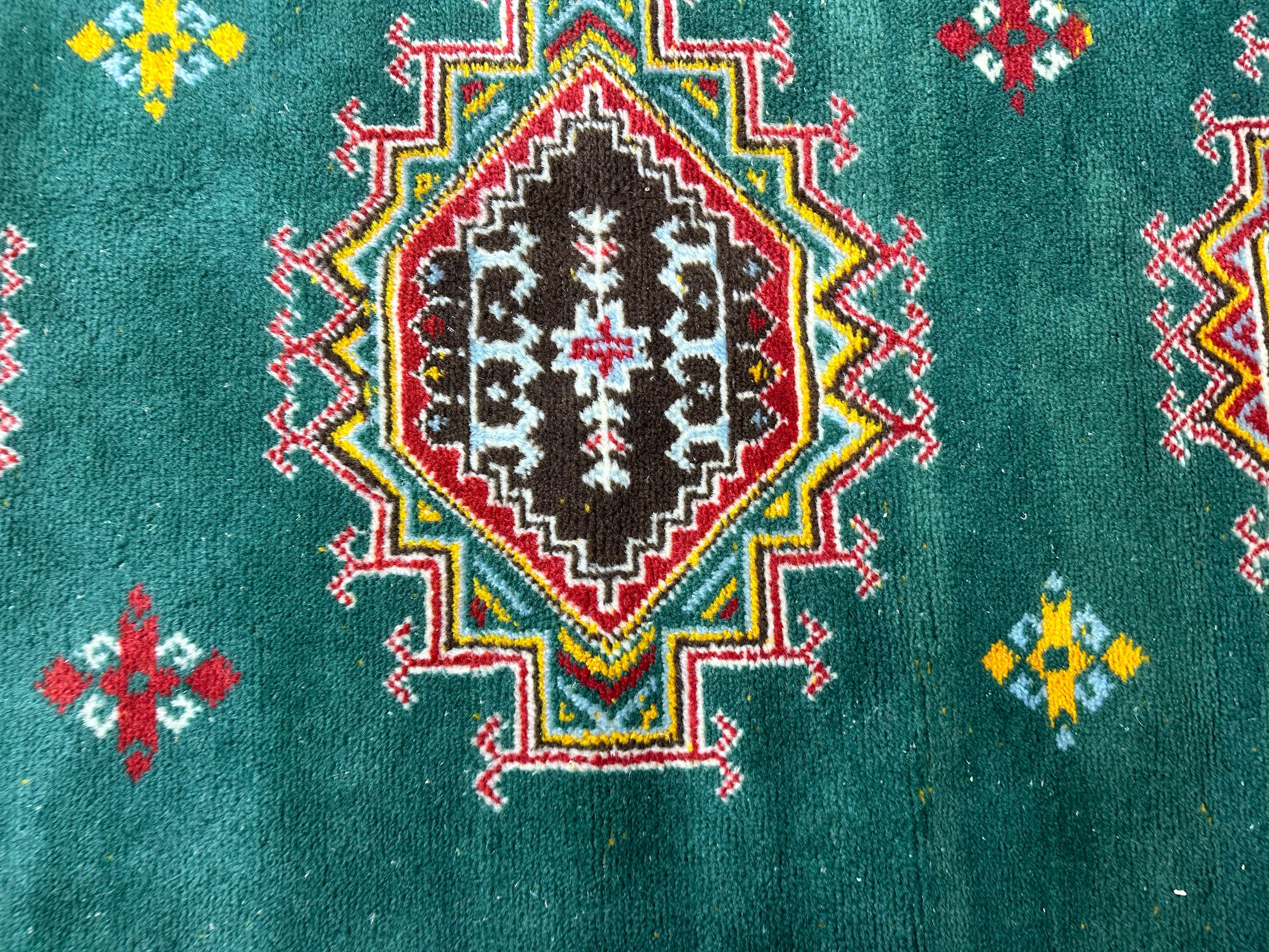 Luxury Royal Green Beni Ourain Rug | Geometric 7.8x4.1FT Handwoven Moroccan Wool Area Rug