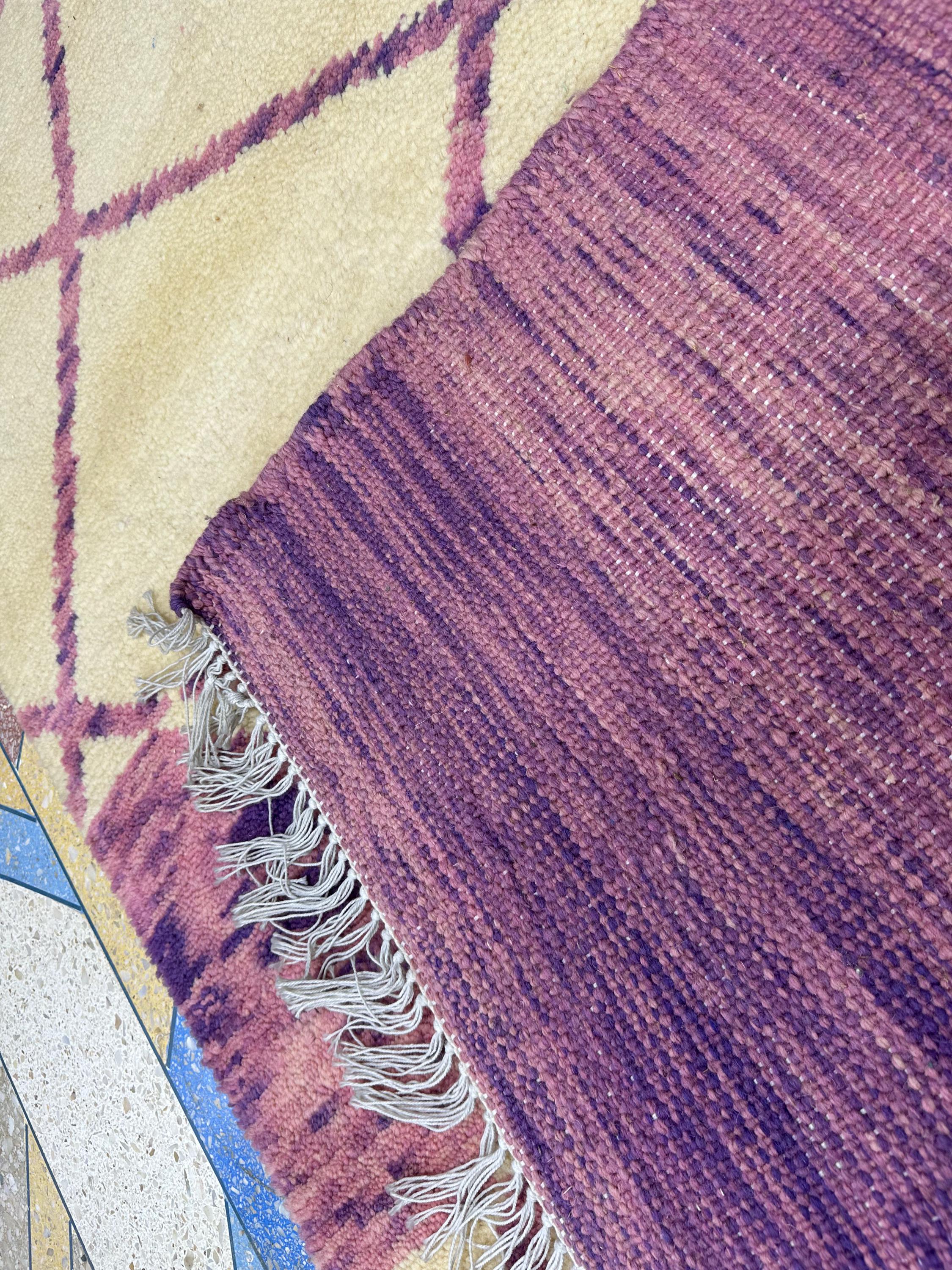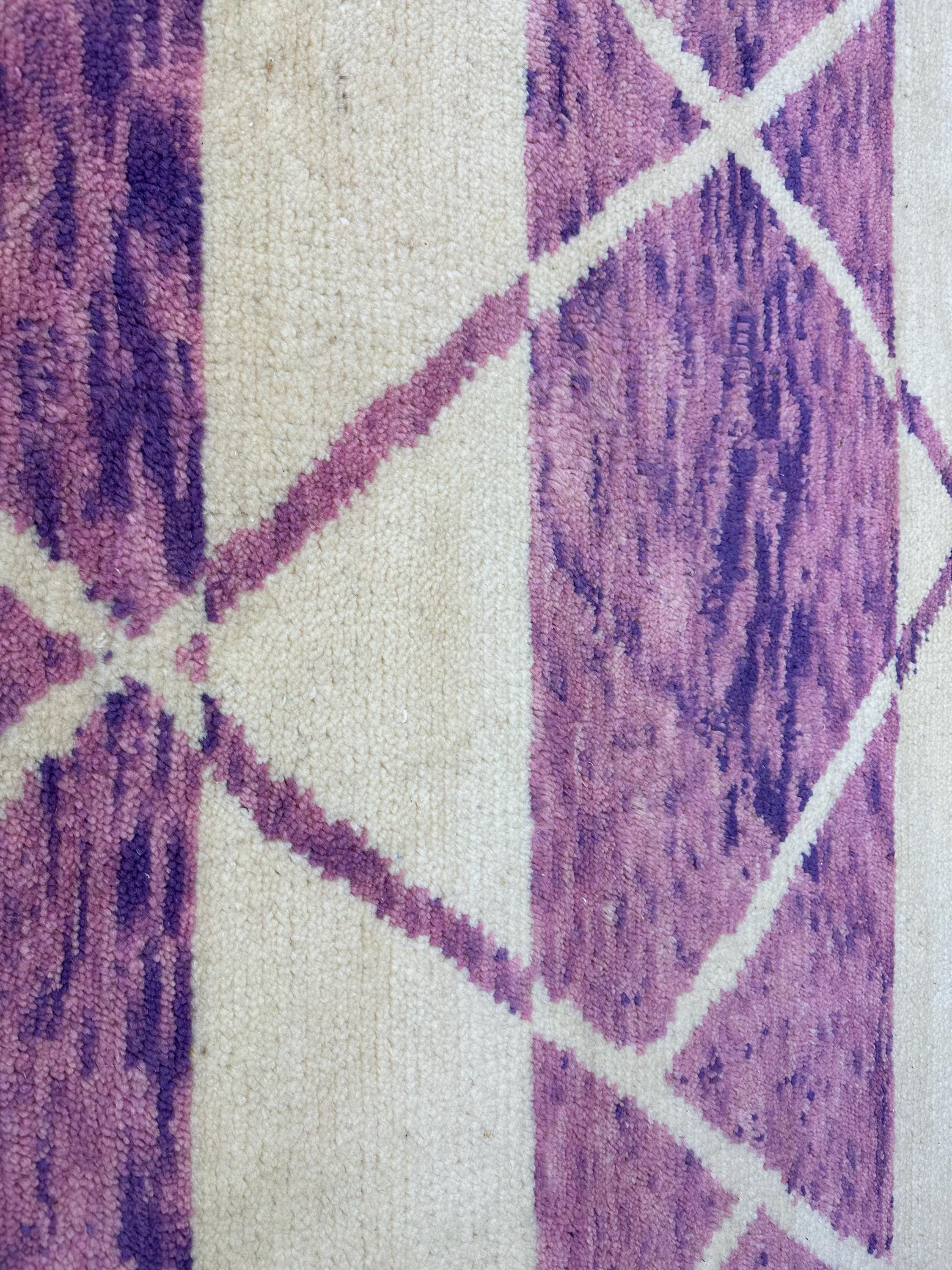 Elegant Handwoven Purple Moroccan Rug, 8.5x4.7Beni Ourain Wool Carpet, Modern Geometric Purple and White Design, Authentic Berber Area Décor