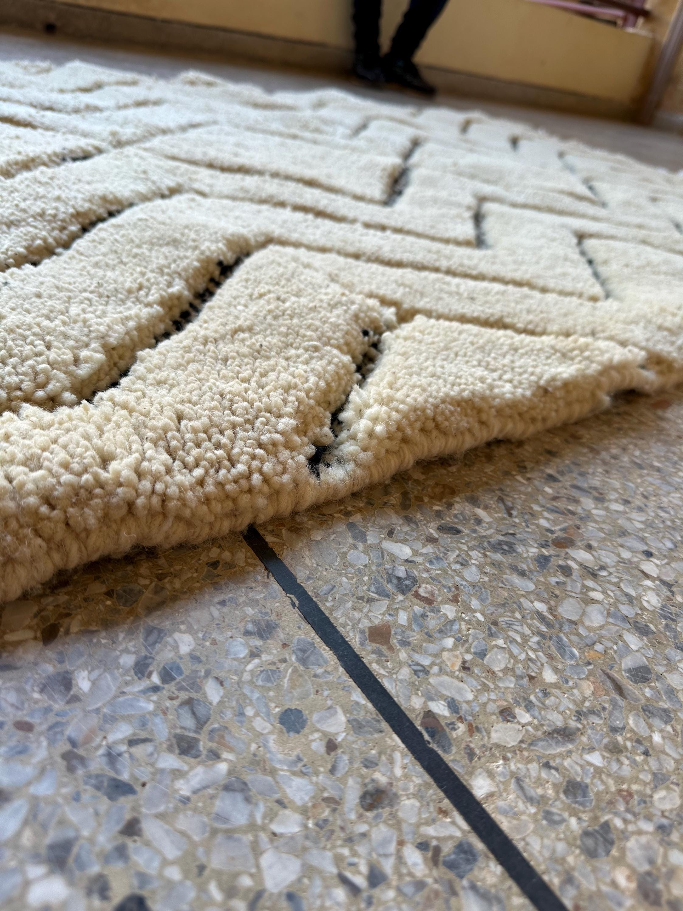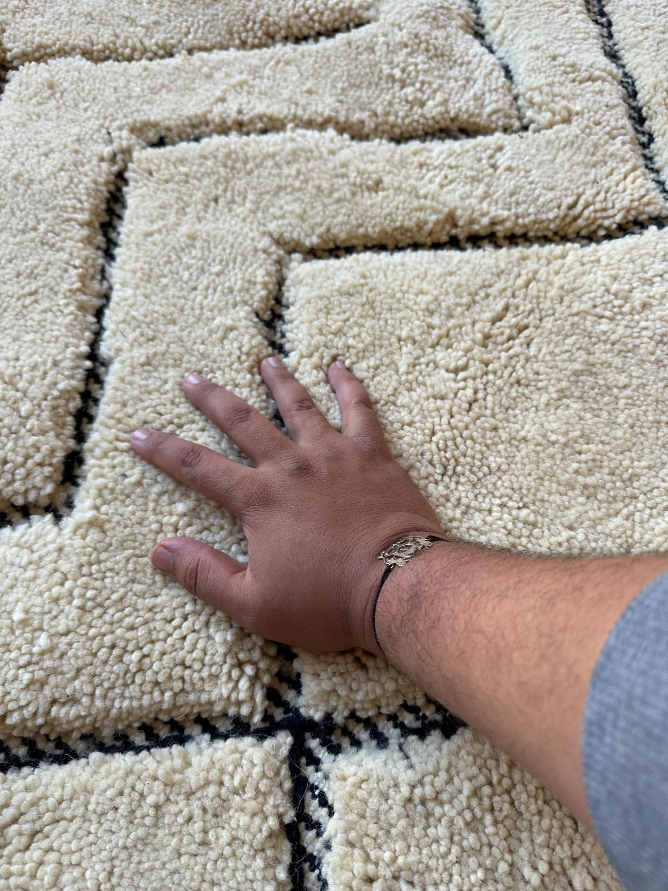 Experience the essence of Moroccan heritage with our 100% authentic Beni Ourain rugs, meticulously handcrafted by Berber artisans from the Atlas Mountains. Made from locally sourced, natural sheep wool, these rugs are both luxurious and eco-friendly, embodying a blend of comfort, elegance, and cultural richness. Their timeless designs and soft, plush texture make them an ideal choice for any home.