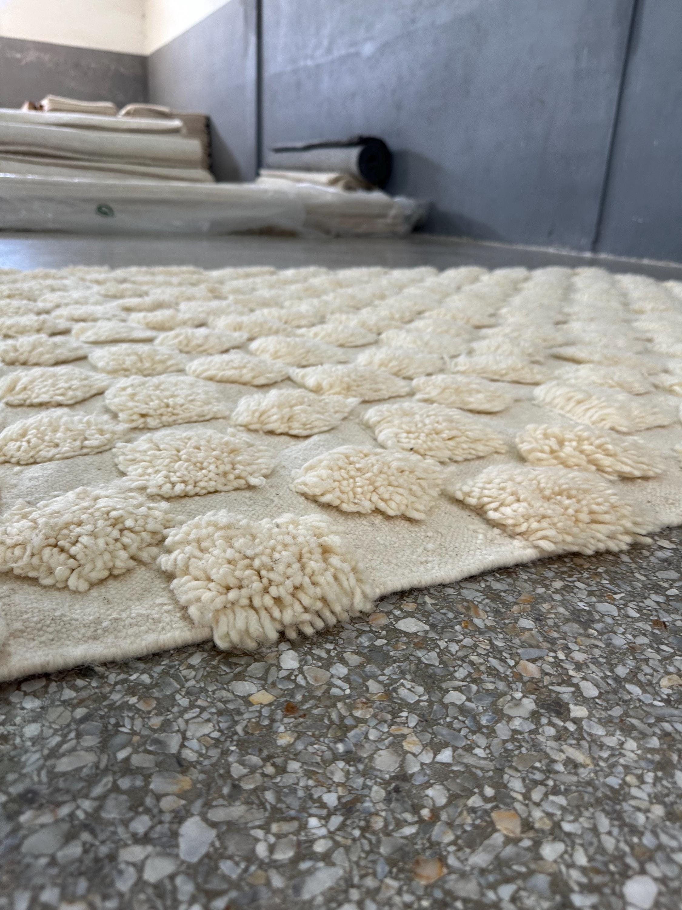 Enhance your living space with this Hand-Tufted Moroccan Checkered White Beni Ourain Wool Rug, meticulously crafted from 100% natural wool. Its timeless checkered design embodies traditional Moroccan artistry, seamlessly blending with Scandinavian-inspired interiors. This custom handmade area rug offers both comfort and style, making it an ideal centerpiece for your living room, bedroom, or any space seeking a touch of elegance.