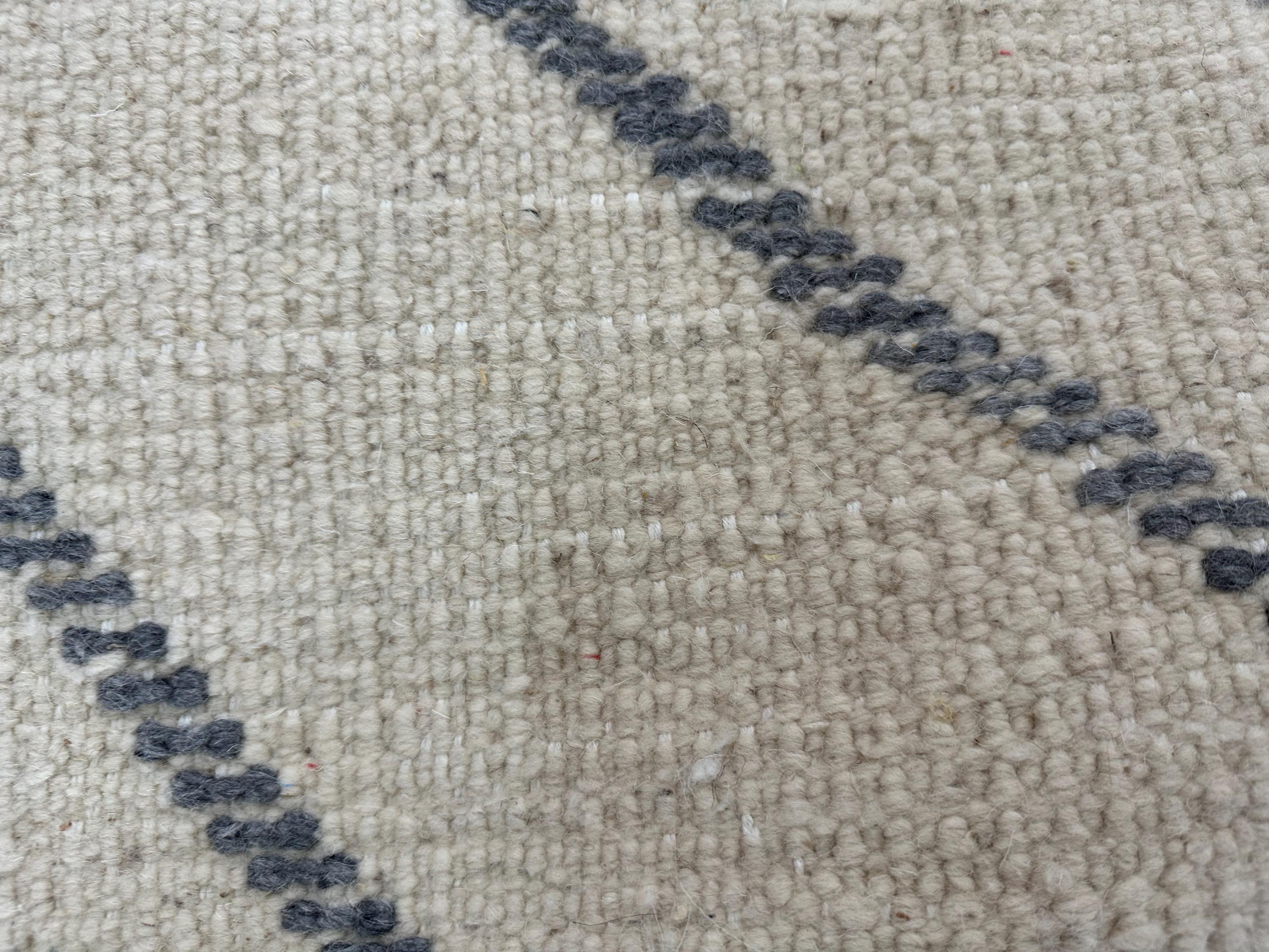 Elevate your living space with this Hand-Tufted Moroccan White and Black Striped Beni Ourain Wool Rug, a perfect blend of traditional craftsmanship and modern design. Handwoven by skilled artisans from the Beni Ourain tribe in Morocco, this rug features a striking white and black striped pattern that complements Scandinavian-inspired interiors. Crafted from premium, soft wool, it offers both comfort and durability, making it an ideal choice for your living room or bedroom.