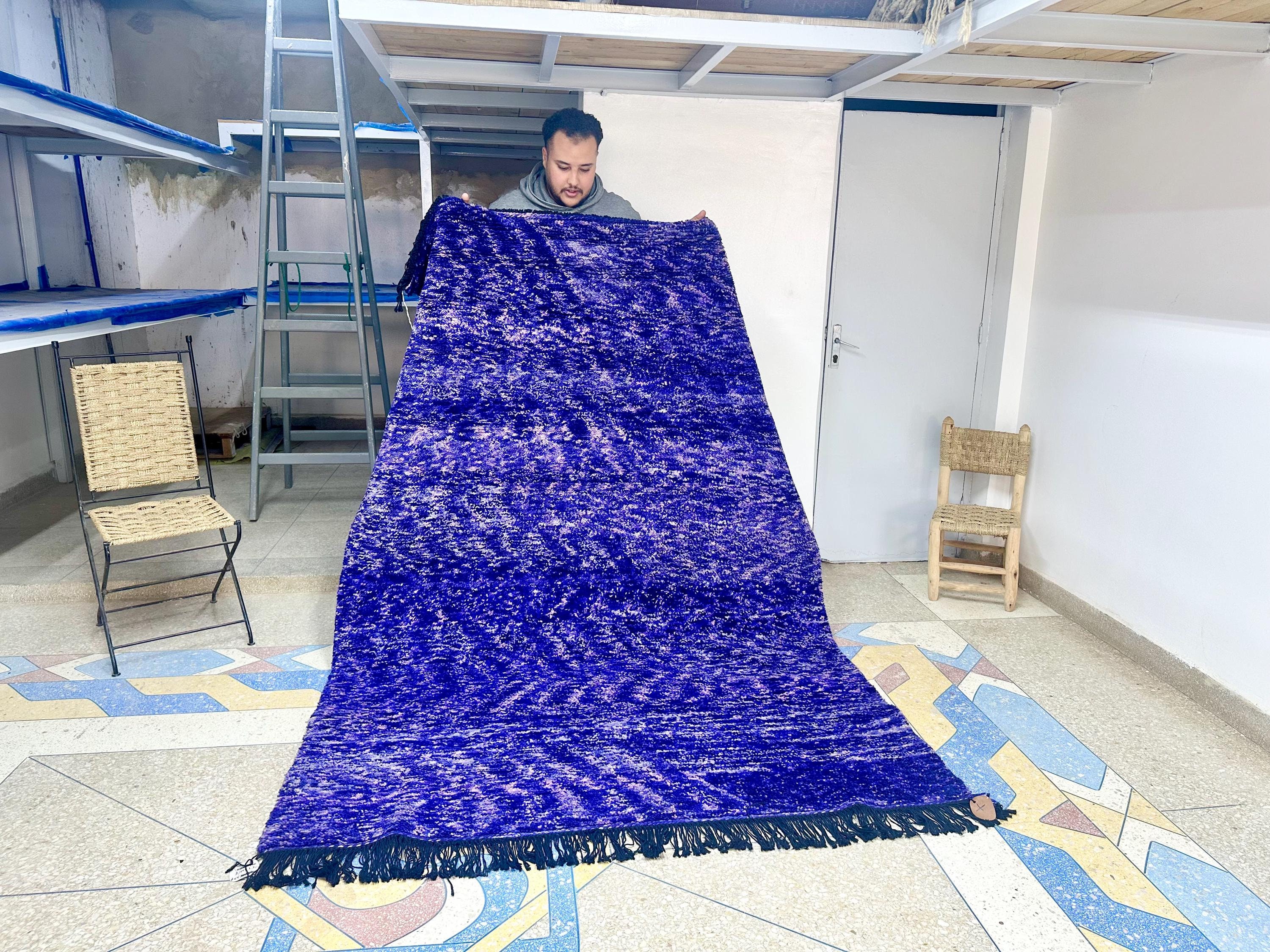 Authentic Moroccan Beni Ourain Rug, Purple Luxurious Handmade Berber Rug, 5.5x8 Abstract Design, Soft Wool Area Rug for Living Room.
