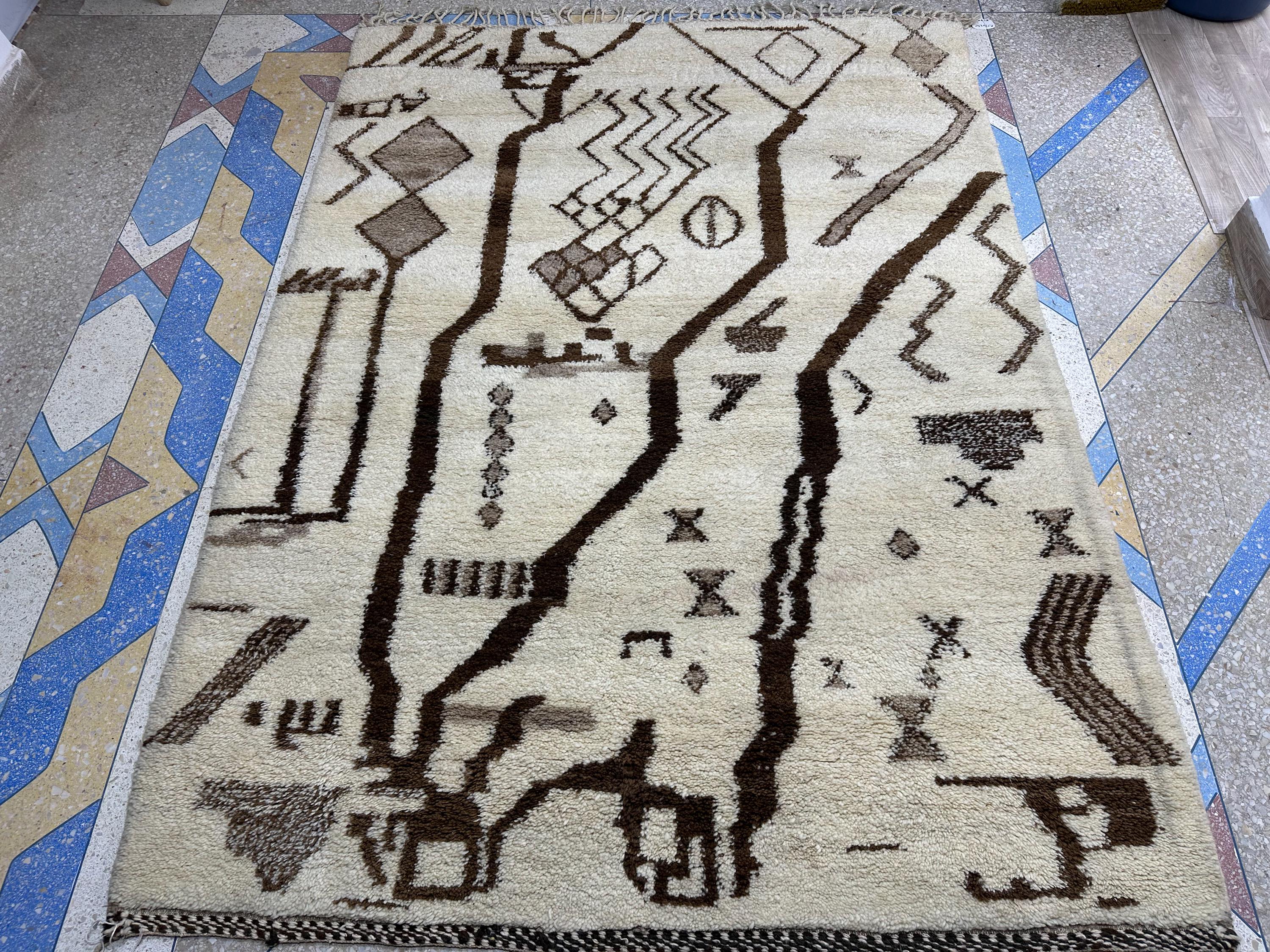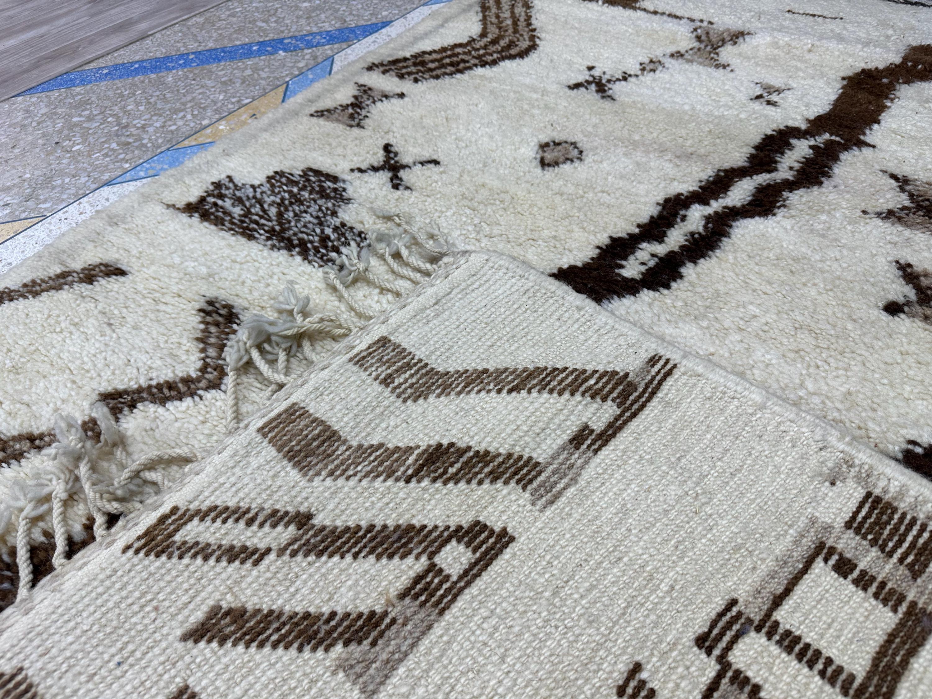 Experience the essence of Moroccan heritage with our 100% authentic Beni Ourain rugs, meticulously handcrafted by Berber artisans from the Atlas Mountains. Made from locally sourced, natural sheep wool, these rugs are both luxurious and eco-friendly, embodying a blend of comfort, elegance, and cultural richness. Their timeless designs and soft, plush texture make them an ideal choice for any home.