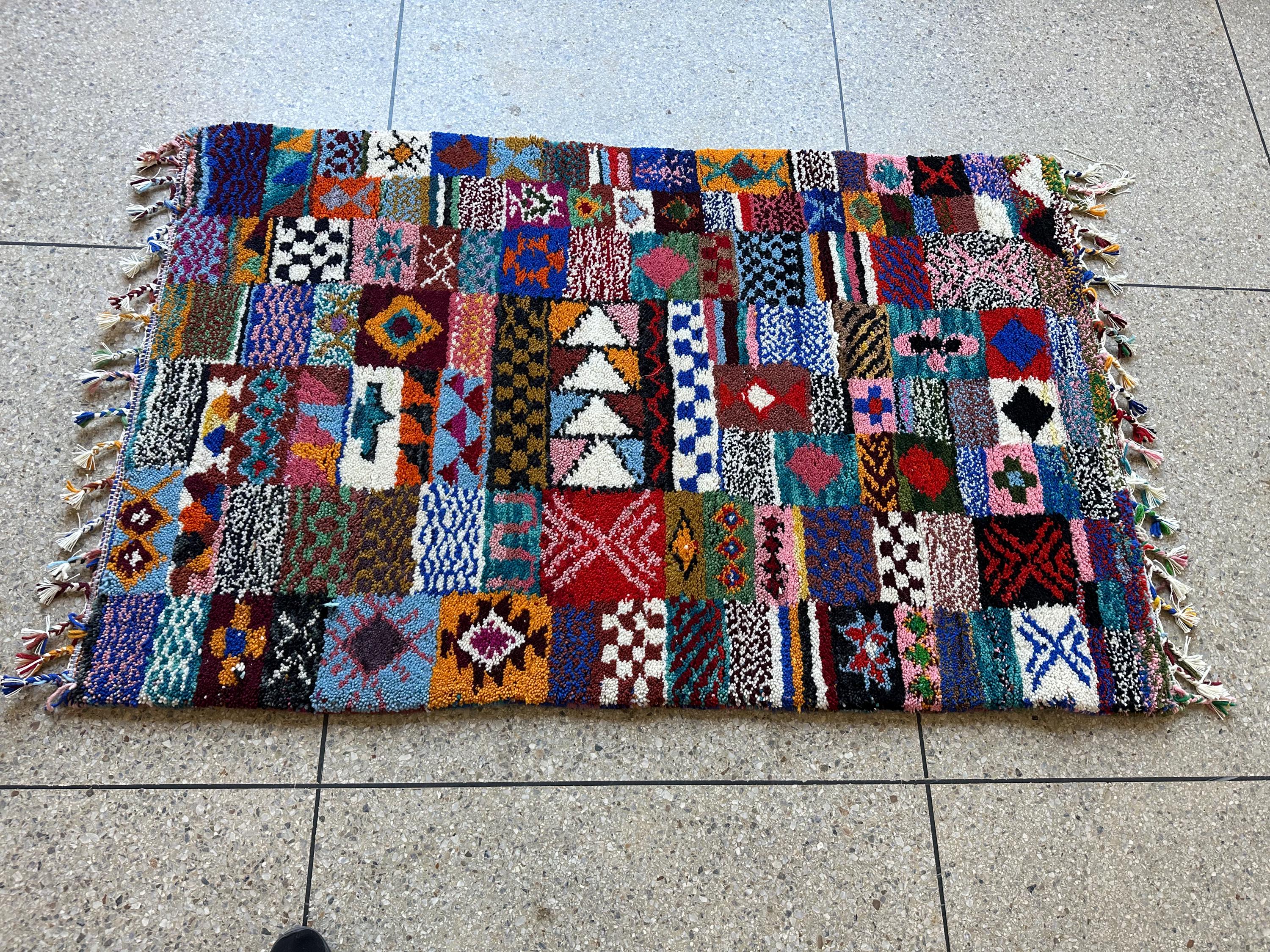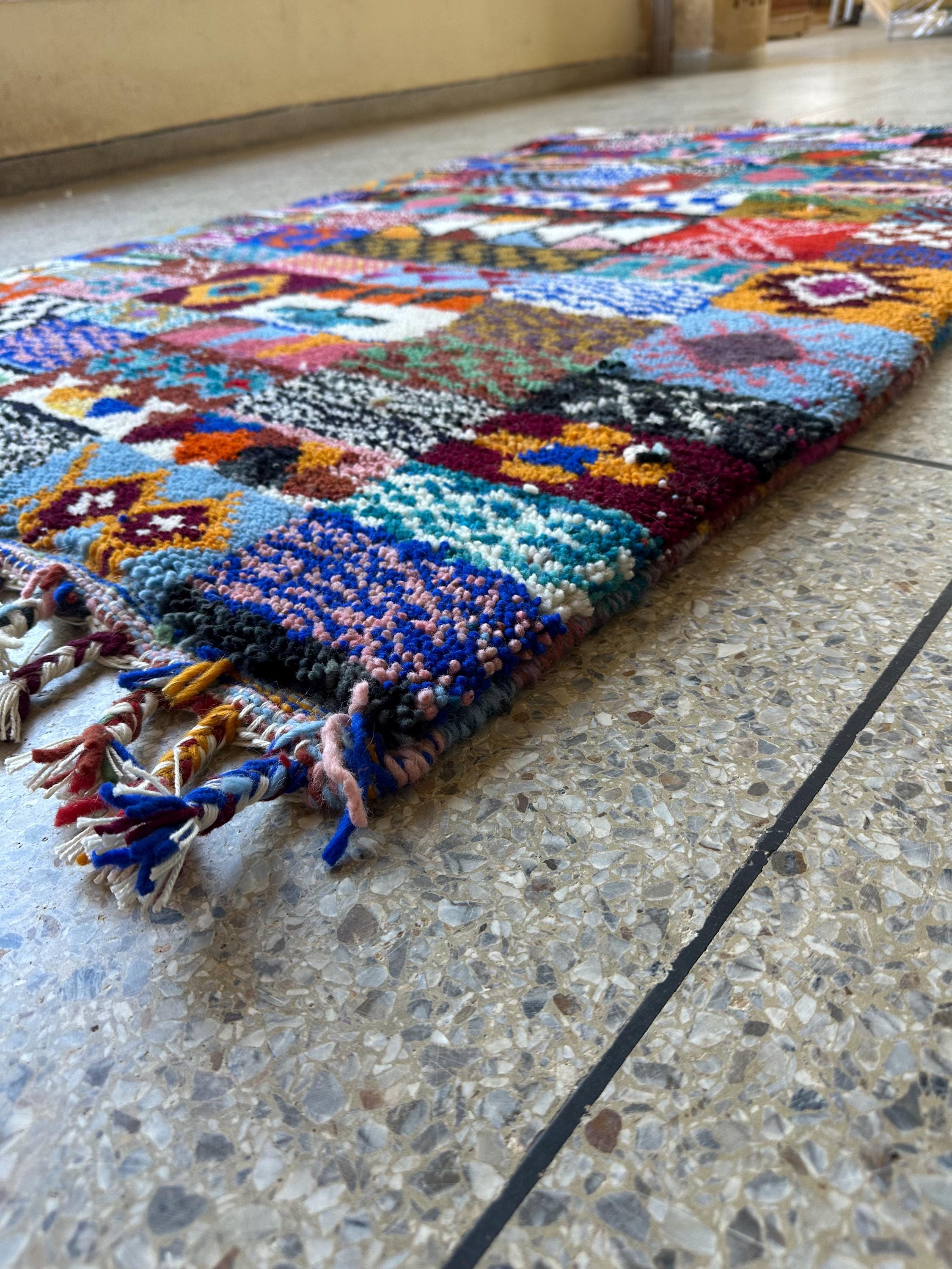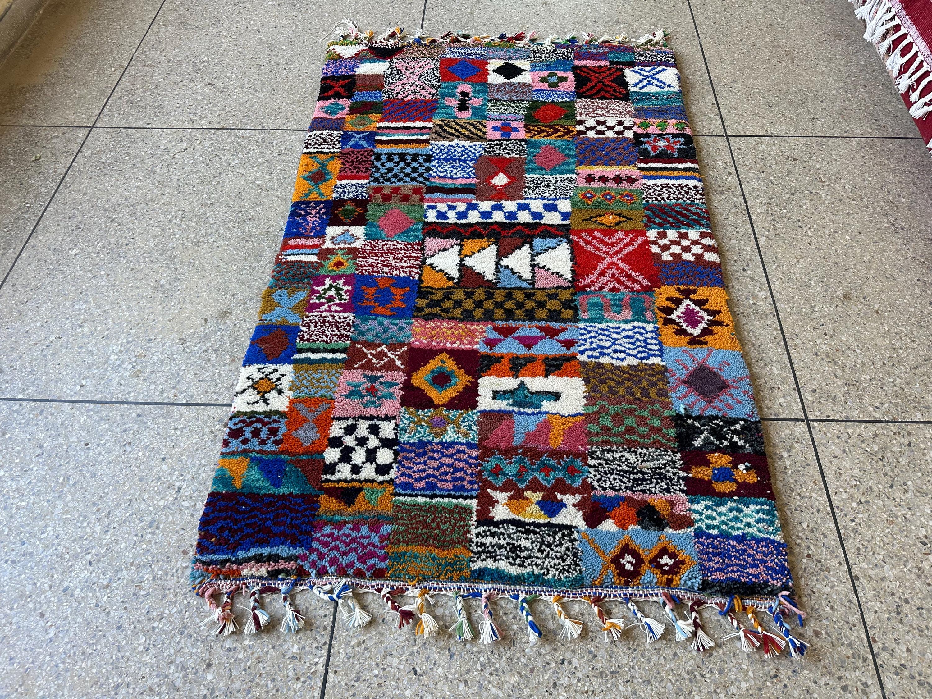 Colorful Moroccan Beni Ourain Rug, Handmade Wool Shaggy Area Rug, 4x6FT Berber Carpet, Decorative Boho Chic Rug