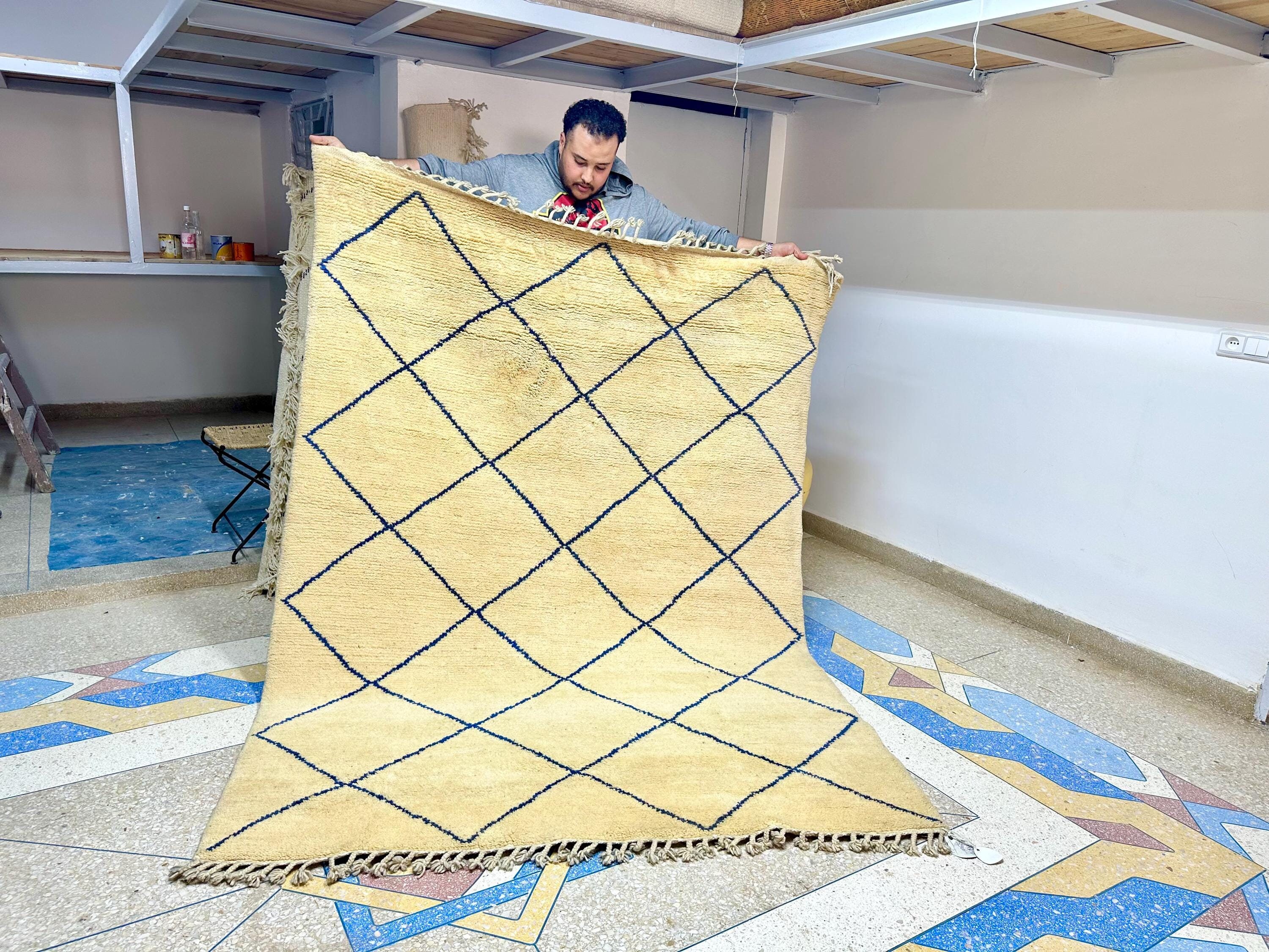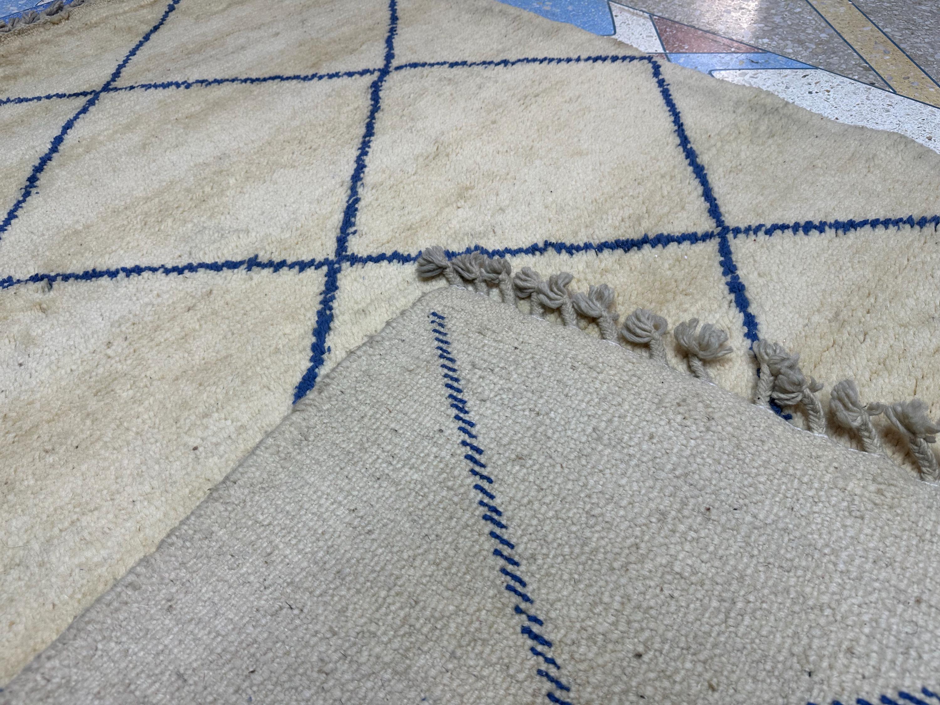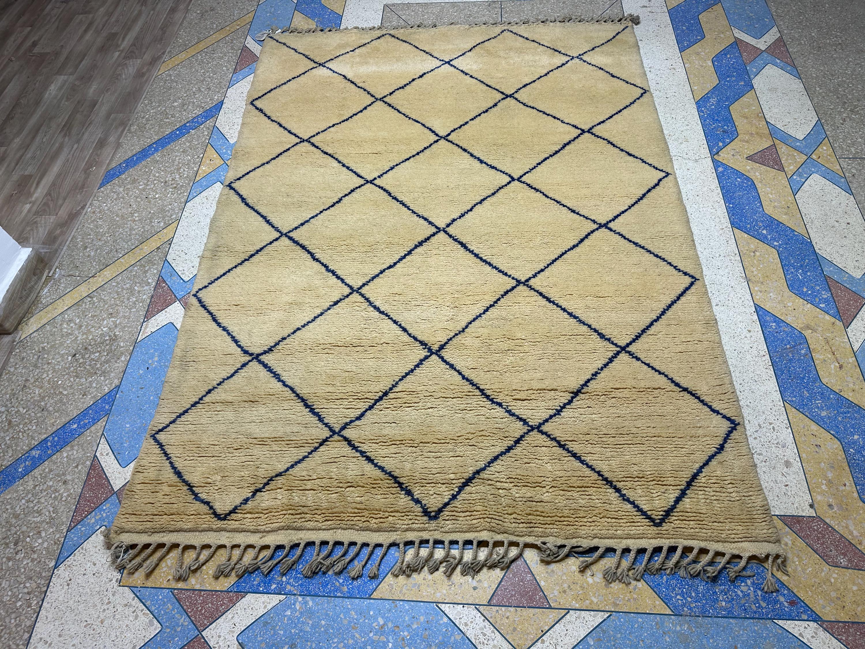AMAZING IVORY RUG, 7.4x5.6FT Moroccan Handmade Wool Rug For Your Home Design, Famous Diamond Design, Handwoven from Blue Wool of Sheep