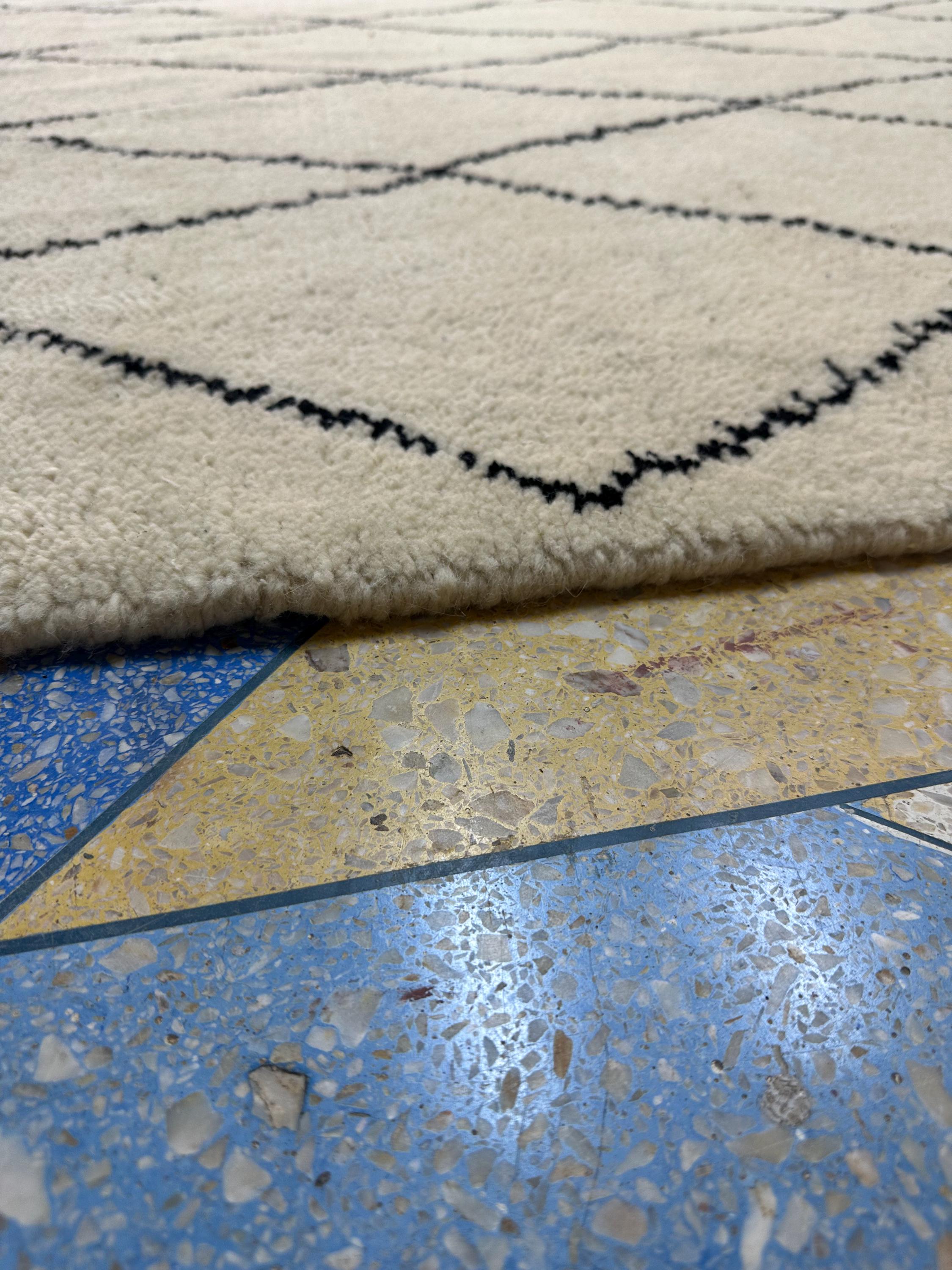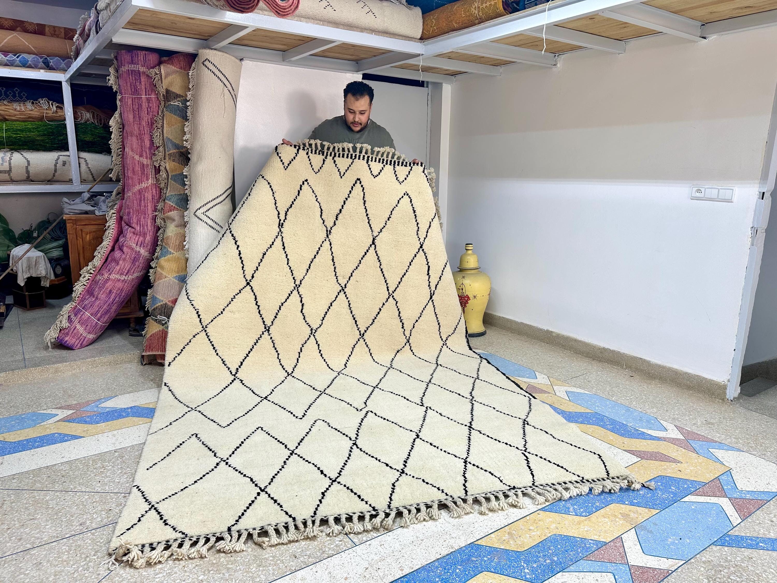 Experience the essence of Moroccan heritage with our 100% authentic Beni Ourain rugs, meticulously handcrafted by Berber artisans from the Atlas Mountains. Made from locally sourced, natural sheep wool, these rugs are both luxurious and eco-friendly, embodying a blend of comfort, elegance, and cultural richness. Their timeless designs and soft, plush texture make them an ideal choice for any home.
