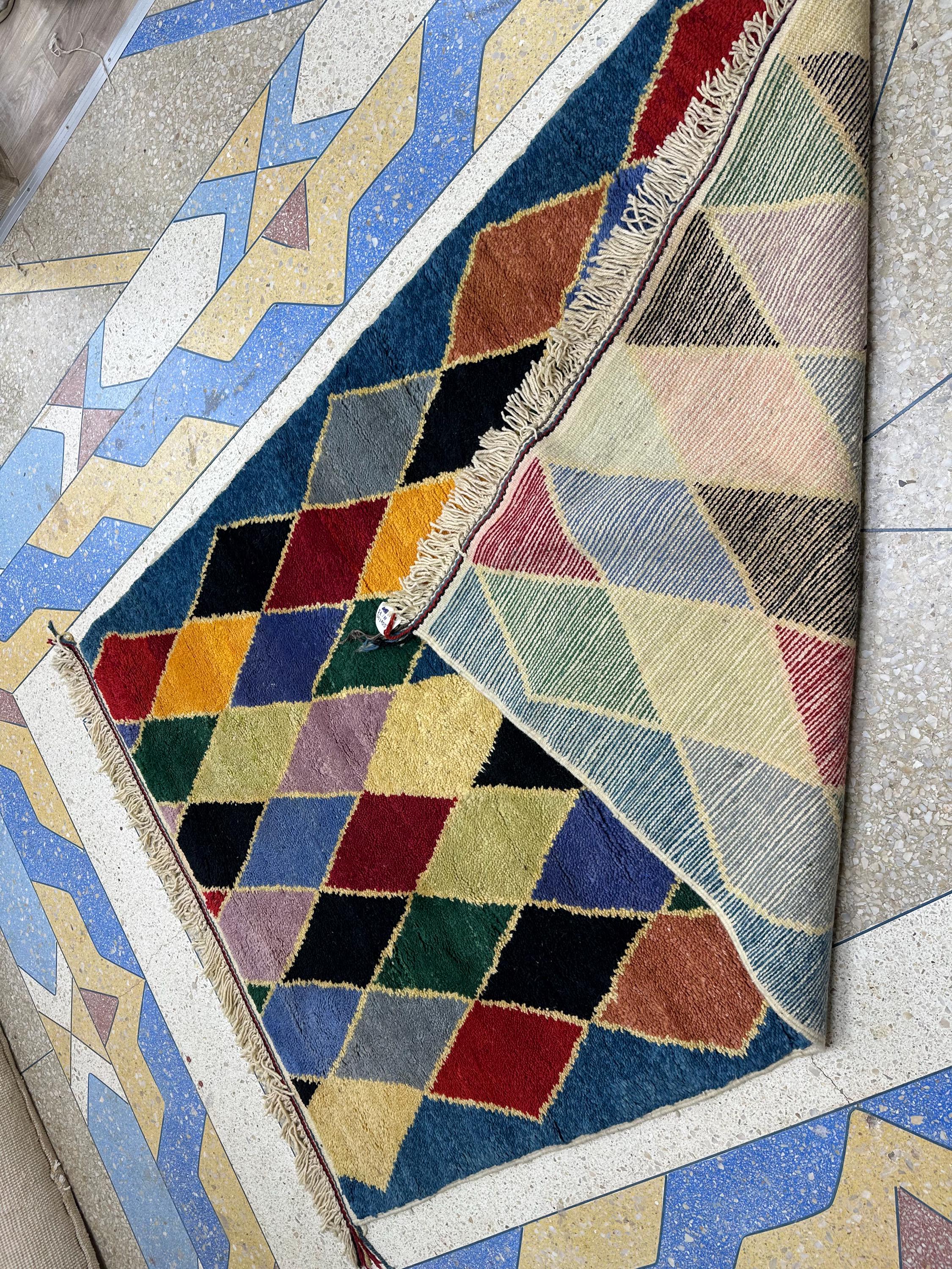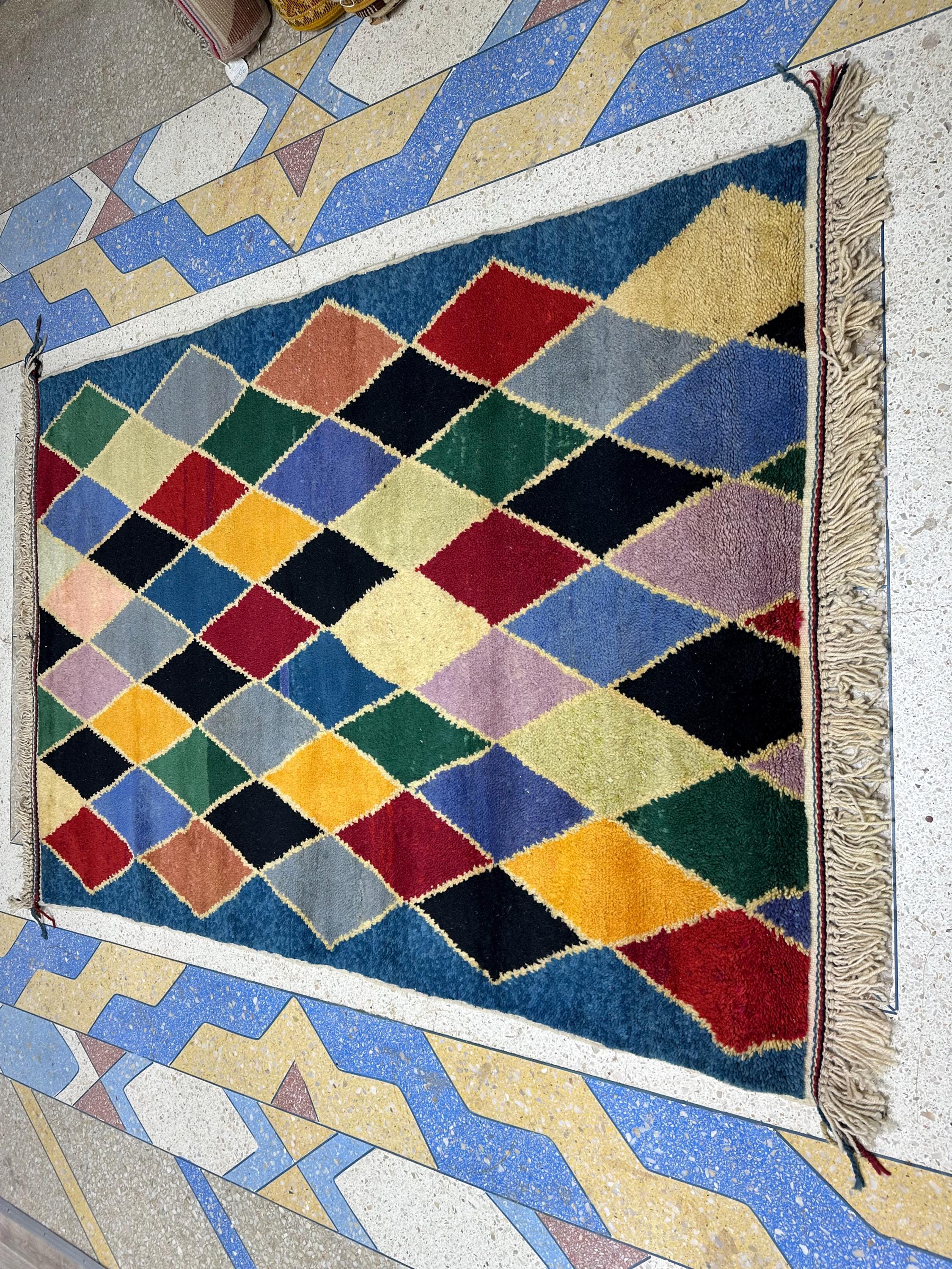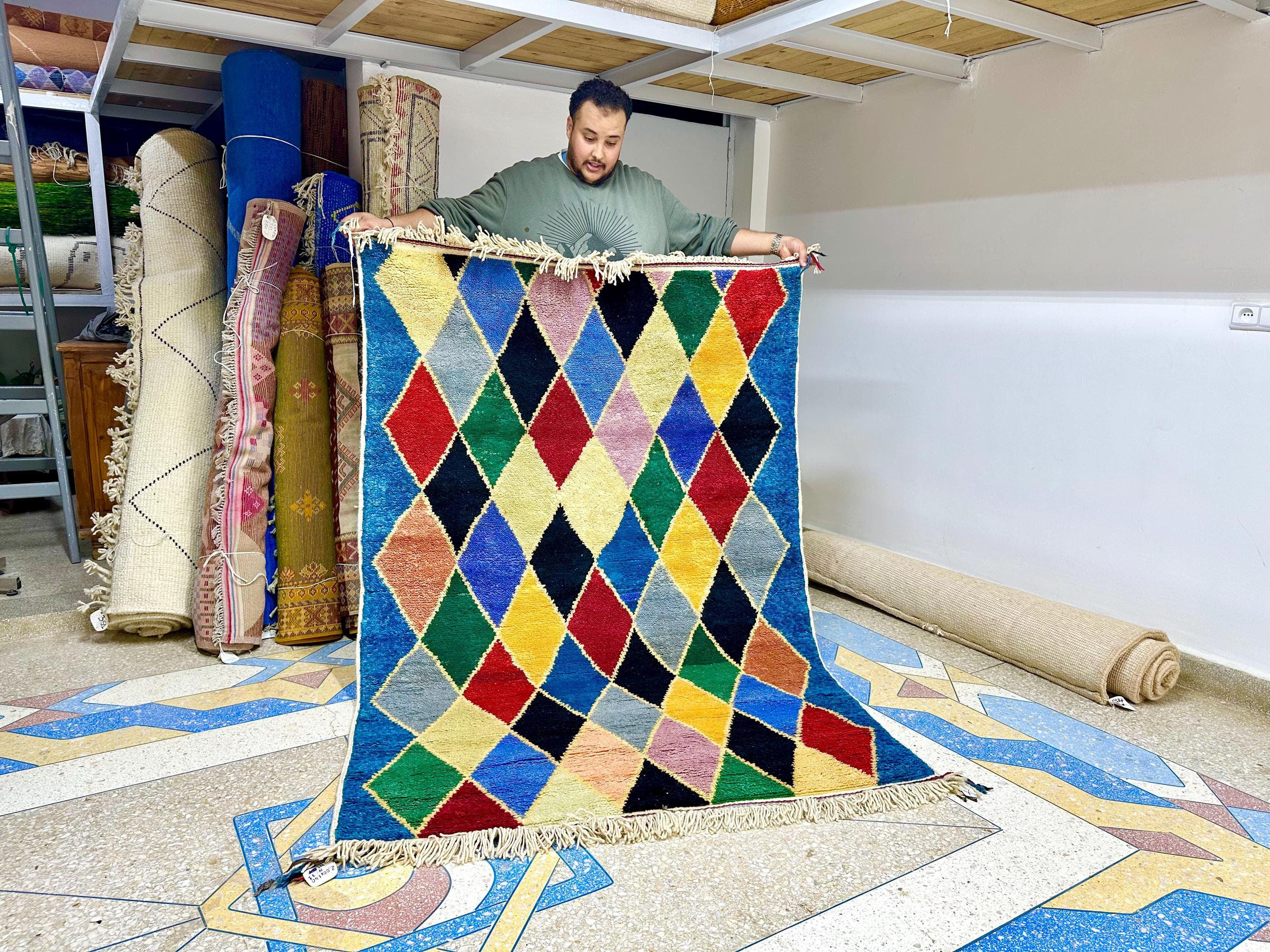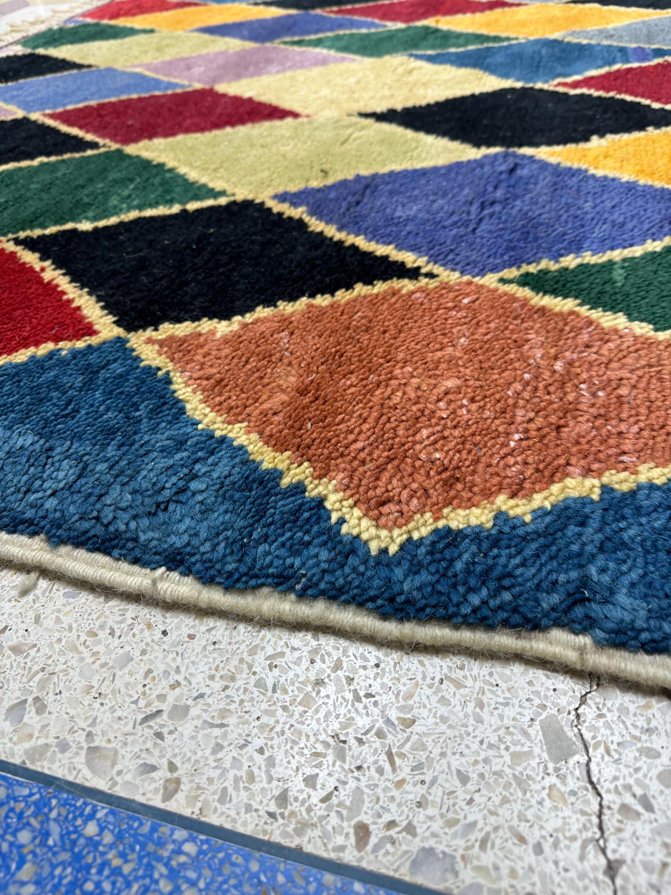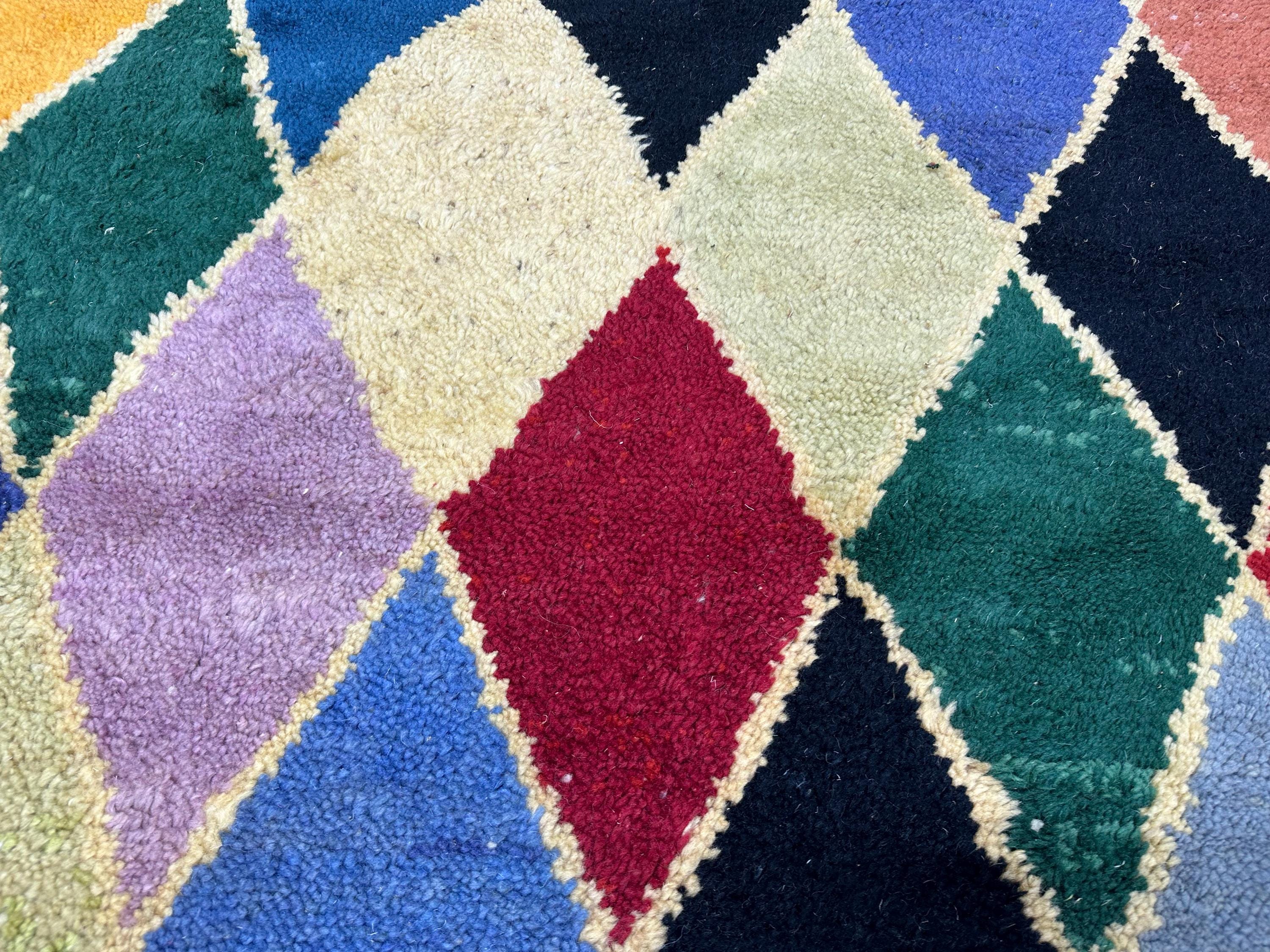 Colorful Handwoven Moroccan Rug, 6.5x4.5FT Beni Ourain Wool Carpet, Modern Multicolor Checkered Design, Authentic Berber Home Décor Accent