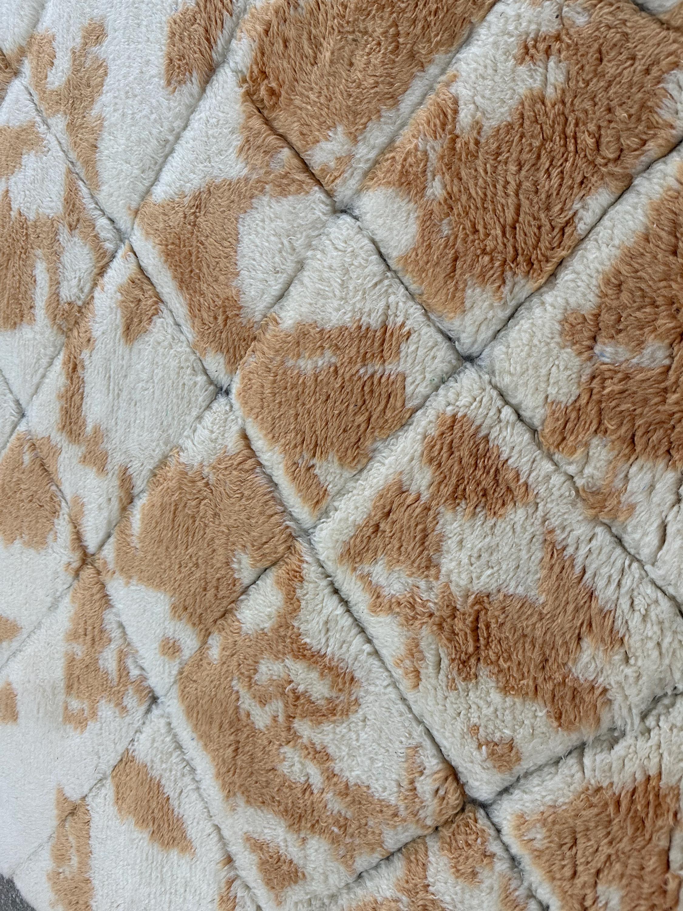 Elevate your space with this Hand-Tufted Geometric Moroccan Rug, a custom Beni Ourain wool rug in elegant white and brown tones. Crafted for luxury and comfort, its abstract design adds a modern touch to living rooms, bedrooms, or contemporary interiors. Handmade with soft, premium wool, this area rug blends tradition with minimalist elegance.