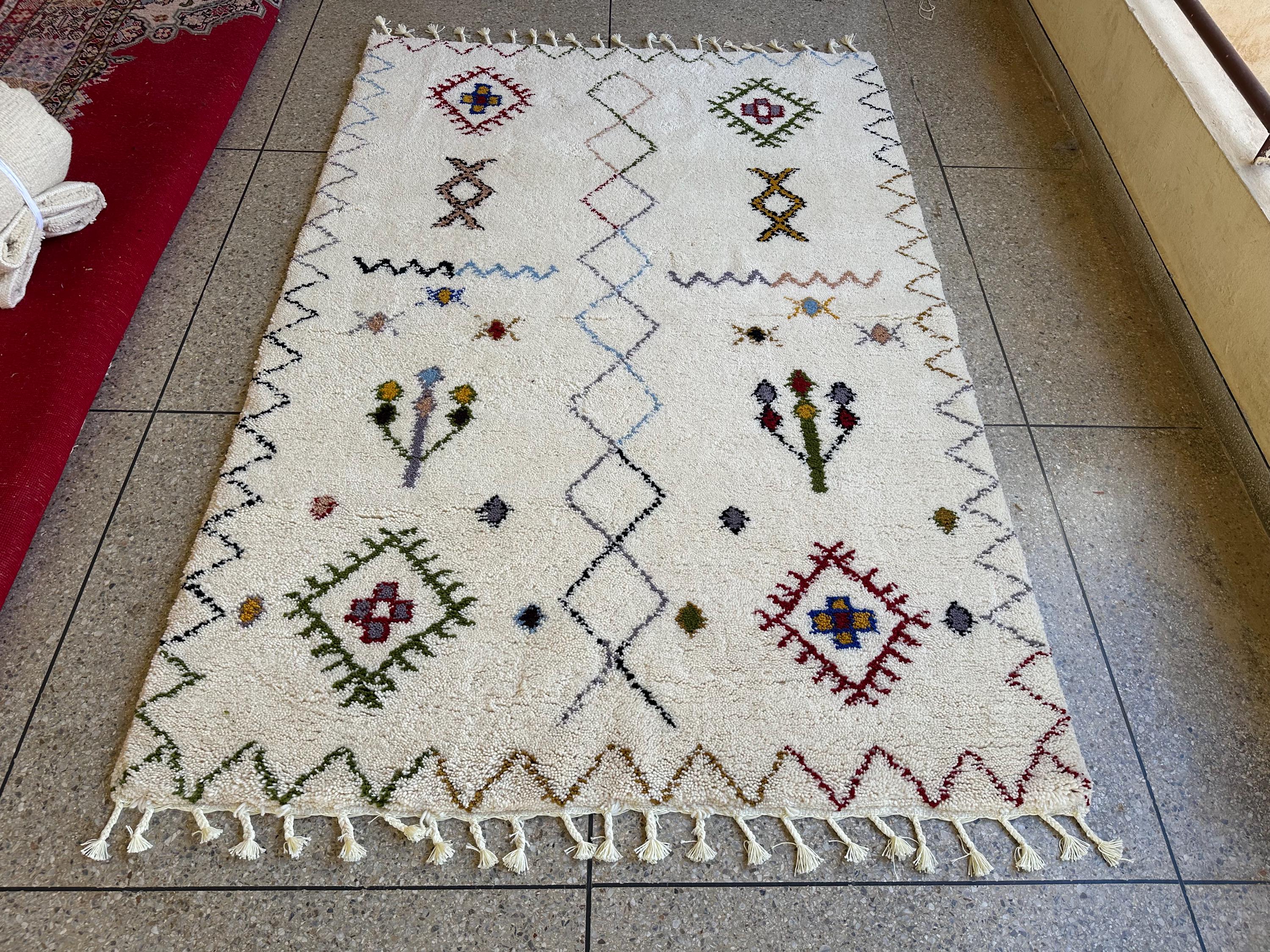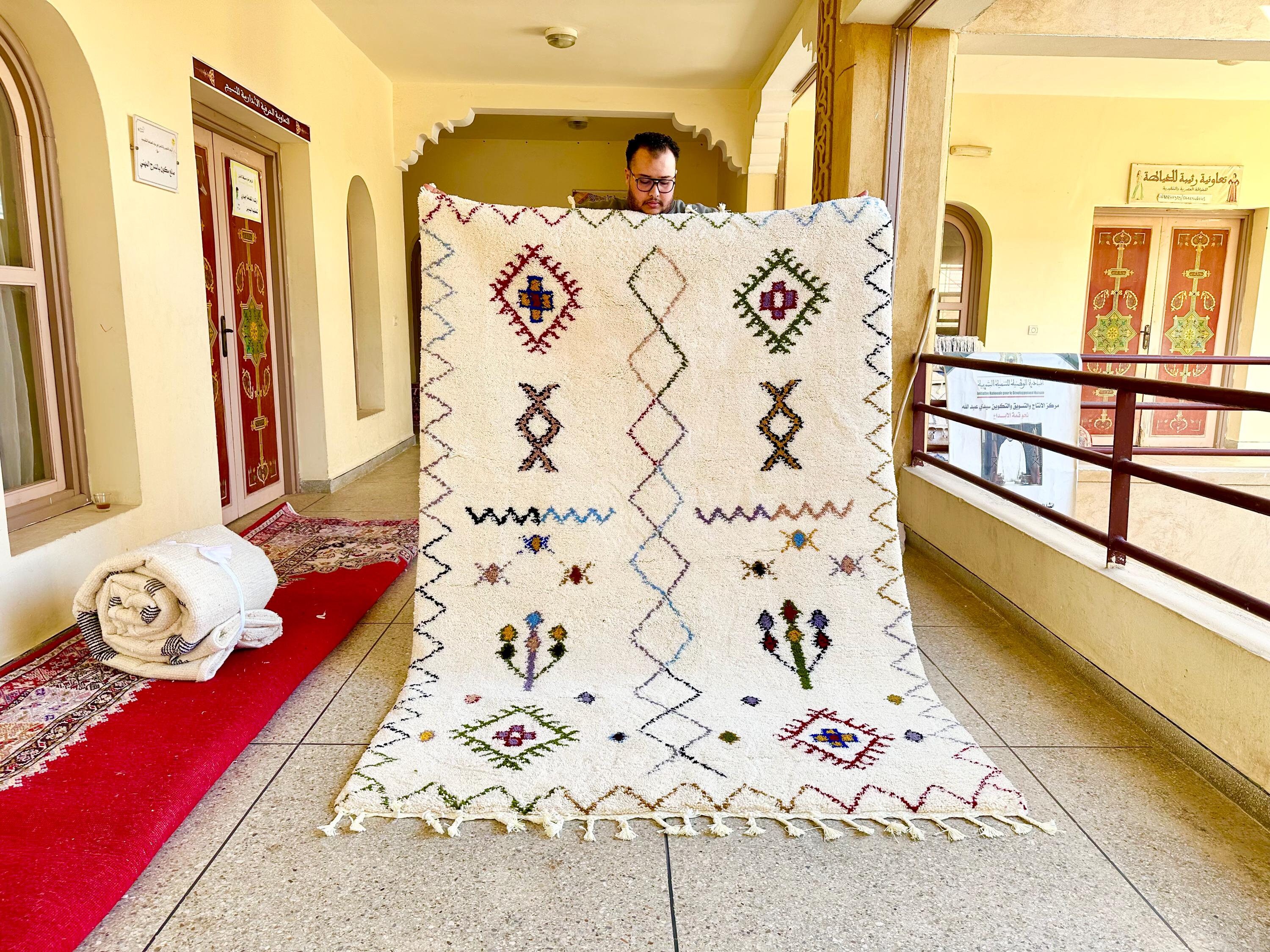 Experience the essence of Moroccan heritage with our 100% authentic Beni Ourain rugs, meticulously handcrafted by Berber artisans from the Atlas Mountains. Made from locally sourced, natural sheep wool, these rugs are both luxurious and eco-friendly, embodying a blend of comfort, elegance, and cultural richness. Their timeless designs and soft, plush texture make them an ideal choice for any home.