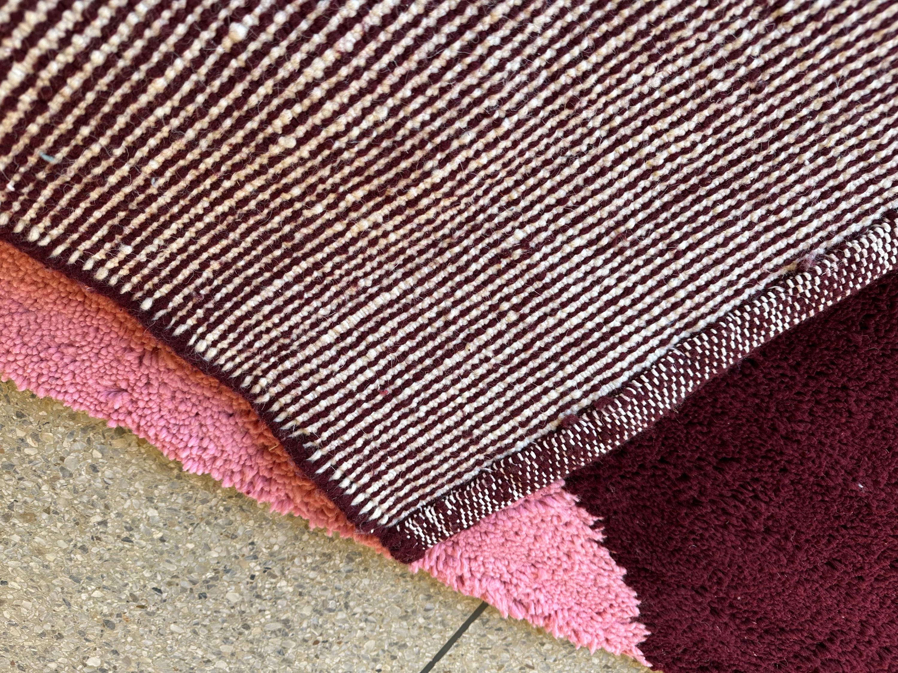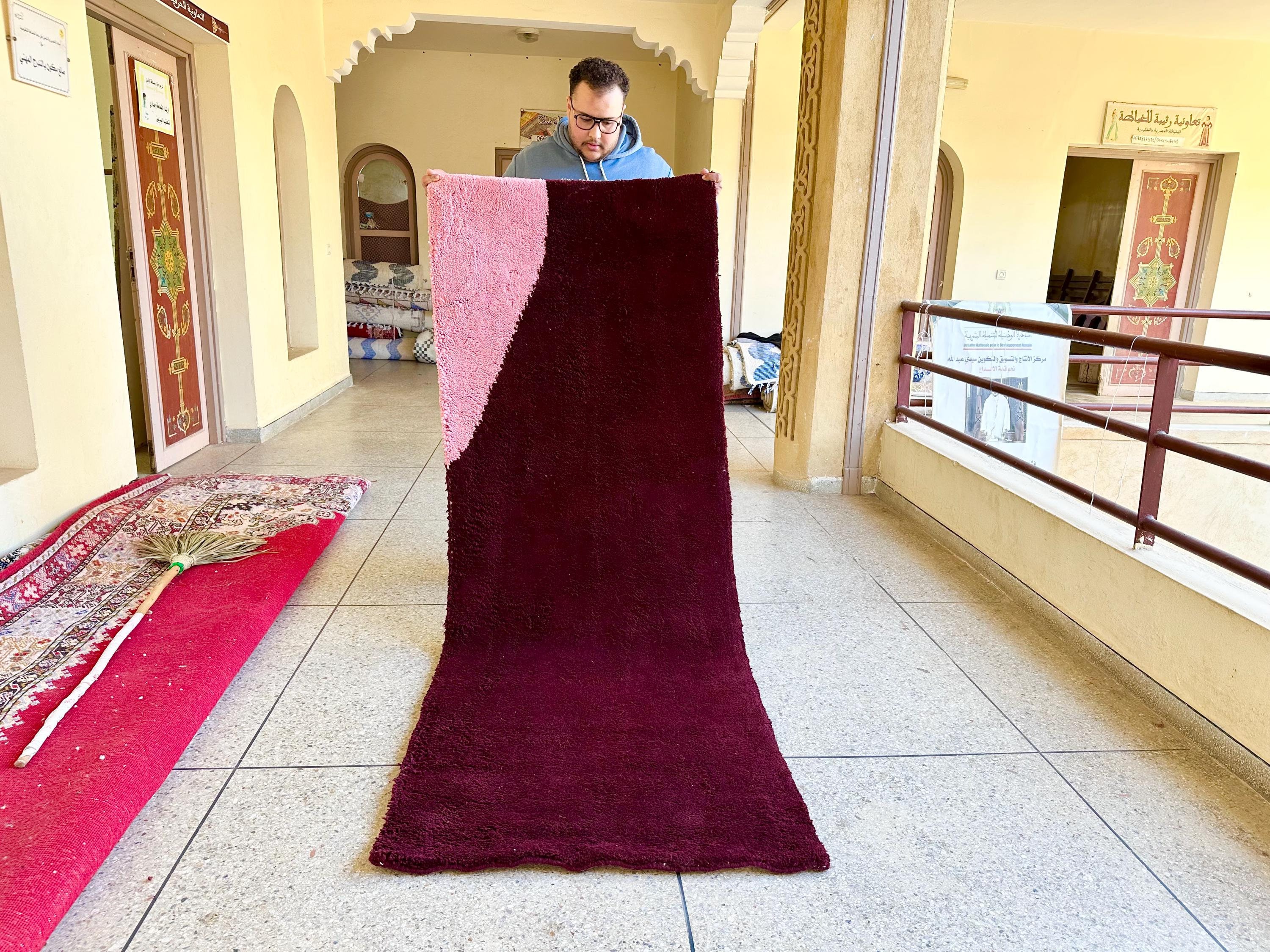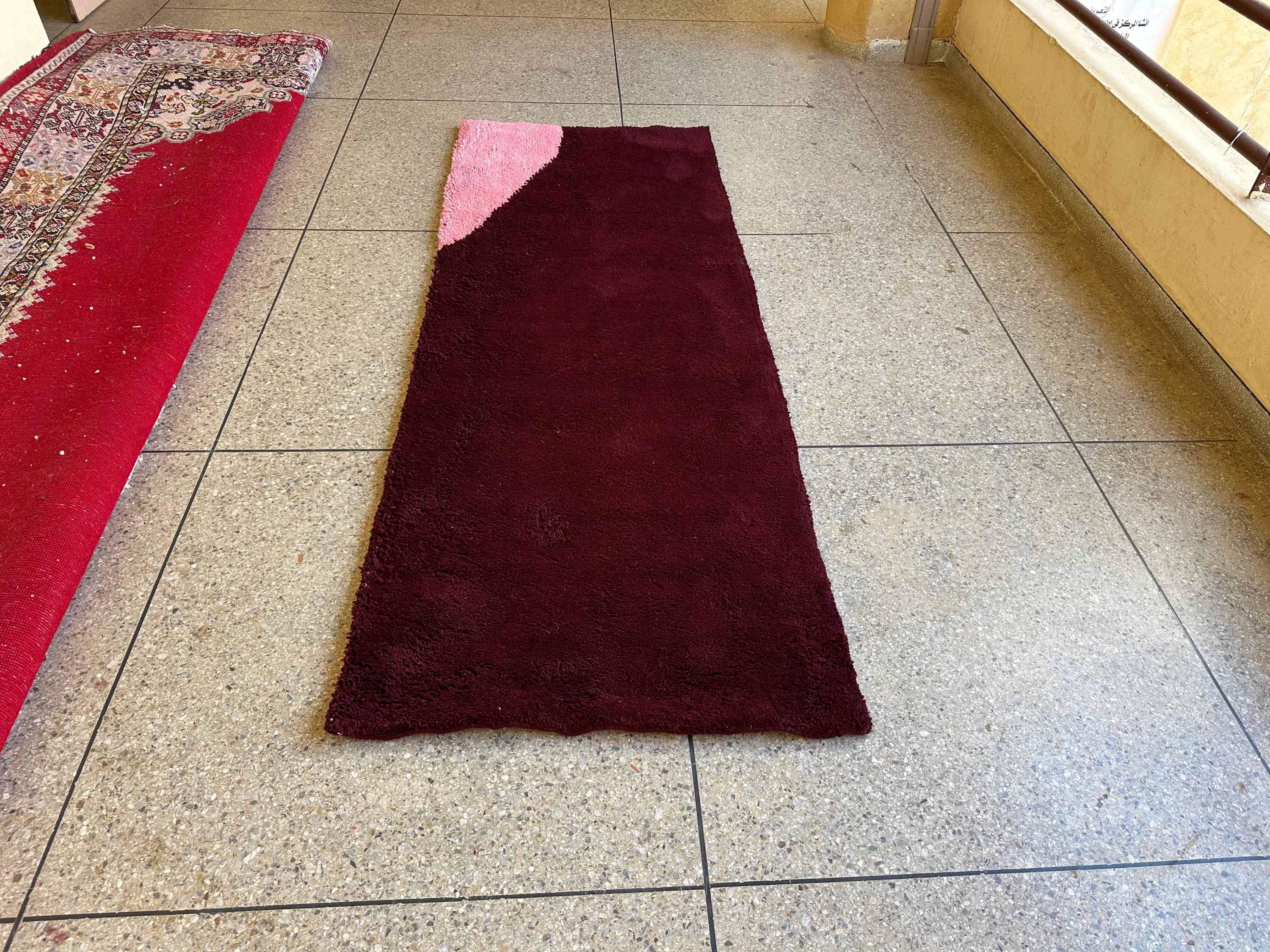 Introduce a vibrant touch to your hallway or entryway with this Abstract Red and Pink Beni Ourain Runner. Expertly handwoven from premium wool, this custom Moroccan runner showcases a striking abstract design in red and pink hues, blending traditional Berber artistry with contemporary aesthetics. Its elongated form makes it ideal for hallways or entryways, complementing Scandinavian and eclectic home styles with warmth and sophistication.