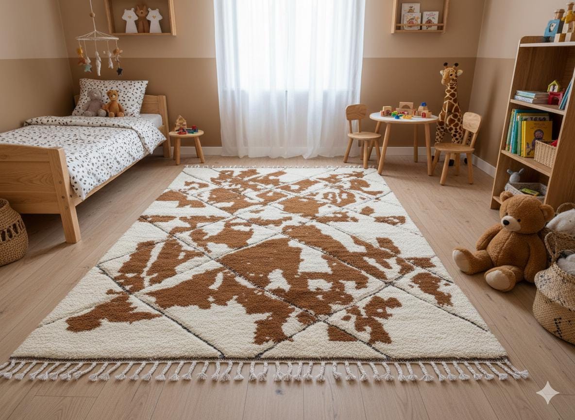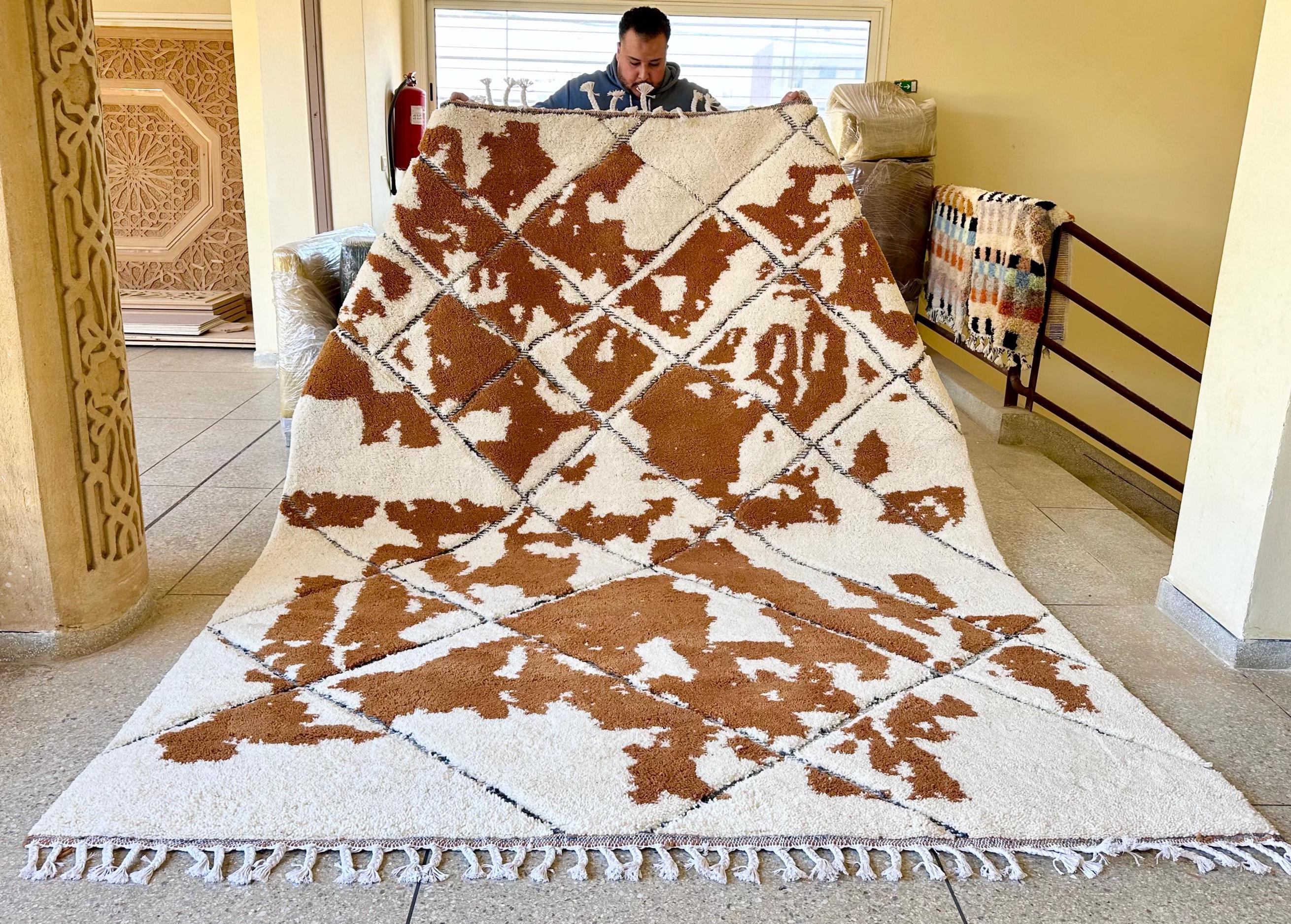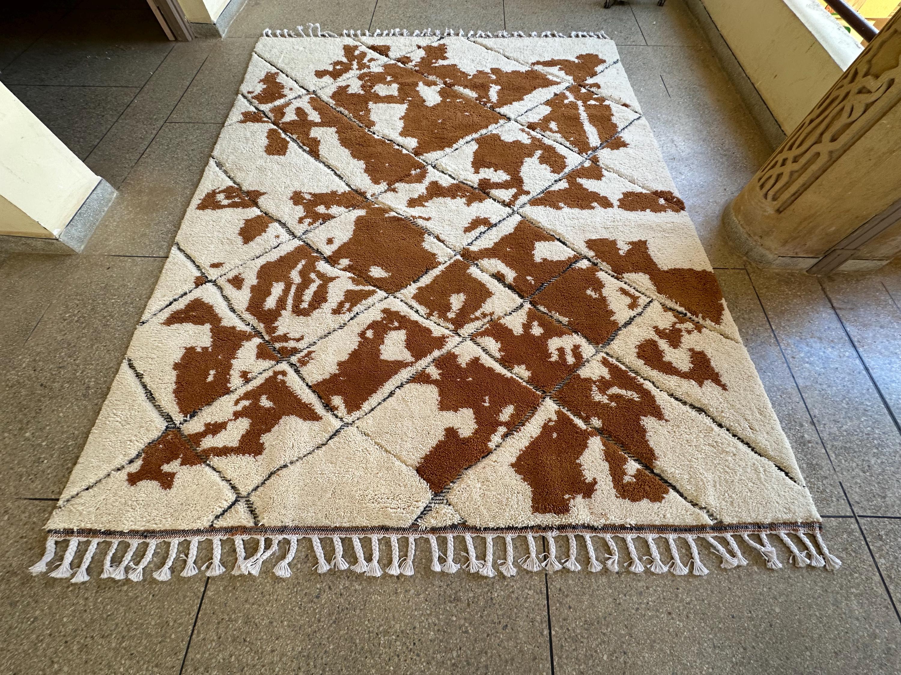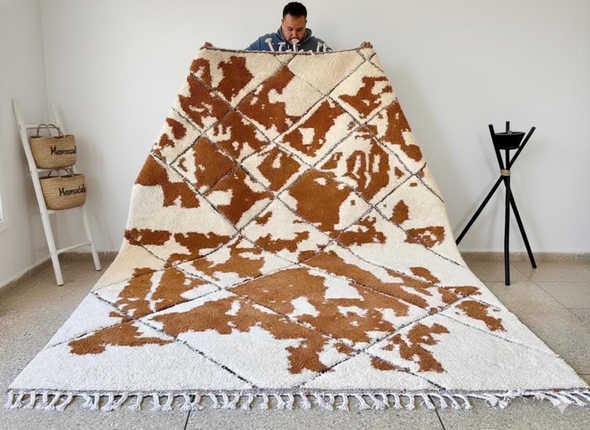 Transform your space with our exquisite BENI OURAIN RUG! This stunning White & Brown Moroccan Rug features a unique geometric design, perfect for adding warmth and character to any room. Made from soft wool, our Custom Size Teppich Berber Rug ensures comfort underfoot while enhancing your decor. Whether you’re looking for a cozy living room centerpiece or a stylish accent for your bedroom, this Handmade Area Rug is the ideal choice. Elevate your home with this beautiful Moroccan Brown Carpet today!