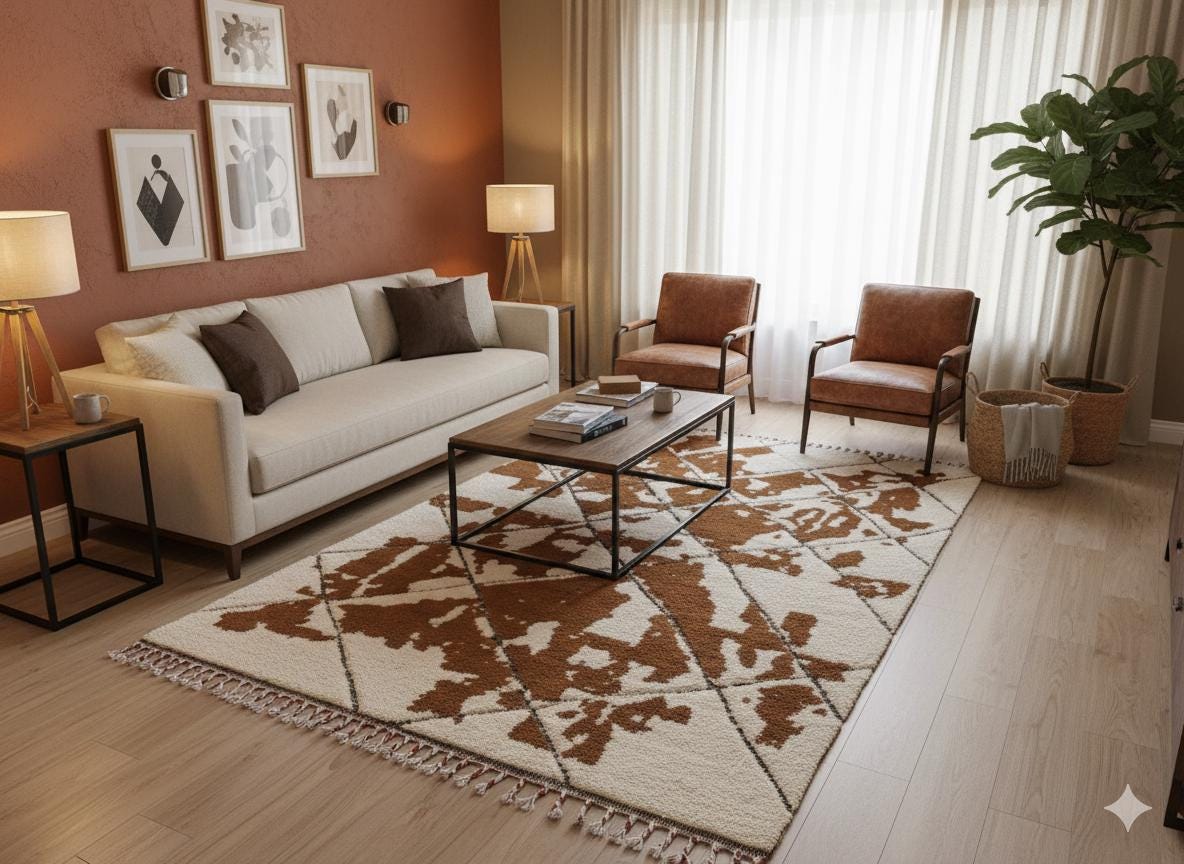 Versatile & Timeless Design: With their minimalist, geometric diamond patterns and natural colors, Beni Ourain rugs blend seamlessly with Traditional, Bohemian, Minimalist, Modern, and Scandinavian styles.