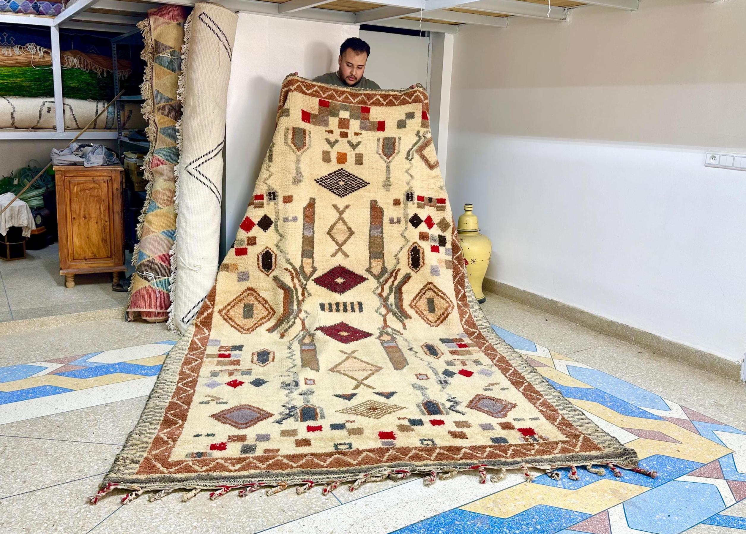 "Transform your home with a piece of Moroccan heritage that exudes both elegance and warmth 🌟. Whether placed under your sofa 🛋️, in your bedroom 🛏️, or even as a wall hanging 🖼️, these rugs invite a sense of history, style, and comfort 🧶✨. Explore our full collection of Beni Ourain, Azilal, and Boucherouite rugs for unique pieces that tell a story 📚💫."