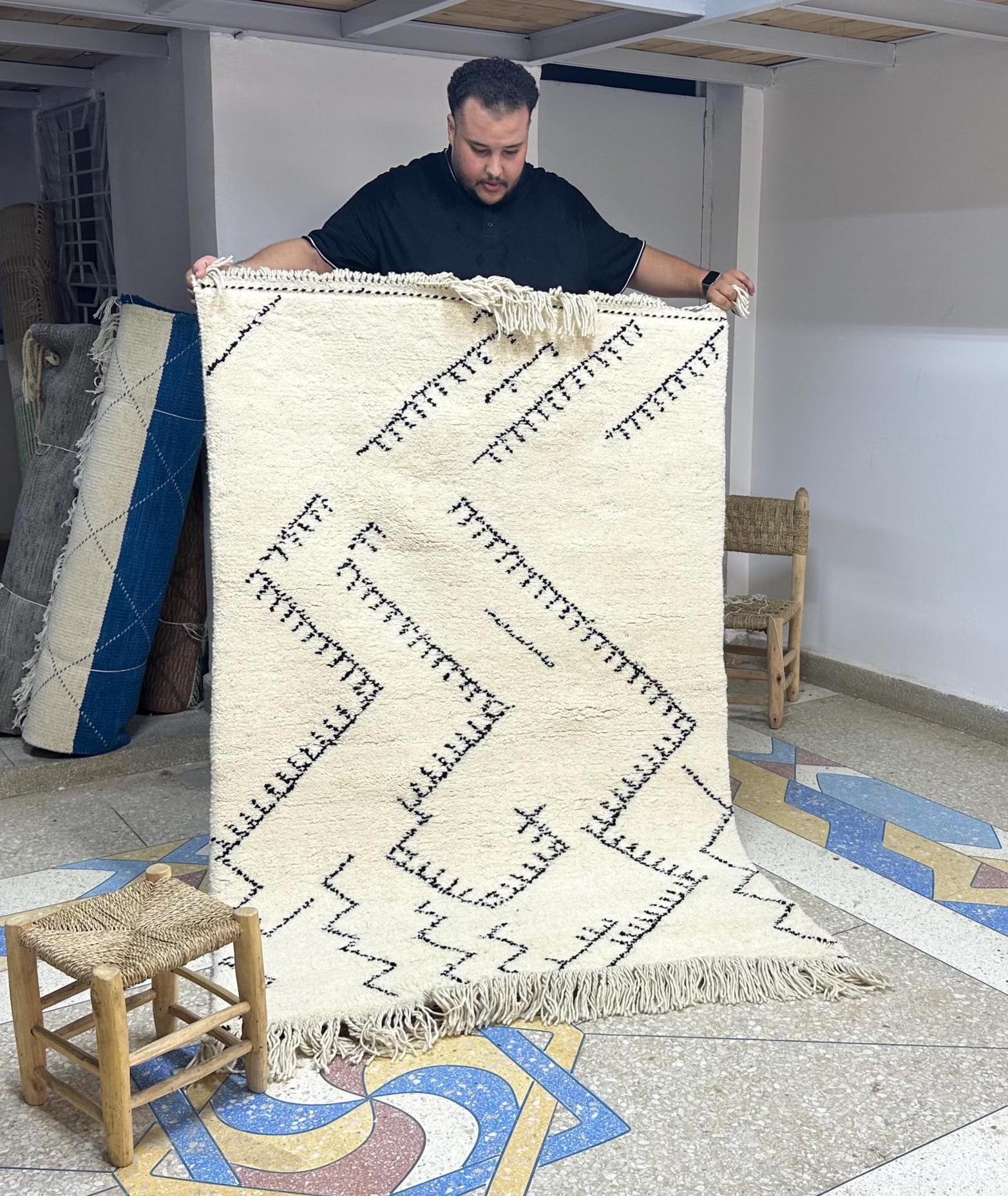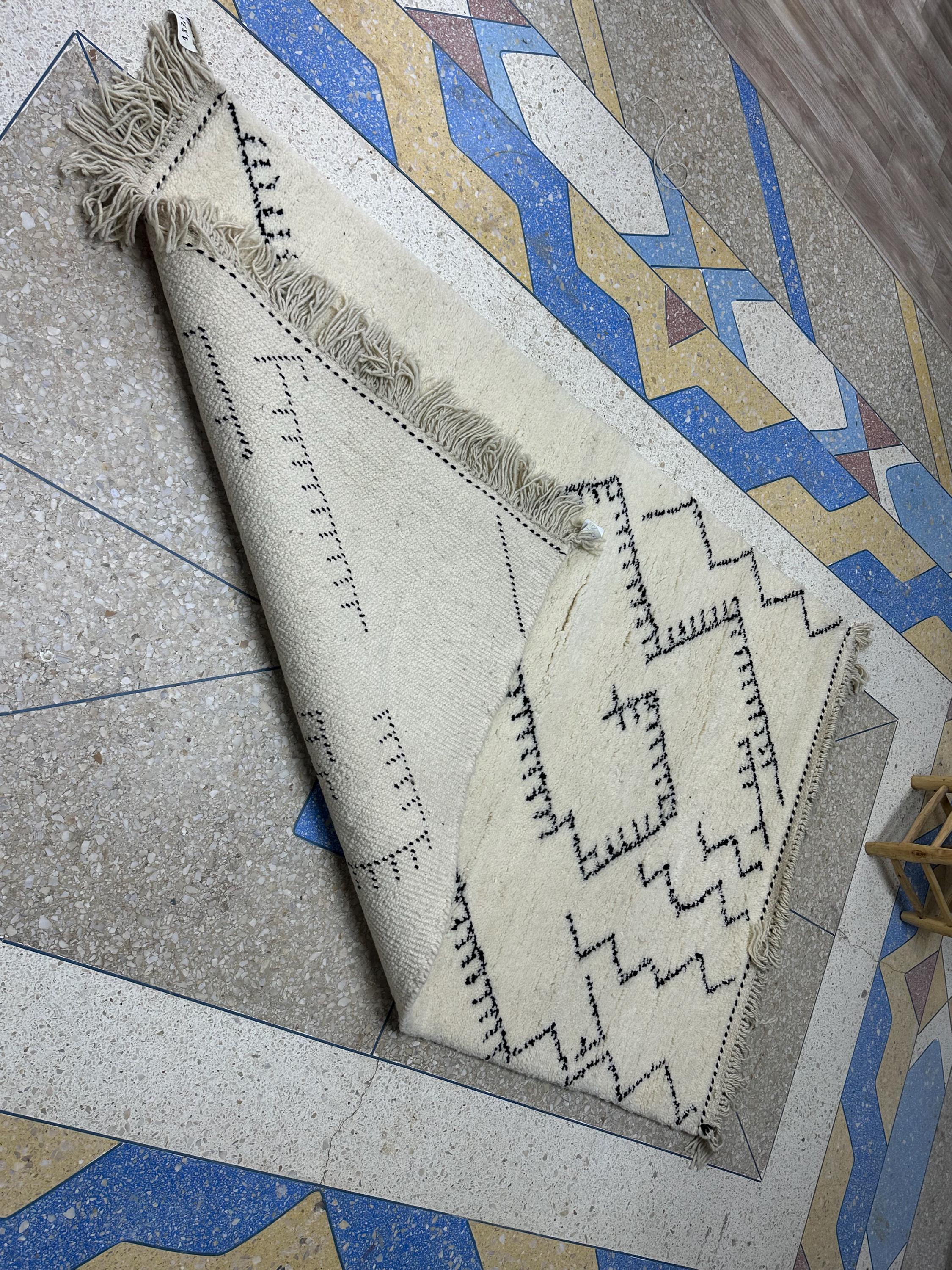 This black & white Beni Ourain rug adds a bold, handmade touch to your boho space — crafted from soft wool with an abstract Moroccan design.