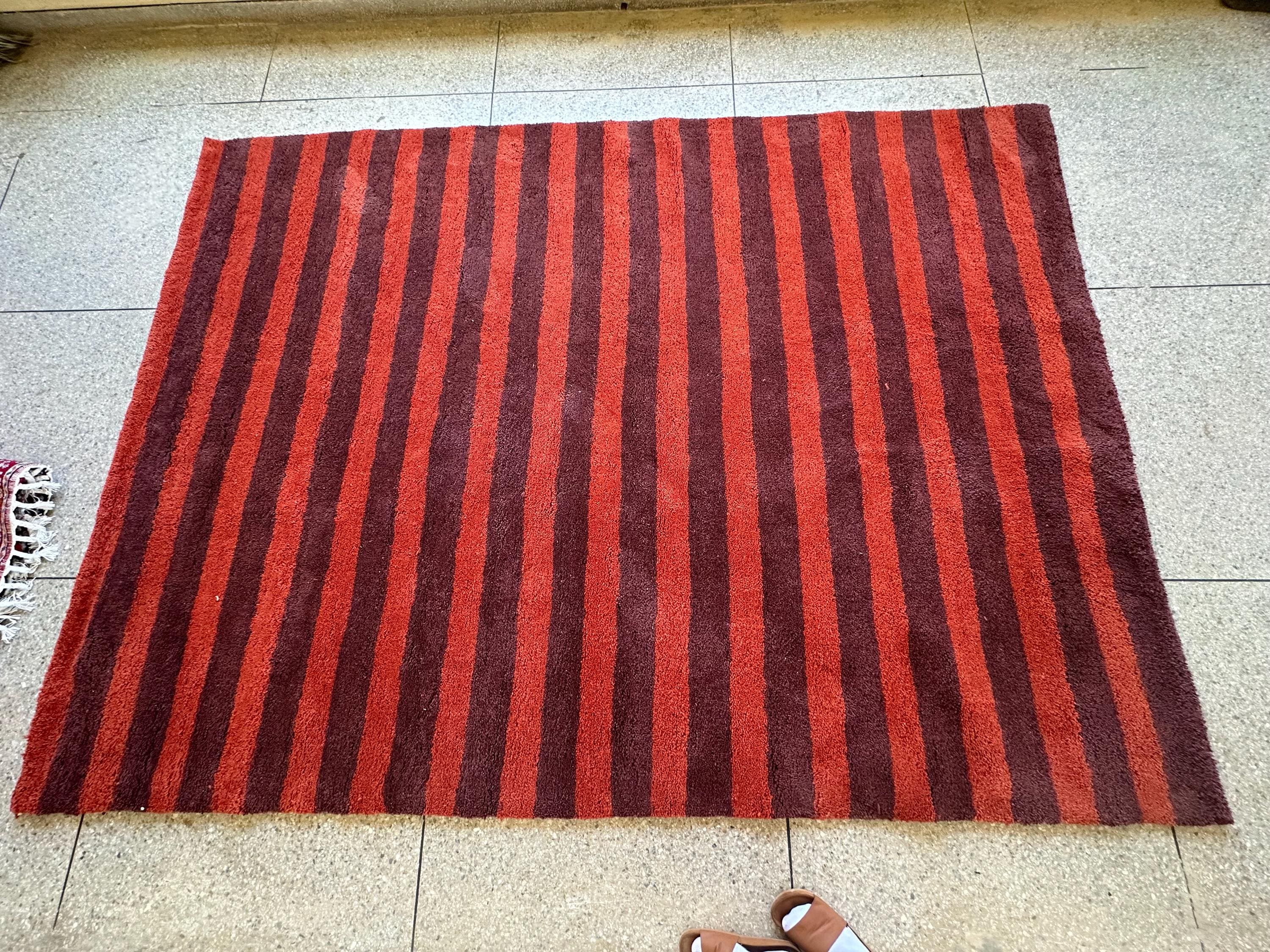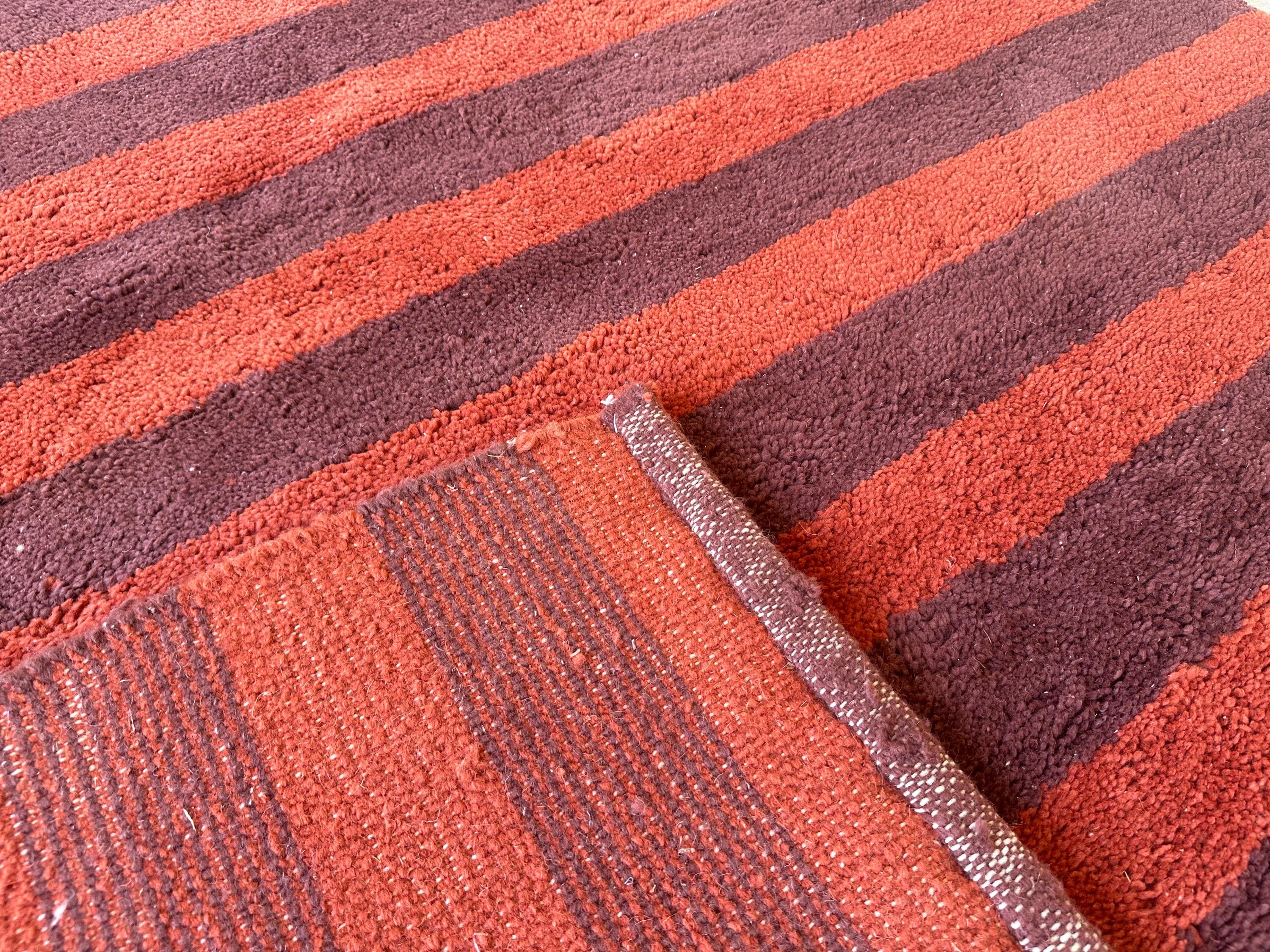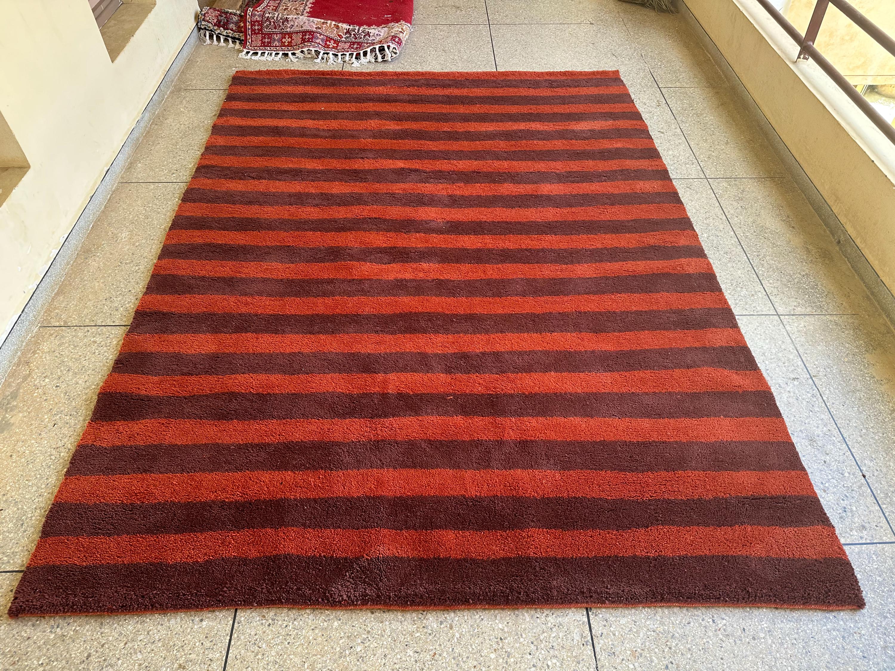 Enhance your space with this luxury burgundy striped wool rug, a custom handloomed Moroccan Beni Ourain carpet designed for both elegance and comfort. This bespoke area rug is handcrafted using premium wool, making it a perfect addition to your living room, bedroom, or stylish home decor. Its rich burgundy tones and striped design bring warmth and sophistication to any space..