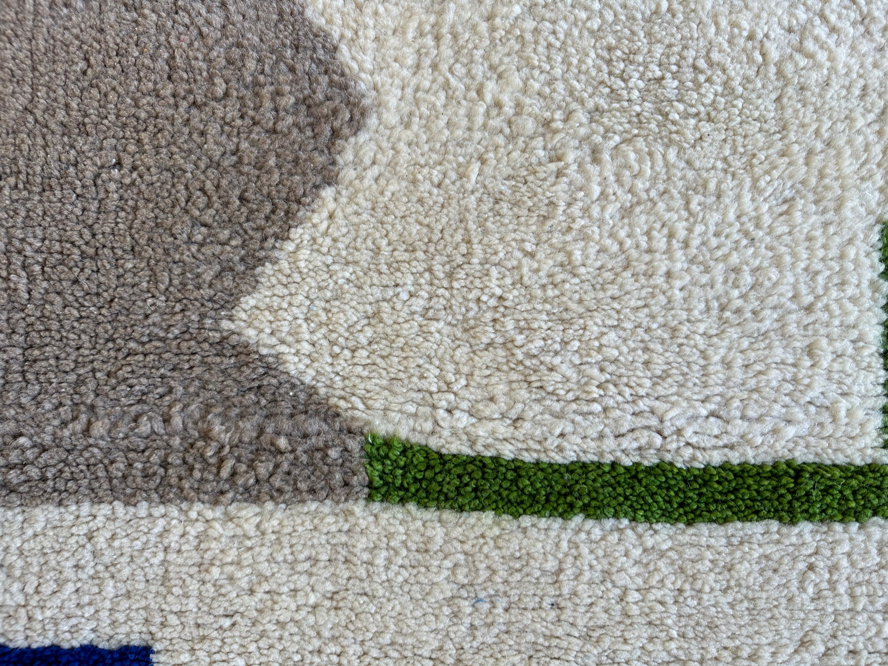 Custom Size Rug, Gorgeous Beni Ourain Moroccan Carpet, Handmade Fluffy Berber Rug, White and Green Area Wool Rug, Contemporary Living Room.