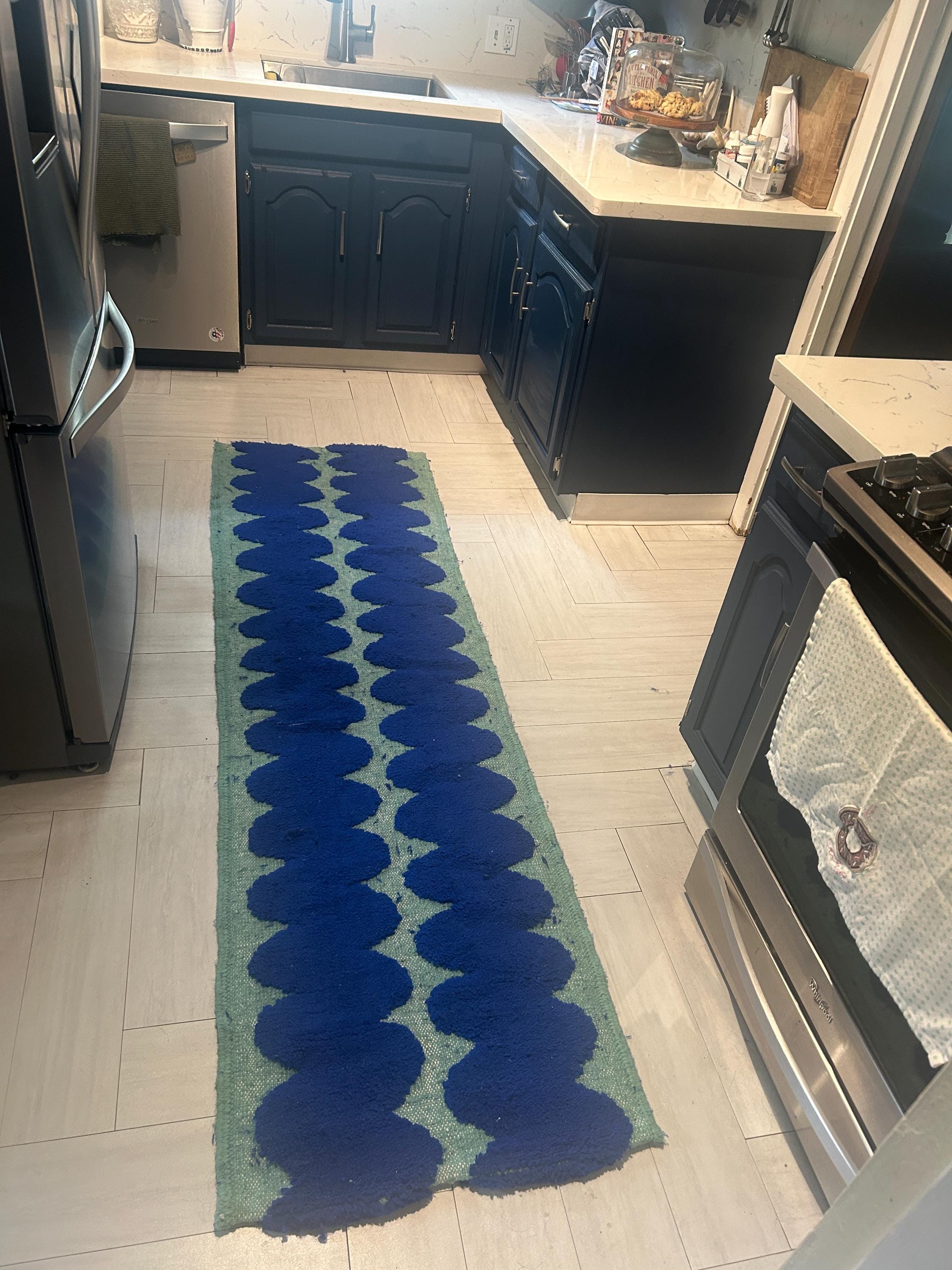 I love this fun funky rug for our kitchen! My only concern is that we are seeing the blue part of the rug sheds quite often, so I’ll just have to research how to prevent that. But it is fun and vibrant and feels so soft on bare feet. I will recommend you get some sort of rug mat/pad underneath it if you are putting it on tile or hardwood, because it does slip. Other than that! It is wonderful!