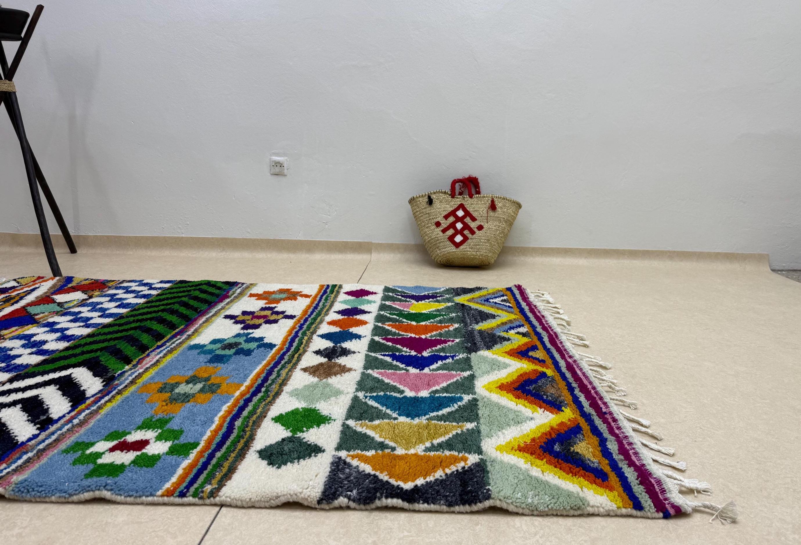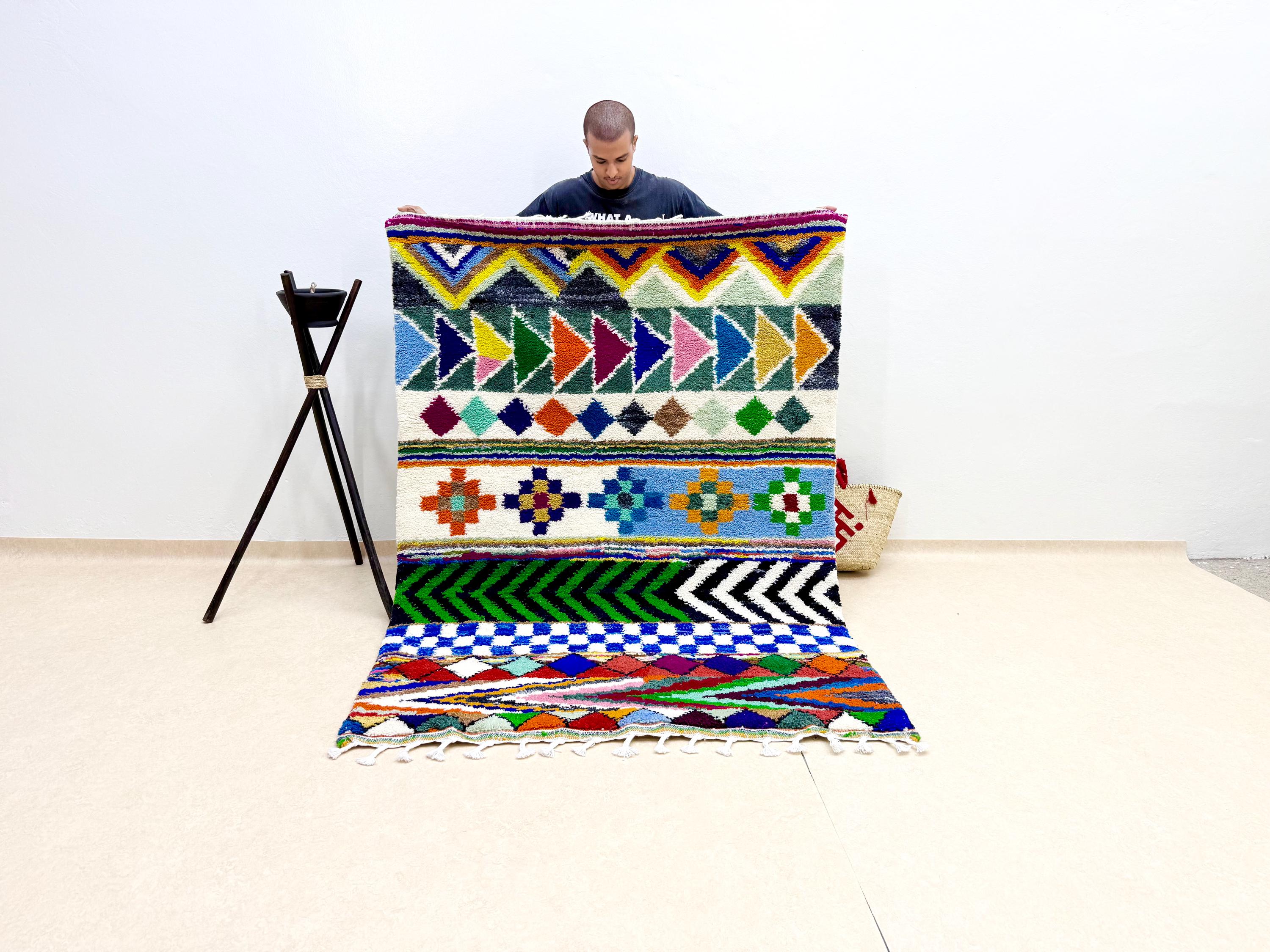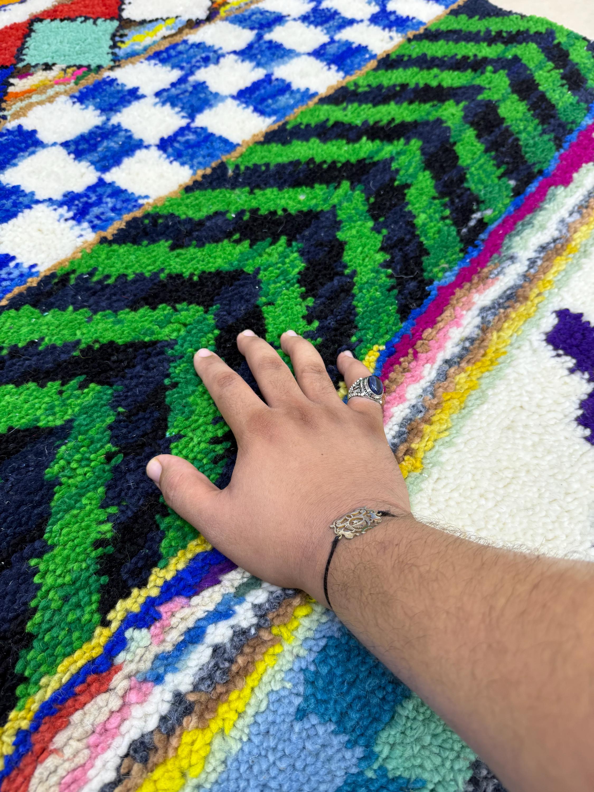Your home deserves a masterpiece. 🌈 This one-of-a-kind tufted Beni Ourain rug blends cozy softness with bold color for the ultimate floor statement.