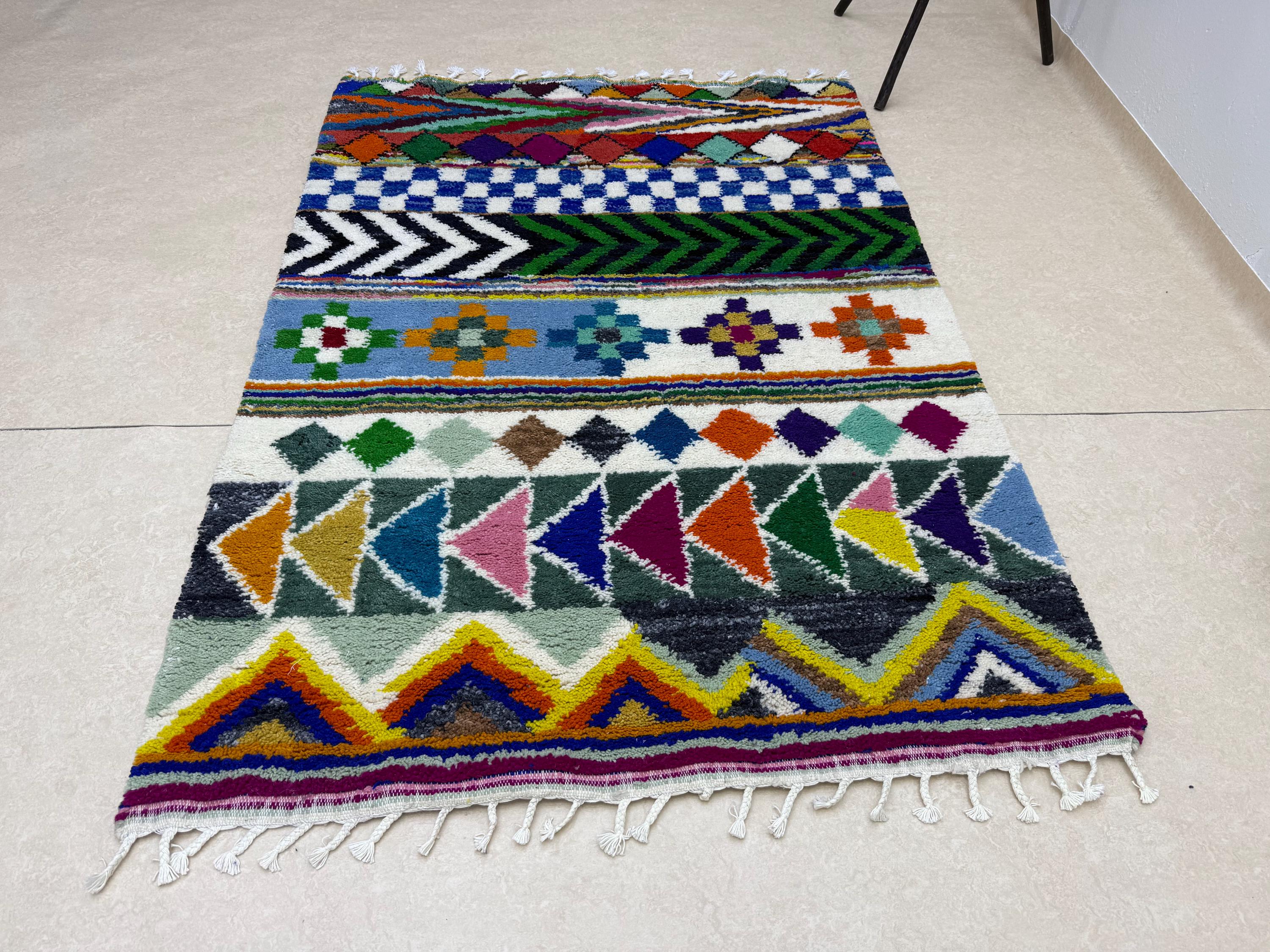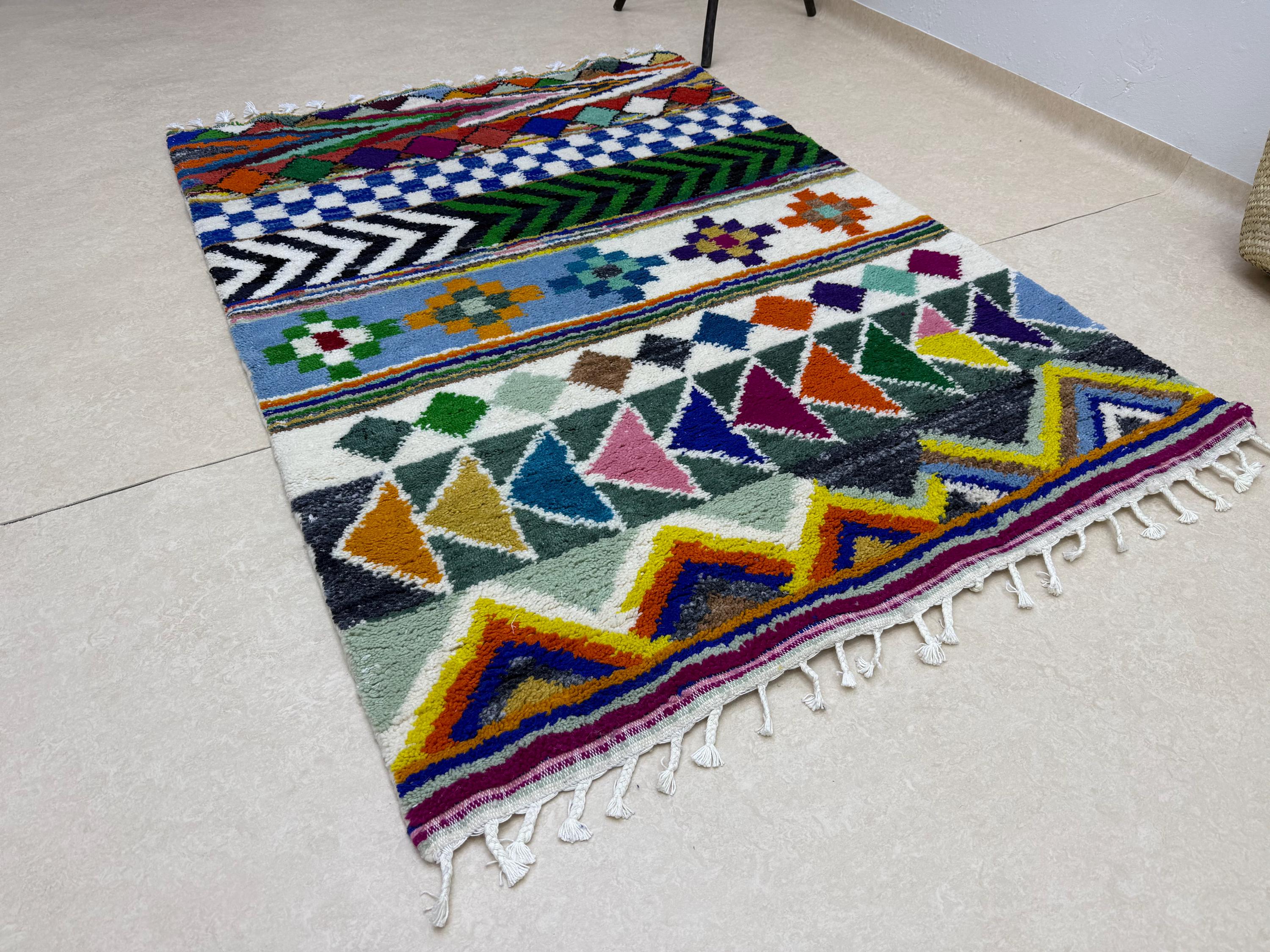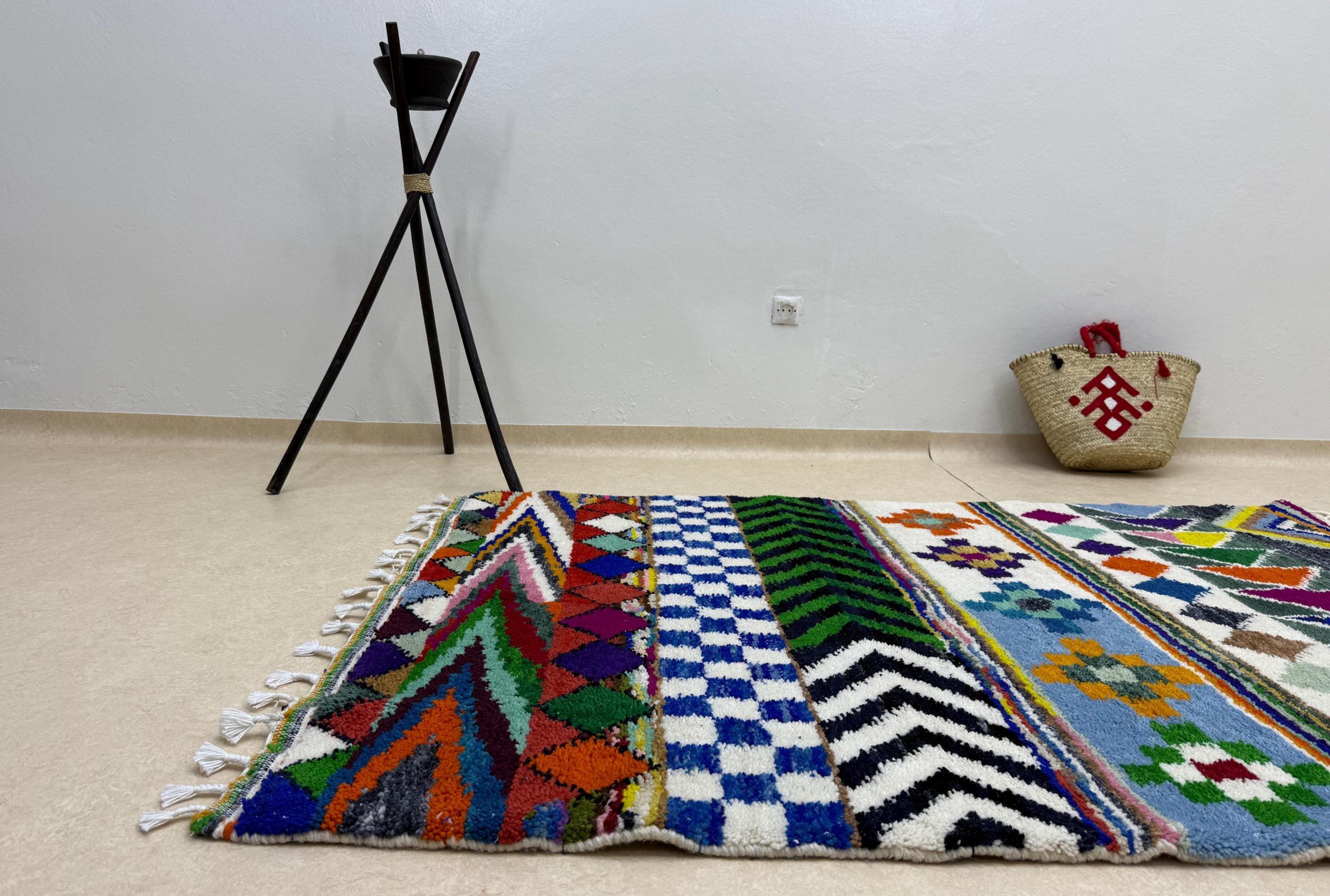 Your home deserves a masterpiece. 🌈 This one-of-a-kind tufted Beni Ourain rug blends cozy softness with bold color for the ultimate floor statement.