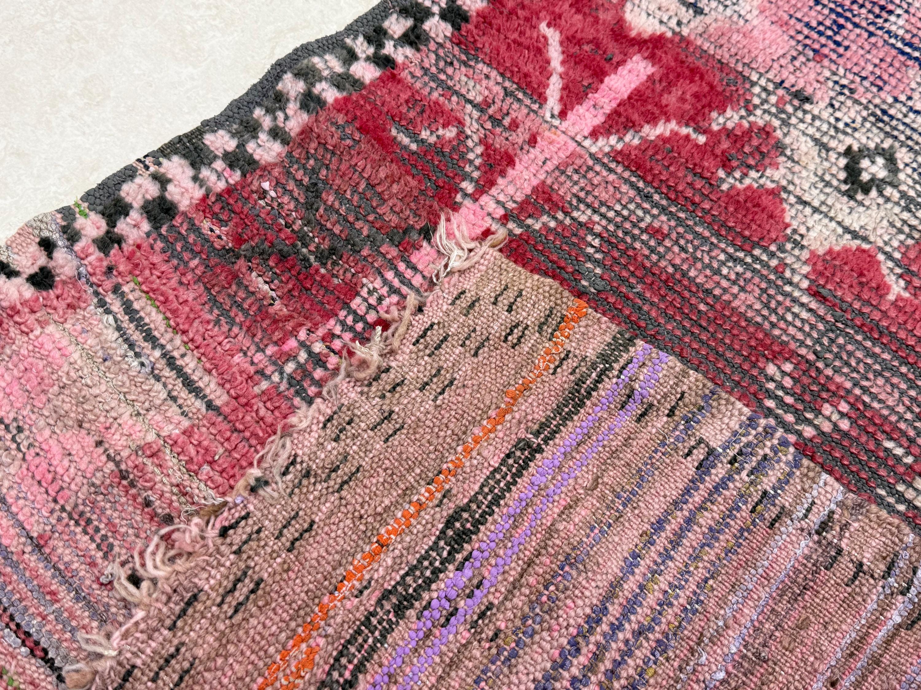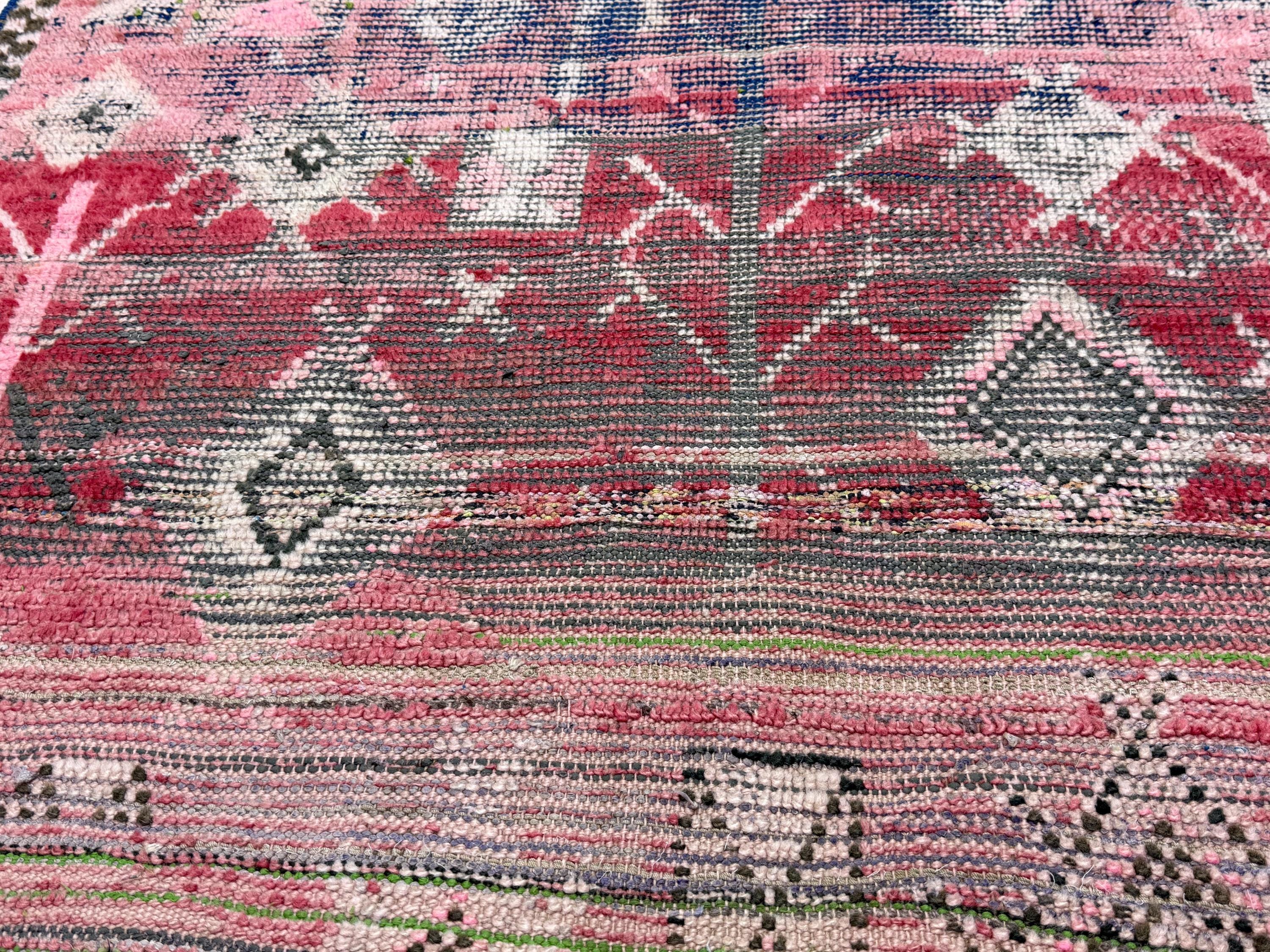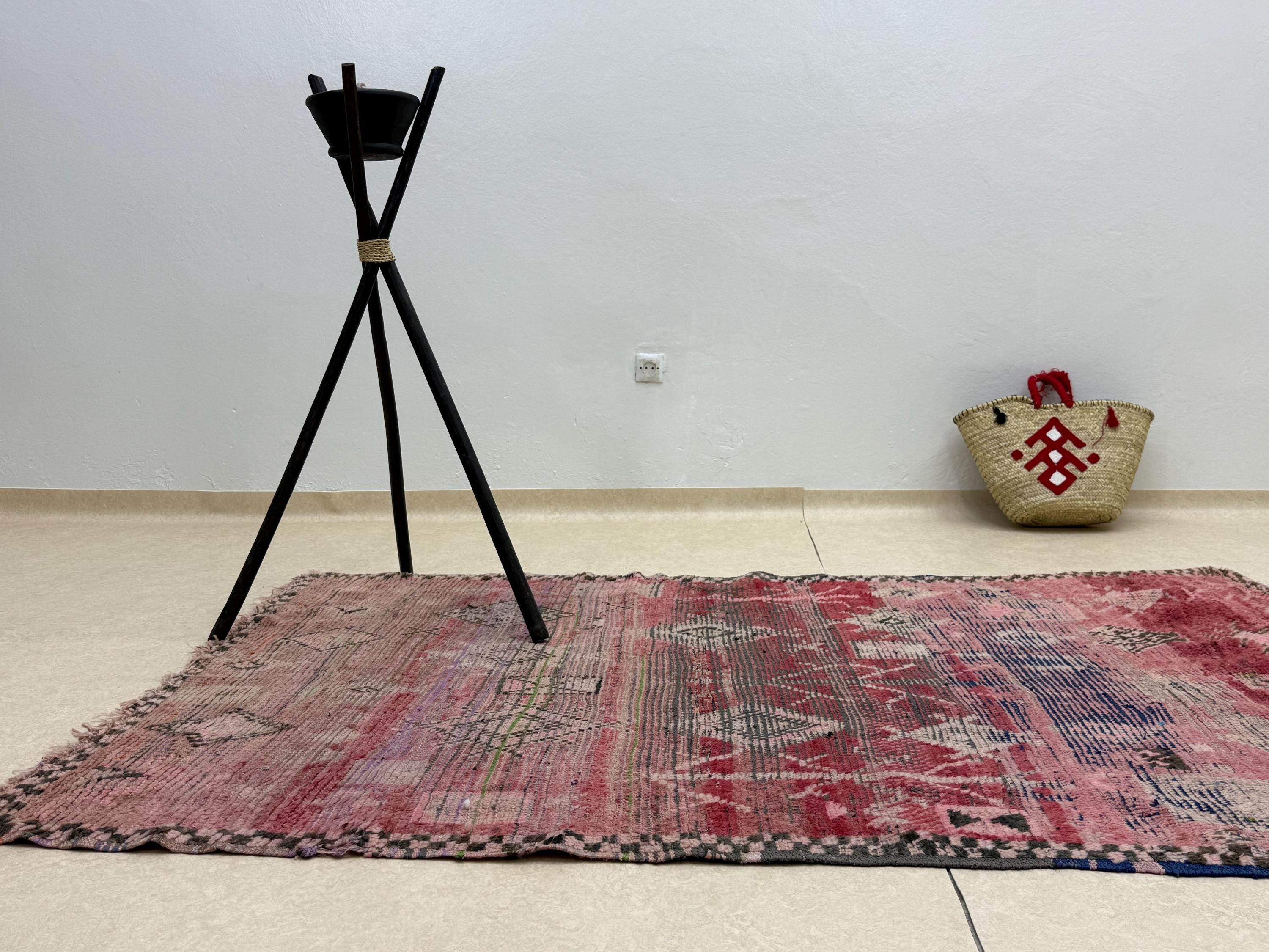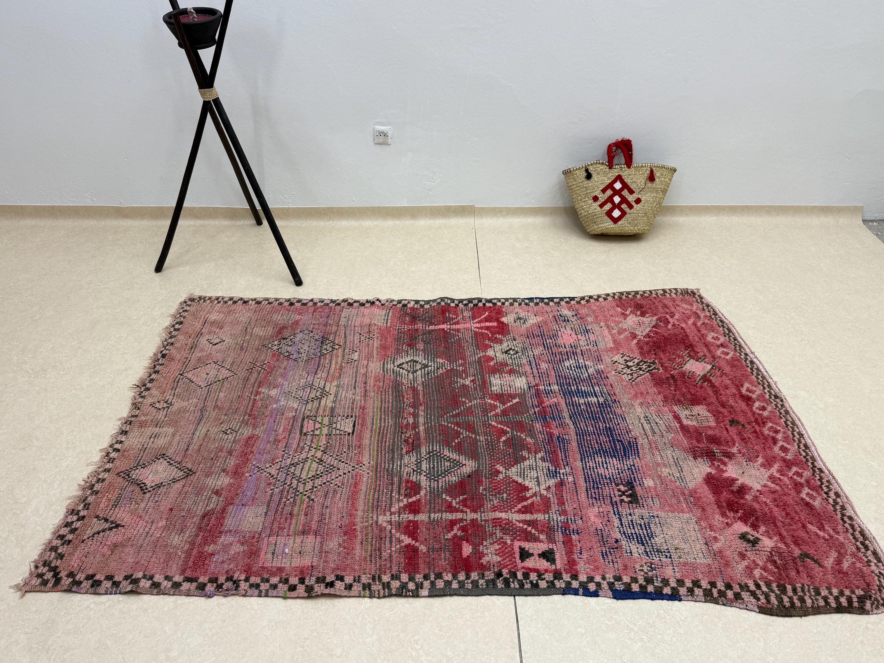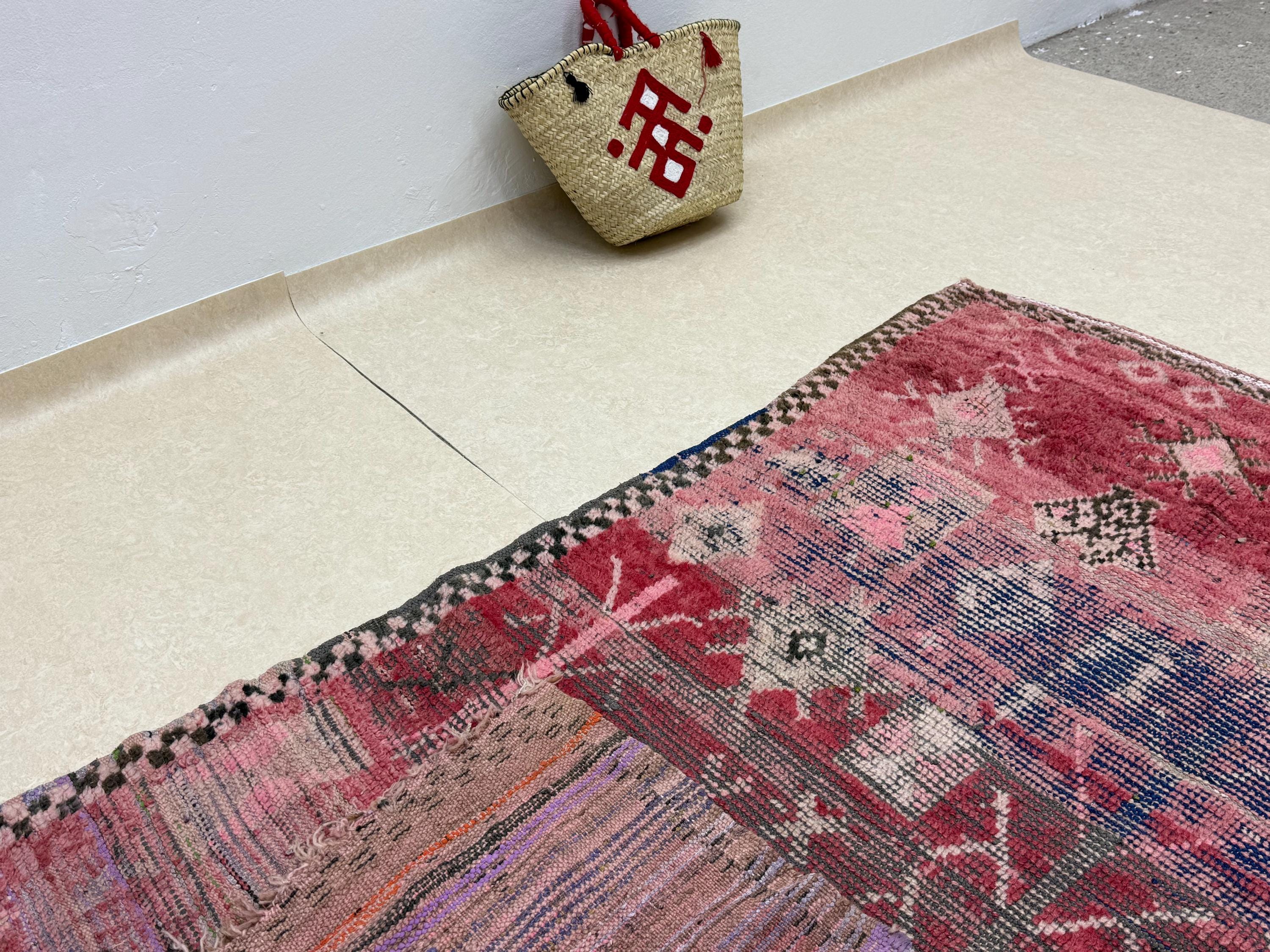 Add a touch of timeless charm to your space with this vibrant Moroccan rug! Handmade with a mix of cotton and wool, this colorful 5x8 rug features a beautiful woven geometric pattern in shades of purple and blue. Elevate your decor with this vintage bohemian area rug that brings both style and warmth to any room.