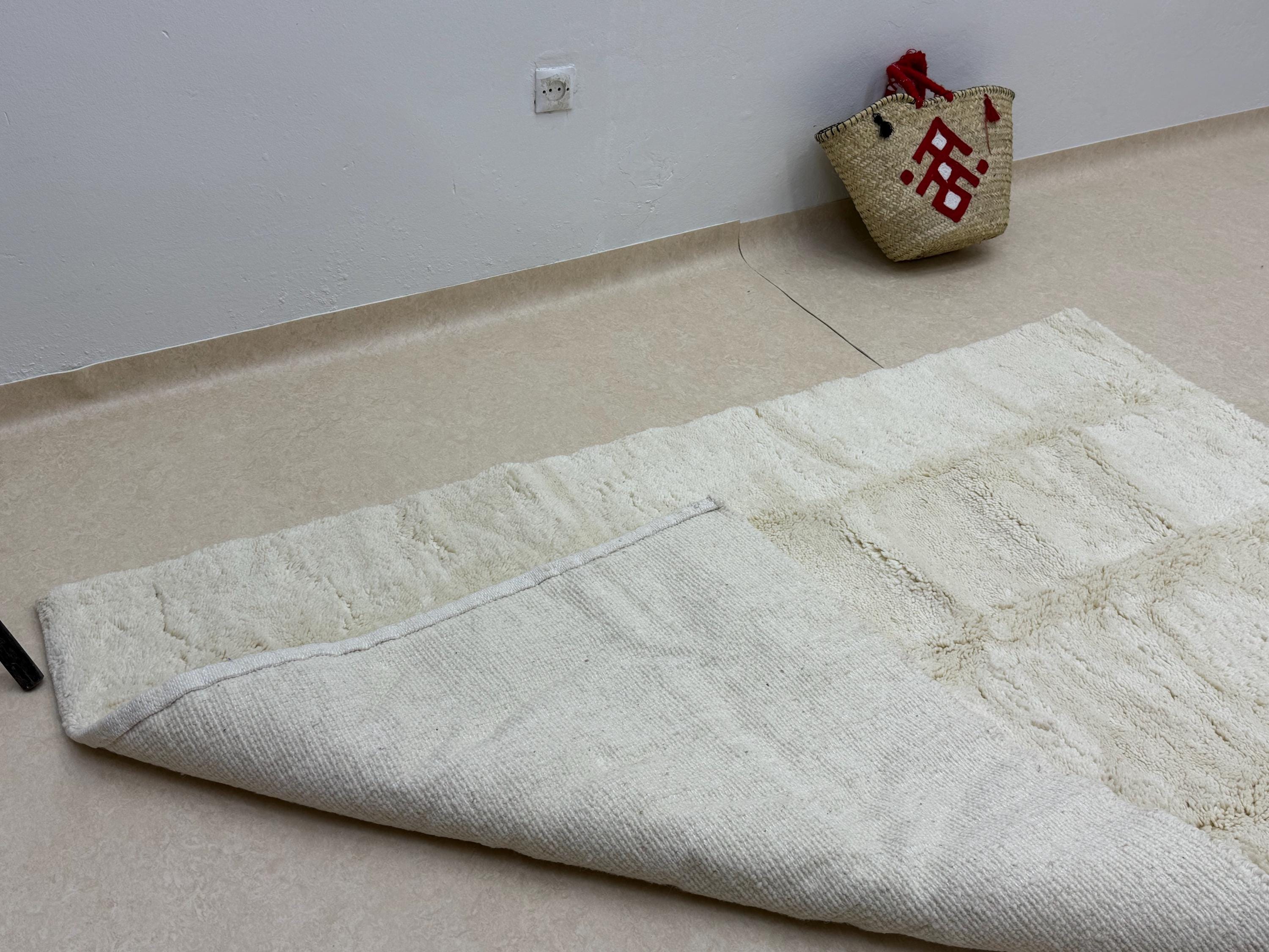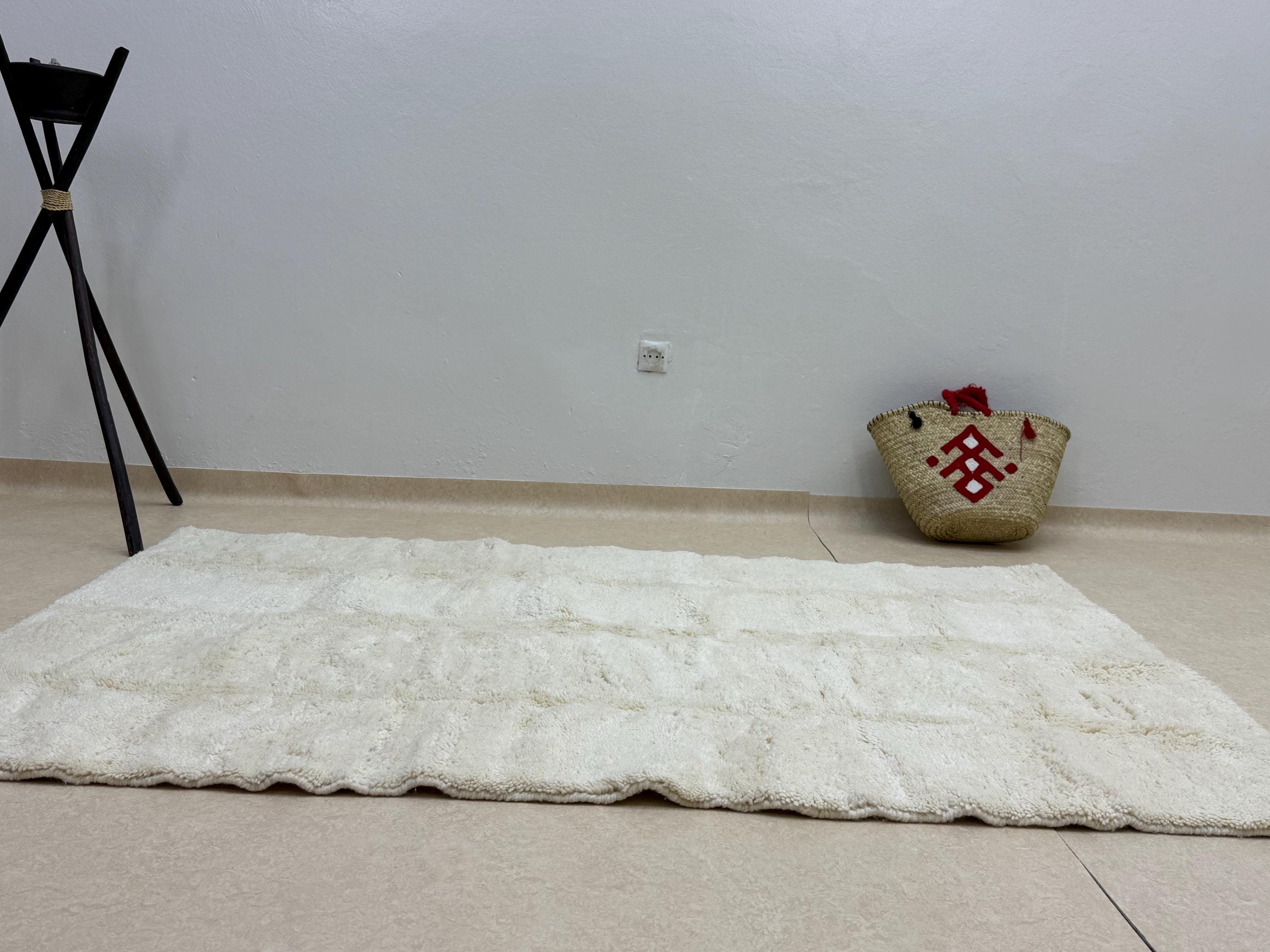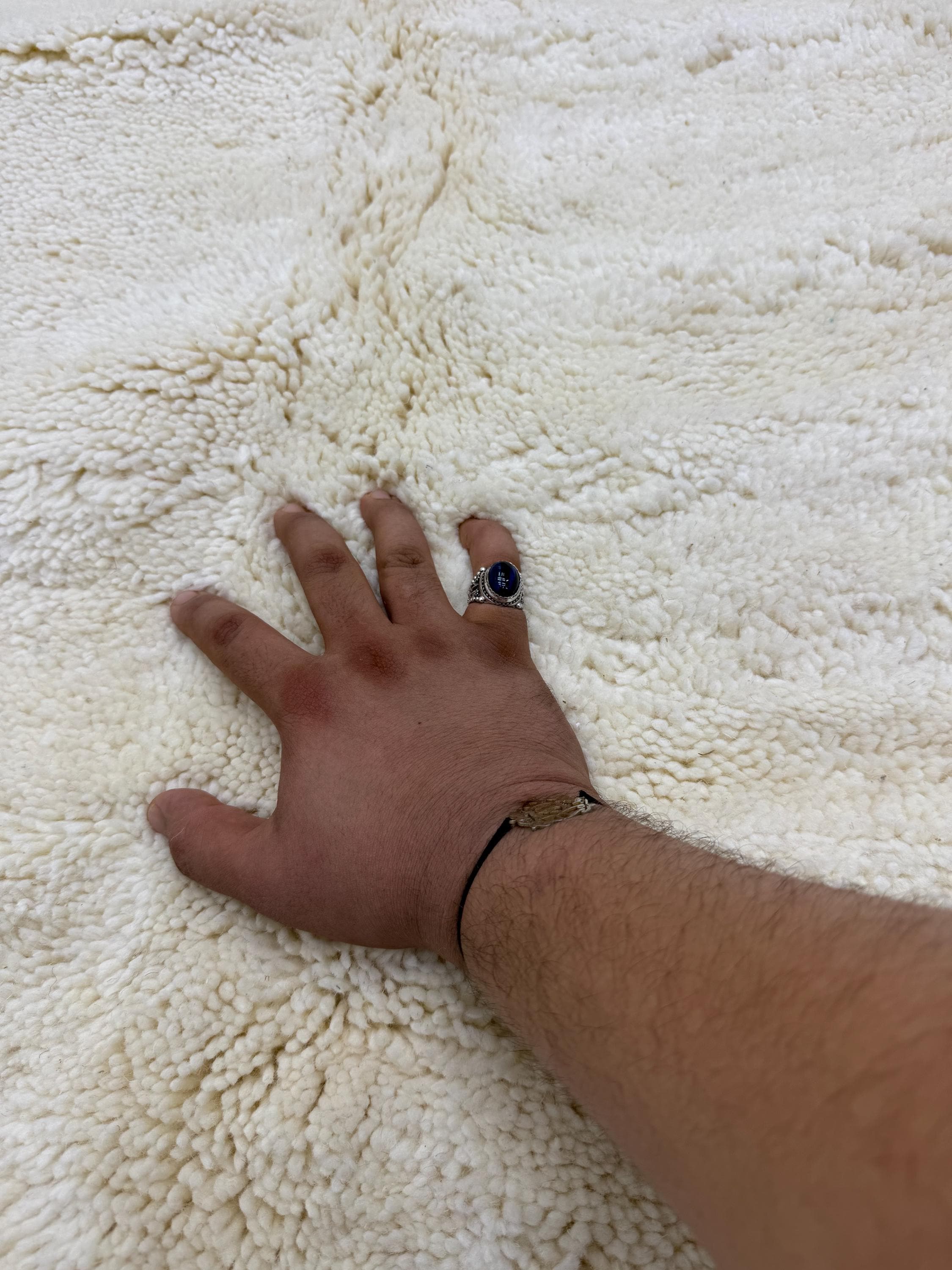 Enhance your Scandinavian interior with a touch of elegance with our custom Moroccan rug. This minimalist wool rug is expertly crafted in the Beni Ourain style, featuring a solid white design that adds a shaggy texture to your space. Bring warmth and style to your home with this elegant area rug today!