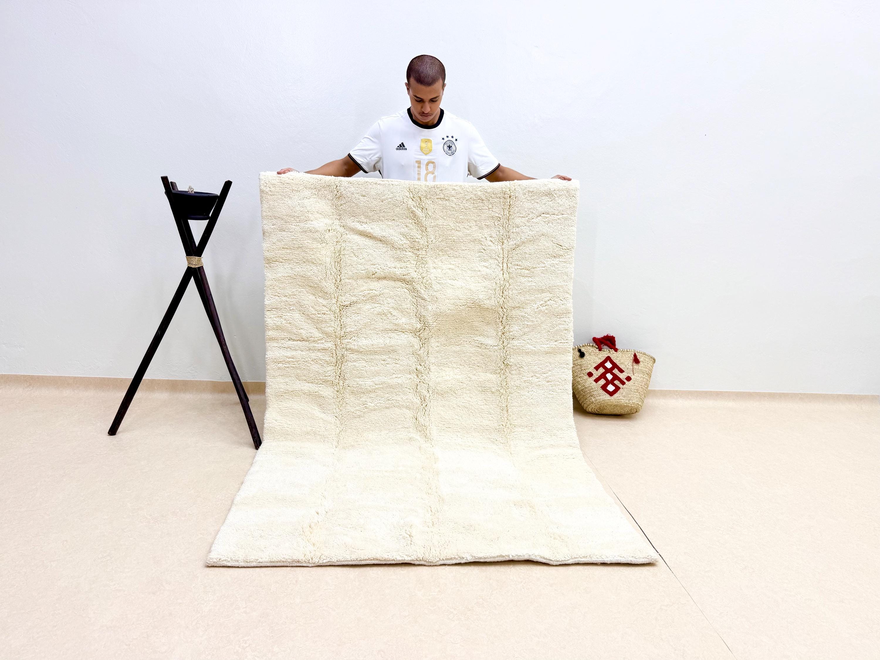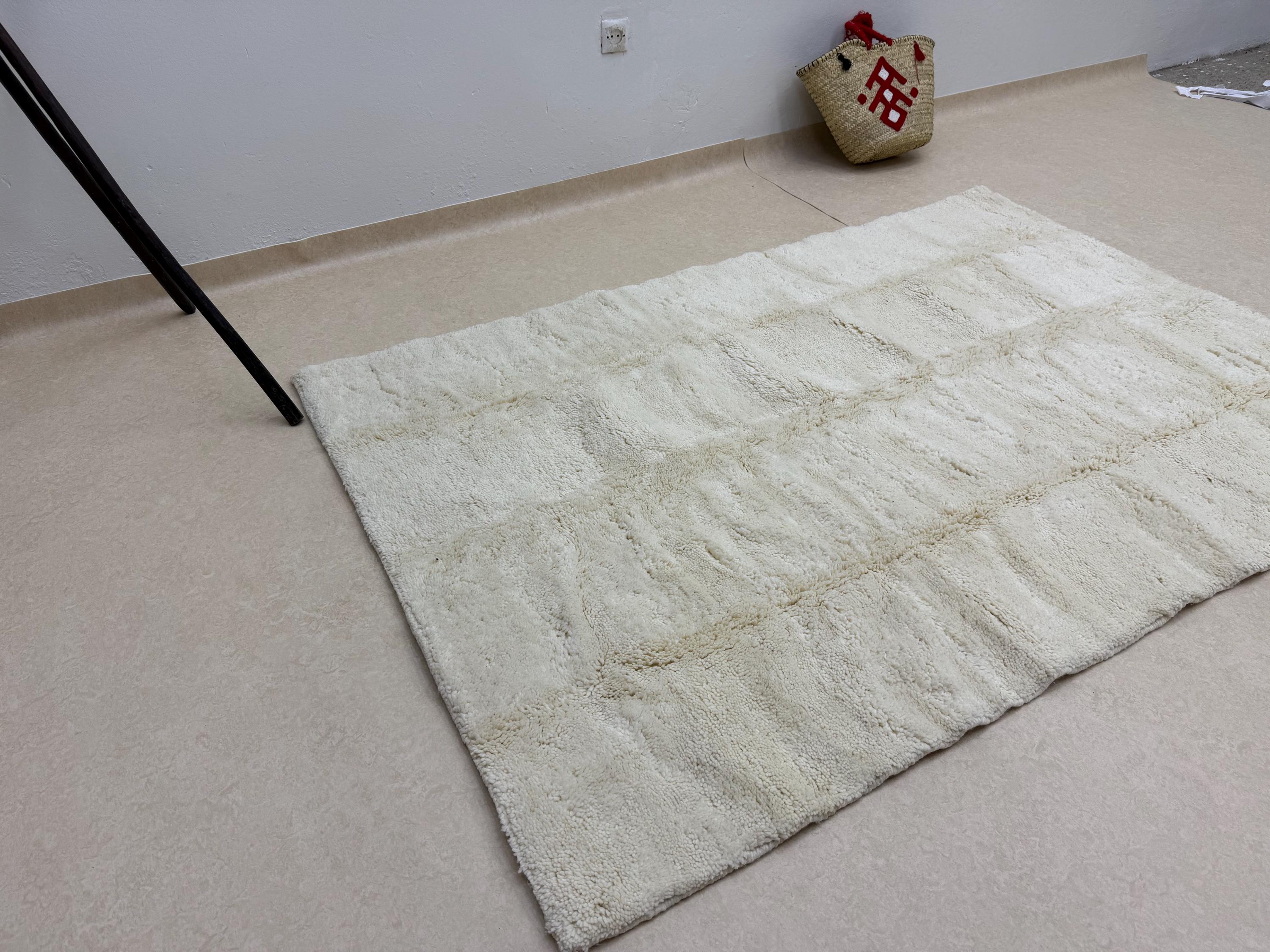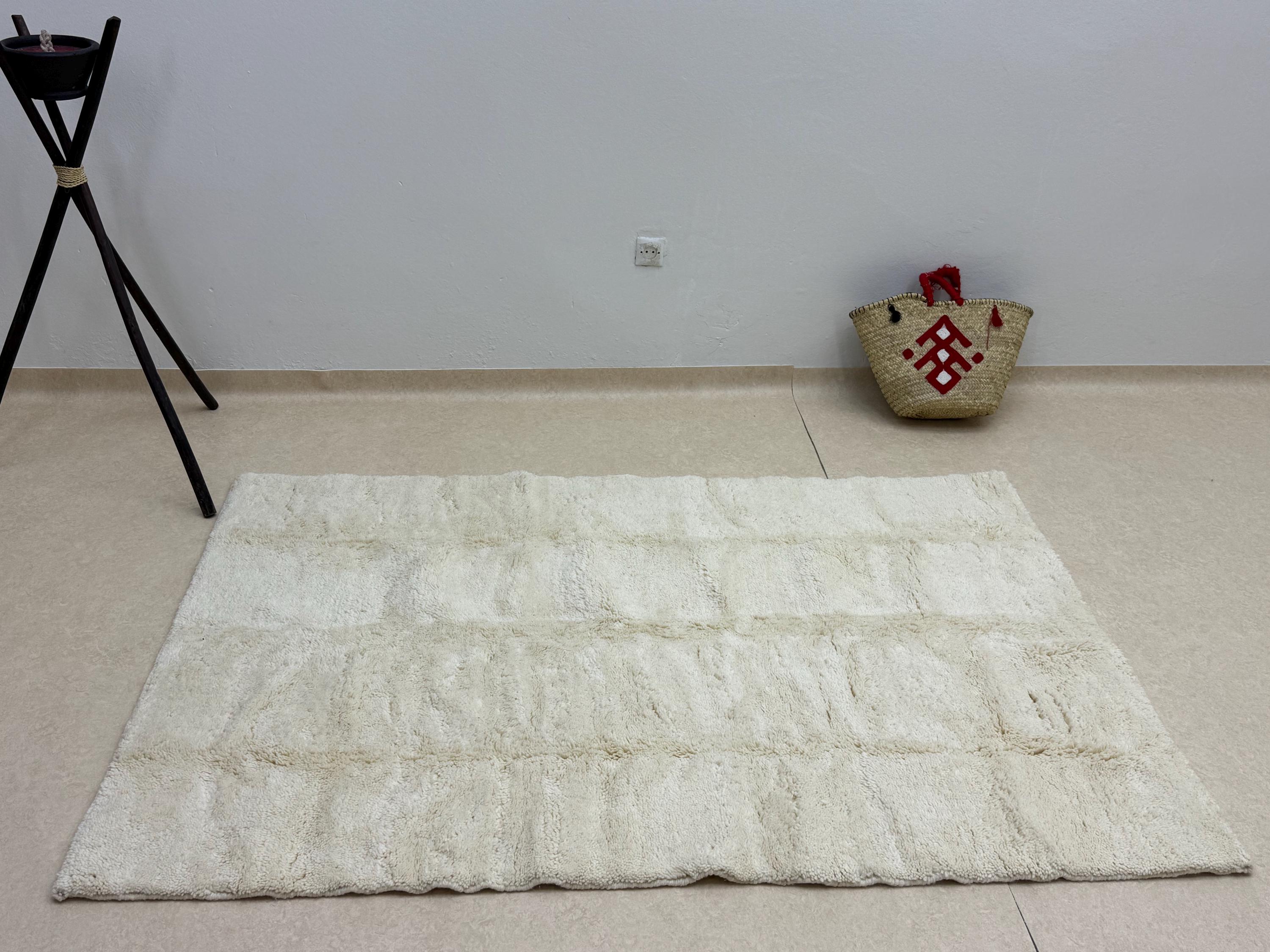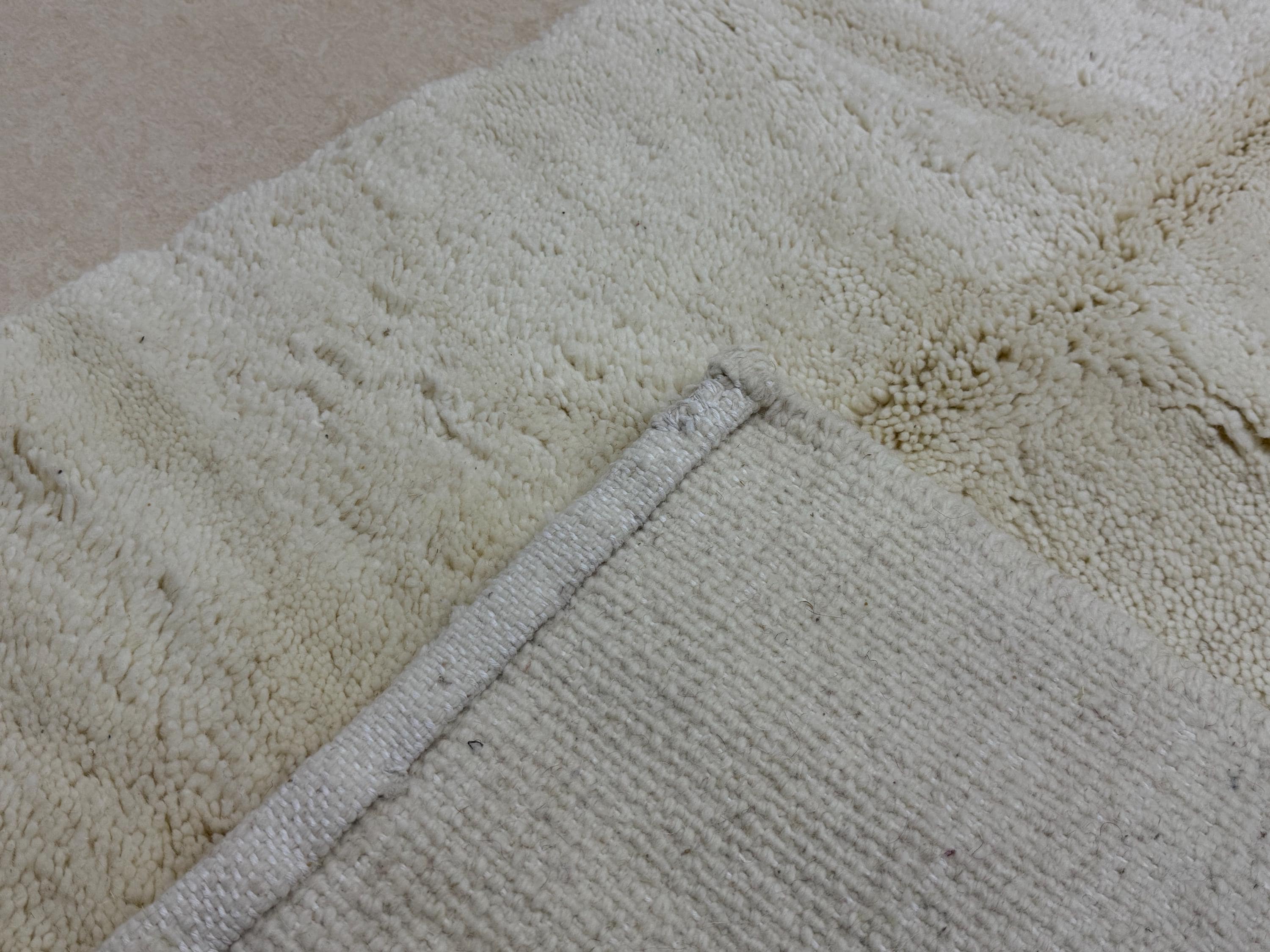 Enhance your Scandinavian interior with a touch of elegance with our custom Moroccan rug. This minimalist wool rug is expertly crafted in the Beni Ourain style, featuring a solid white design that adds a shaggy texture to your space. Bring warmth and style to your home with this elegant area rug today!