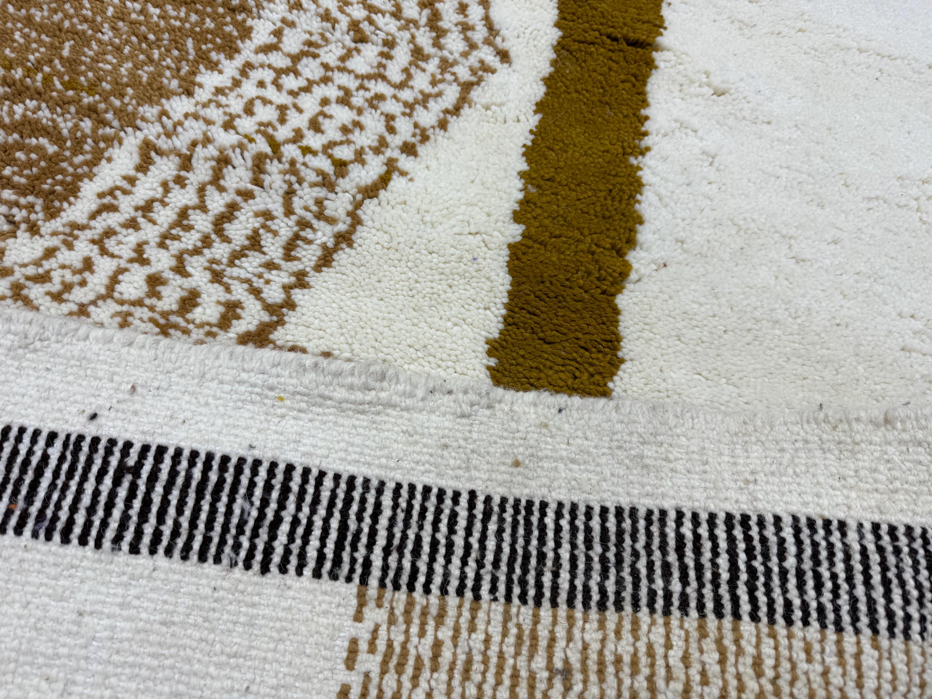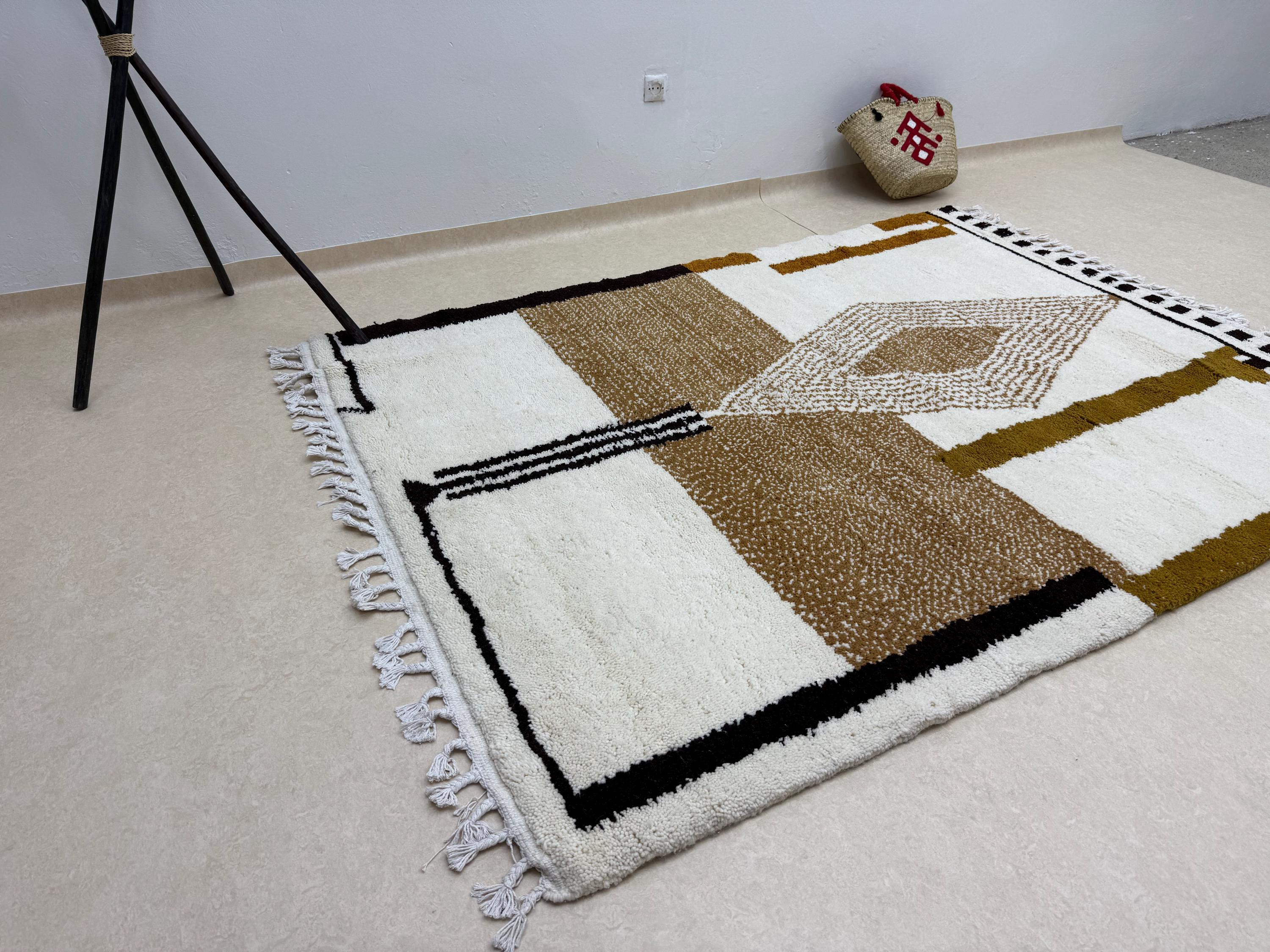 Add a touch of warmth and style to your space with this cozy wool rug. Handwoven with a modern Beni Ourain design in brown and white, this Moroccan rug features an abstract custom design that is both unique and eye-catching. Made to last, this durable area rug will elevate any room in your home with its Berber carpet charm.