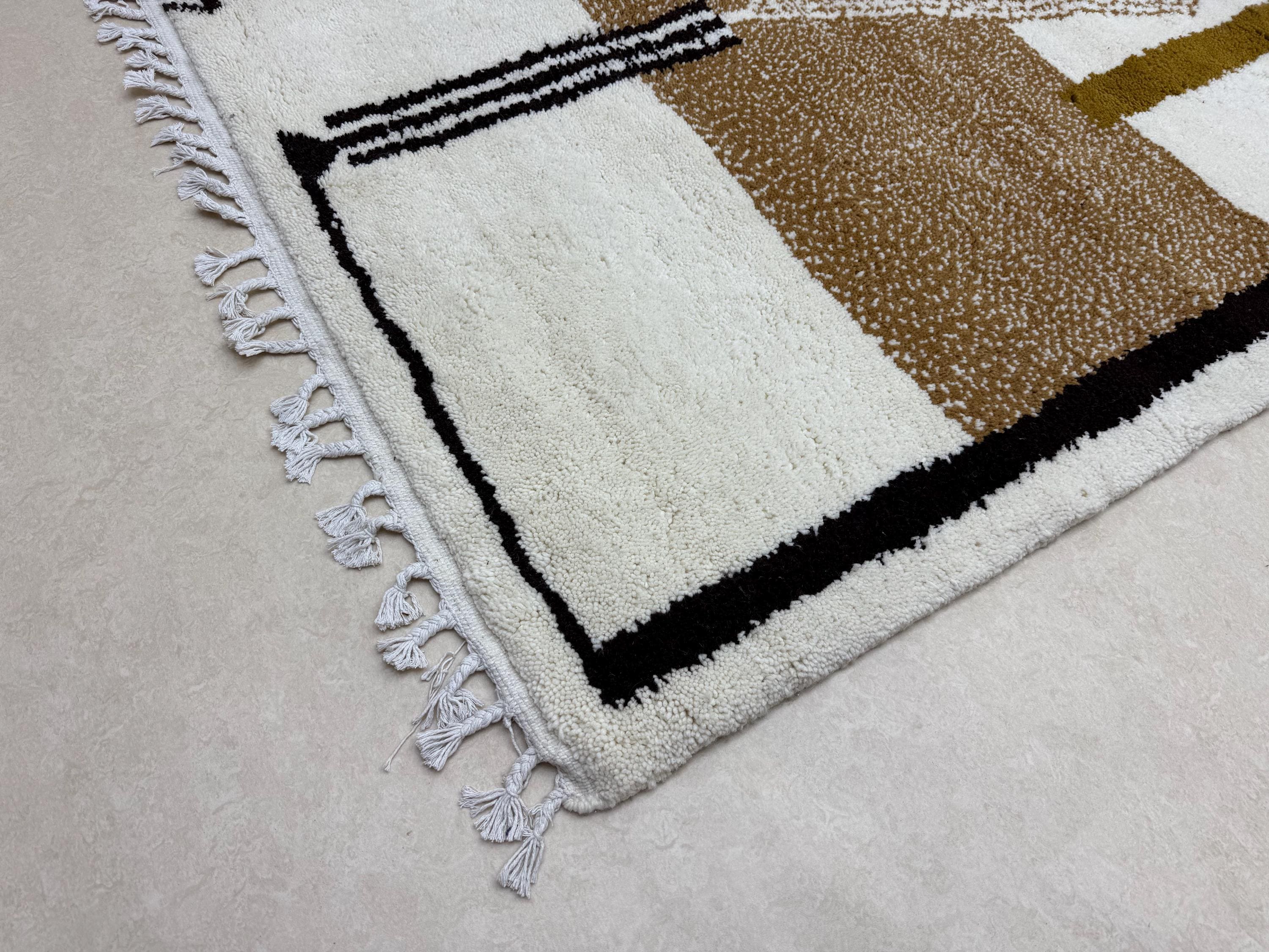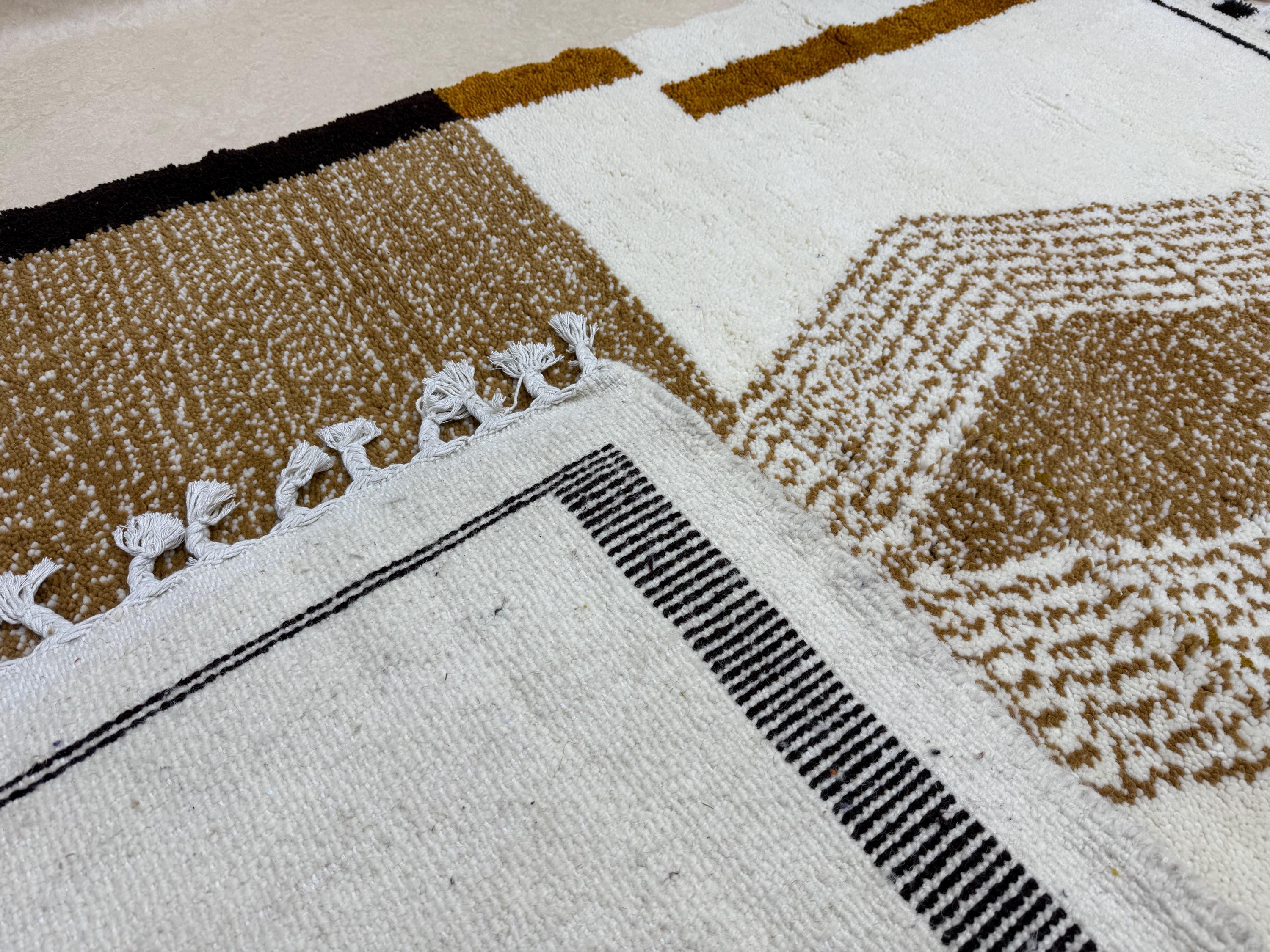 Add a touch of warmth and style to your space with this cozy wool rug. Handwoven with a modern Beni Ourain design in brown and white, this Moroccan rug features an abstract custom design that is both unique and eye-catching. Made to last, this durable area rug will elevate any room in your home with its Berber carpet charm.