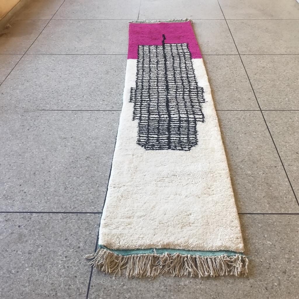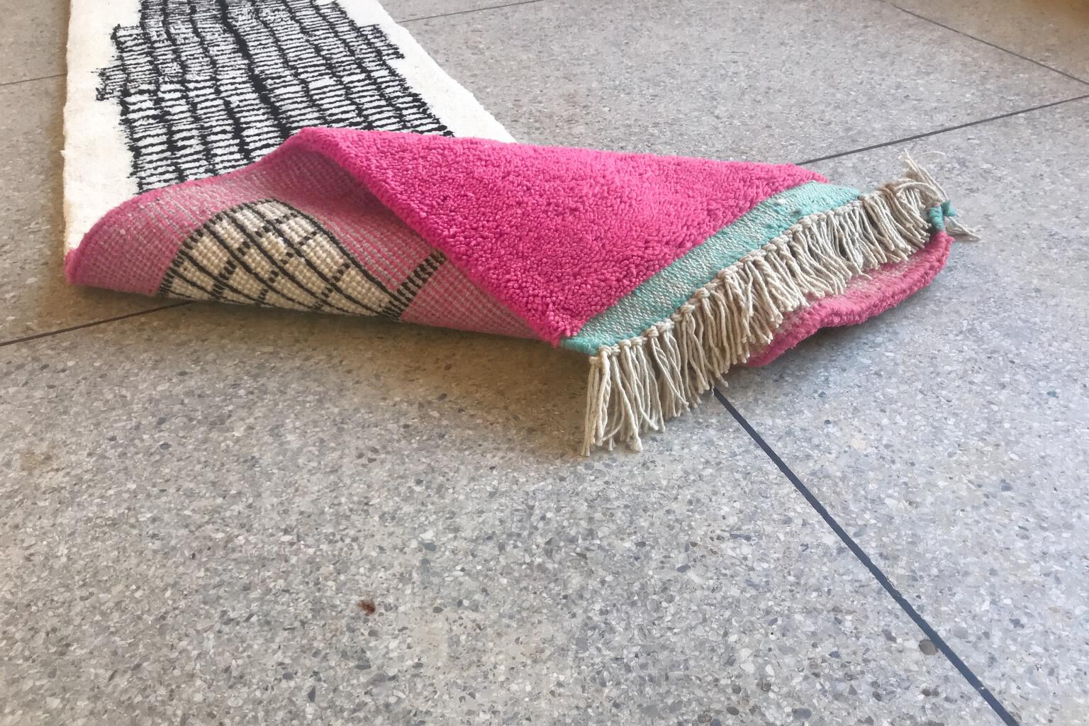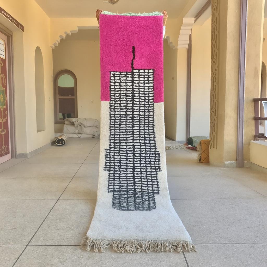 Elevate your space with this exquisite Moroccan Runner Rug in pink and white hues. Handwoven by Berber artisans, this custom wool rug is perfect for your hallway or entryway to add a touch of boho chic. Embrace the beauty of traditional Beni Ourain design in this unique and vibrant abstract runner. Bring home a piece of Moroccan culture and style today!