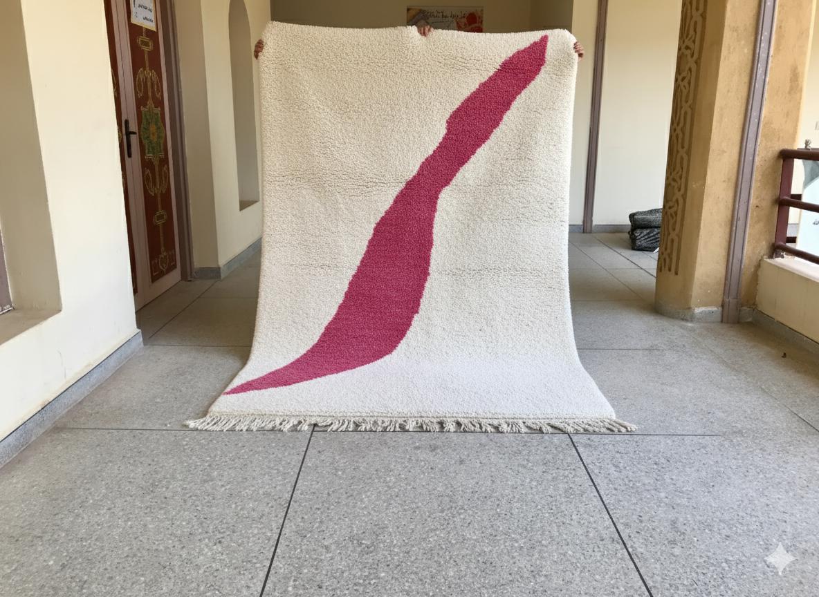 Transform your living space with this stunning Beni Ourain rug. Crafted with care and passion, this custom Moroccan rug features a mesmerizing Pink abstract design on a white background. Handmade from high-quality wool, this contemporary Berber rug adds warmth and style to any room. Elevate your decor effortlessly with this unique piece.