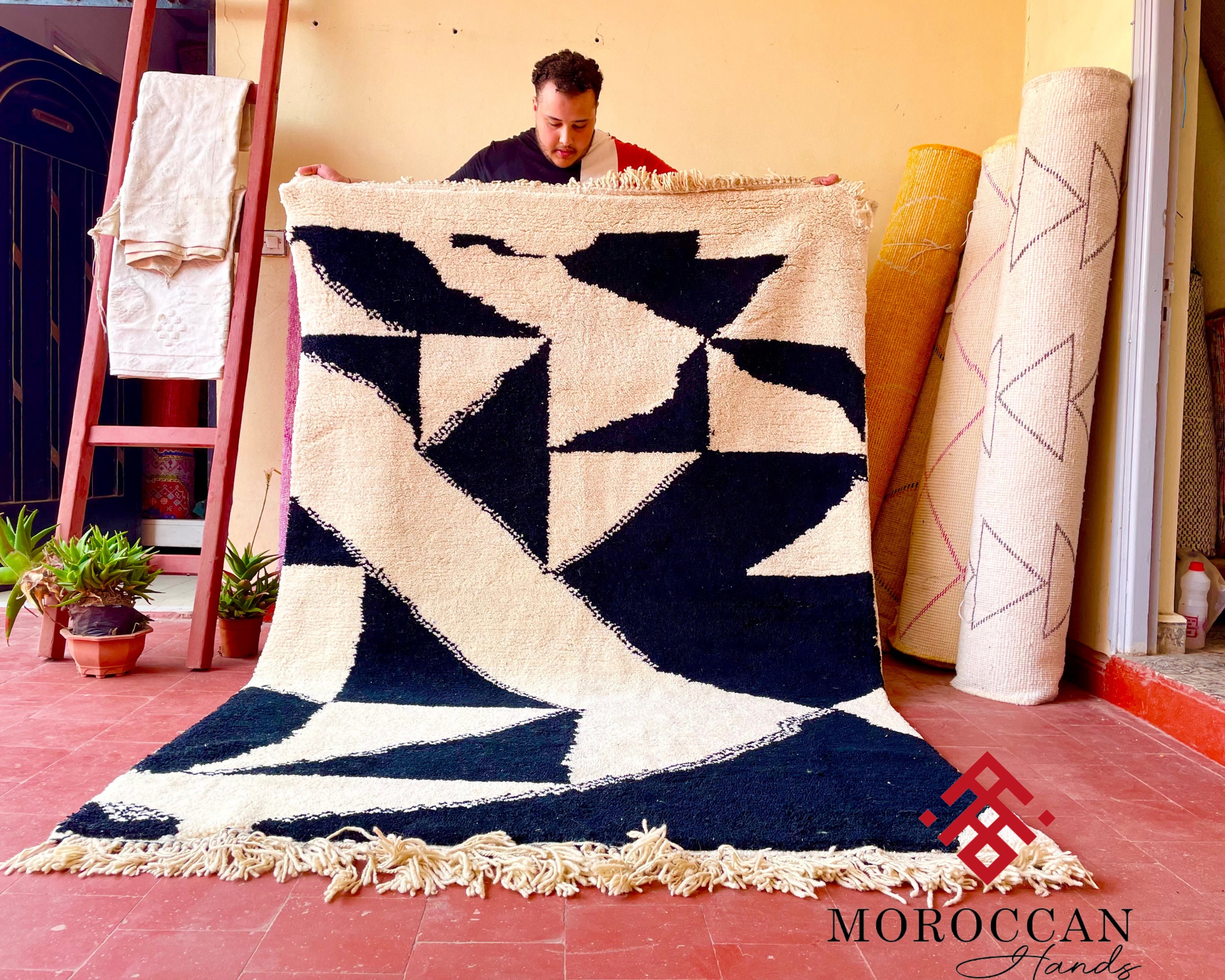 "Transform your home with a piece of Moroccan heritage that exudes both elegance and warmth 🌟. Whether placed under your sofa 🛋️, in your bedroom 🛏️, or even as a wall hanging 🖼️, these rugs invite a sense of history, style, and comfort 🧶✨. Explore our full collection of Beni Ourain, Azilal, and Boucherouite rugs for unique pieces that tell a story 📚💫."