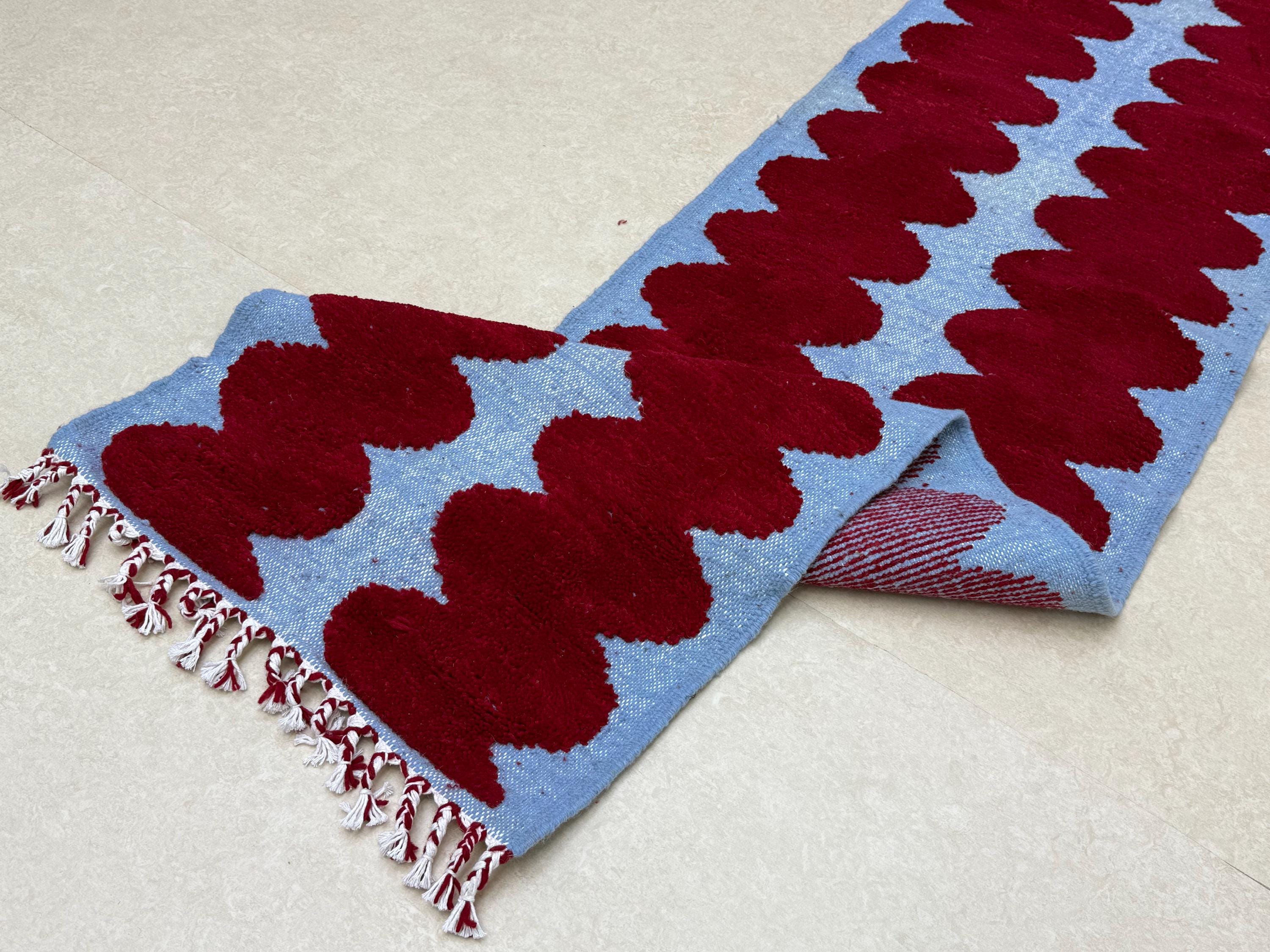 Transform your space with our Handmade Custom Moroccan Runner, crafted from luxurious red and blue wool. This Beni Ourain hallway runner rug features vibrant stripes that bring a bohemian touch to your entryway. Perfect for enhancing any decor, its unique design adds warmth and character to your home. Each rug is handmade, ensuring quality and individuality. Elevate your interior with this stunning piece that combines functionality and style. Perfect for anyone seeking a cozy and stylish atmosphere!