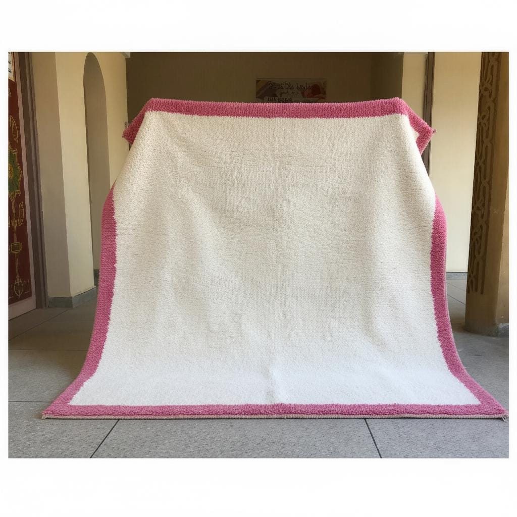 Transform your space with our Custom Beni Ourain Moroccan Rug, beautifully crafted in a stunning pink and white color scheme. This exquisite Berber carpet features a unique bordered pattern, adding a touch of elegance to your minimalist home decor. Handwoven from soft wool, it's not just a rug—it's a statement piece that brings warmth and style to any room. Perfect for living rooms, bedrooms, or office spaces, elevate your interiors with this timeless Moroccan design. Order your custom size today!