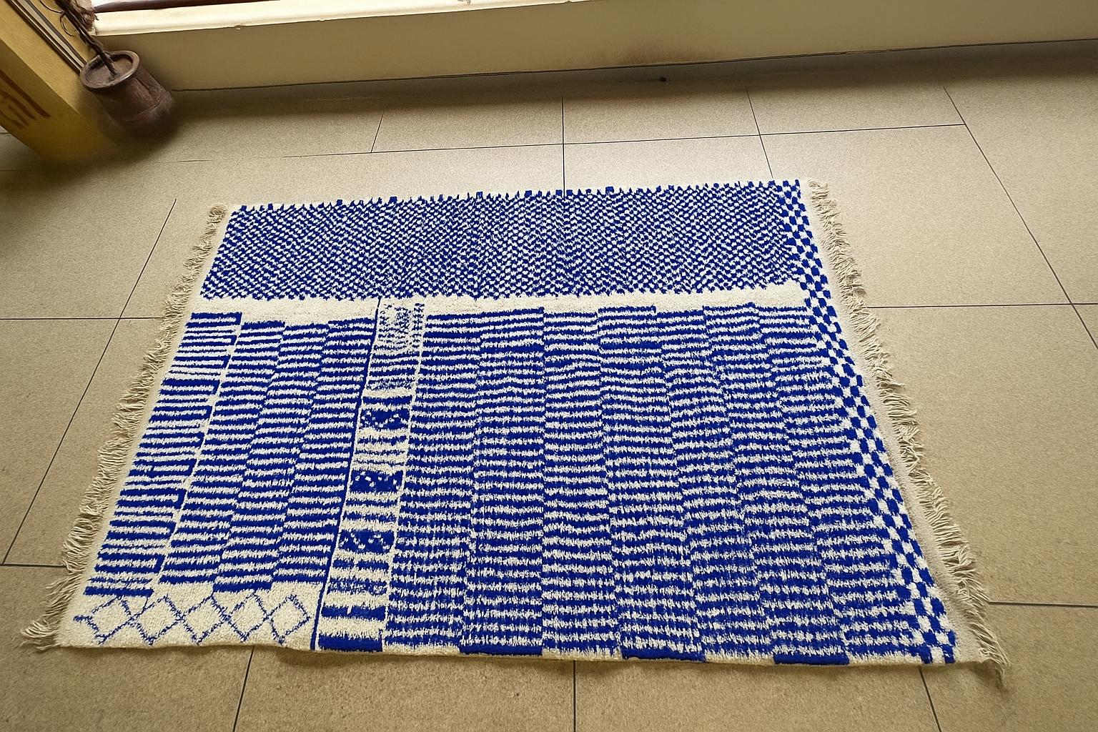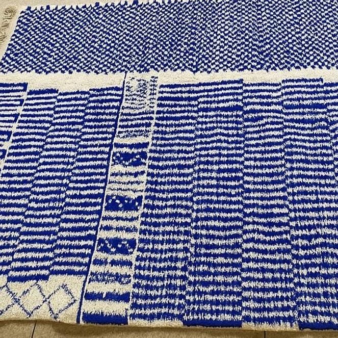 Transform your space with our charming Beniorain rug, a stunning custom Moroccan masterpiece. This handmade Berber rug features a captivating white and blue design, perfect for adding a touch of elegance to any room. Each handwoven checkered rug showcases exceptional craftsmanship, made from high-quality wool for a soft, durable finish. Ideal as an area rug, it effortlessly complements various decor styles. Elevate your home with this unique, artisanal piece that is sure to impress!