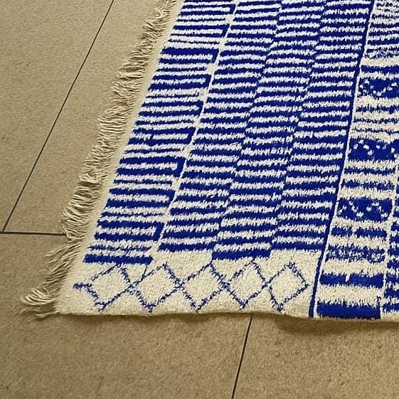 "Transform your home with a piece of Moroccan heritage that exudes both elegance and warmth 🌟. Whether placed under your sofa 🛋️, in your bedroom 🛏️, or even as a wall hanging 🖼️, these rugs invite a sense of history, style, and comfort 🧶✨ Explore our full collection of Beni Ourain, Azilal, and Boucherouite rugs for unique pieces that tell a story 📚💫.”