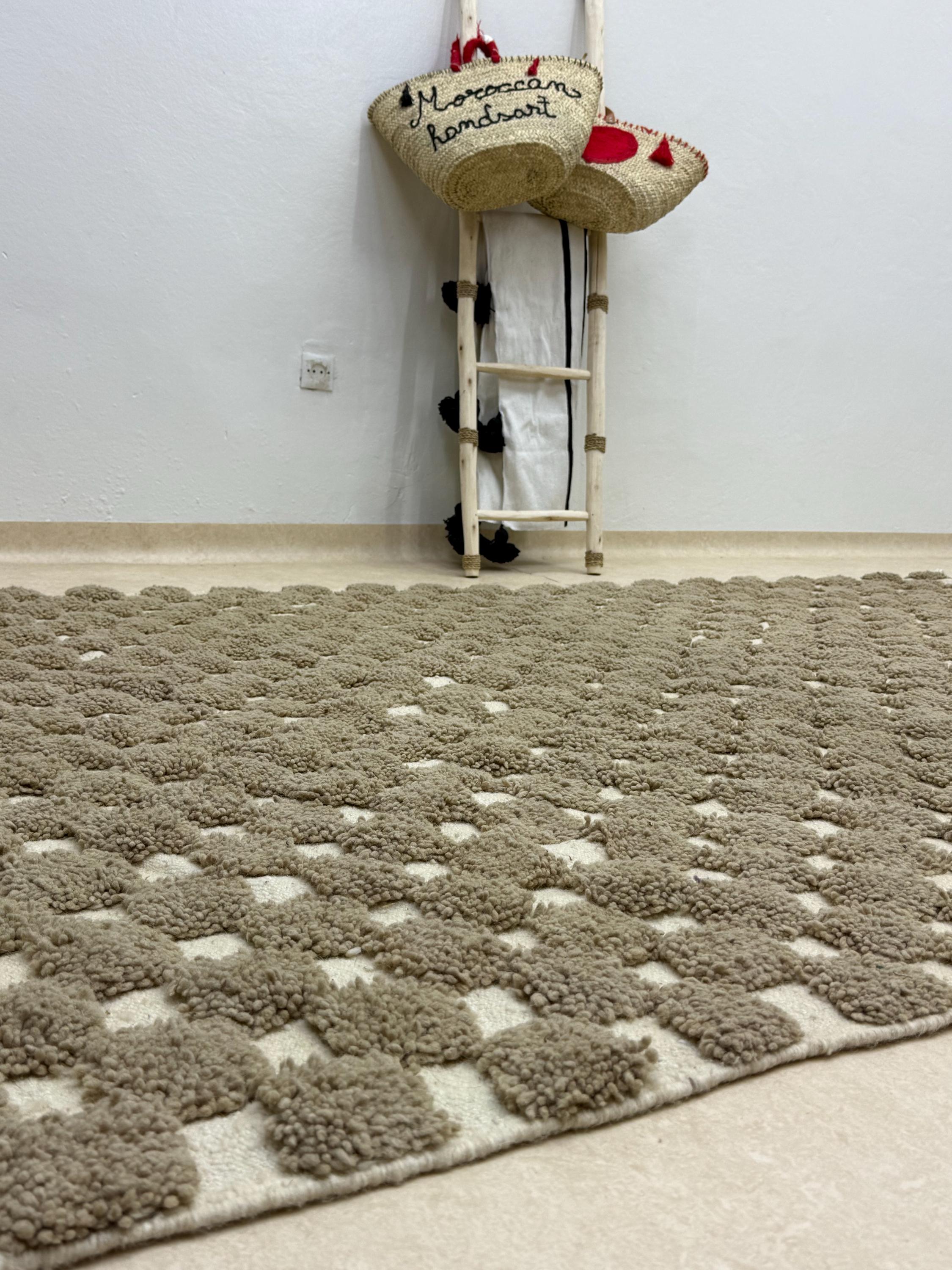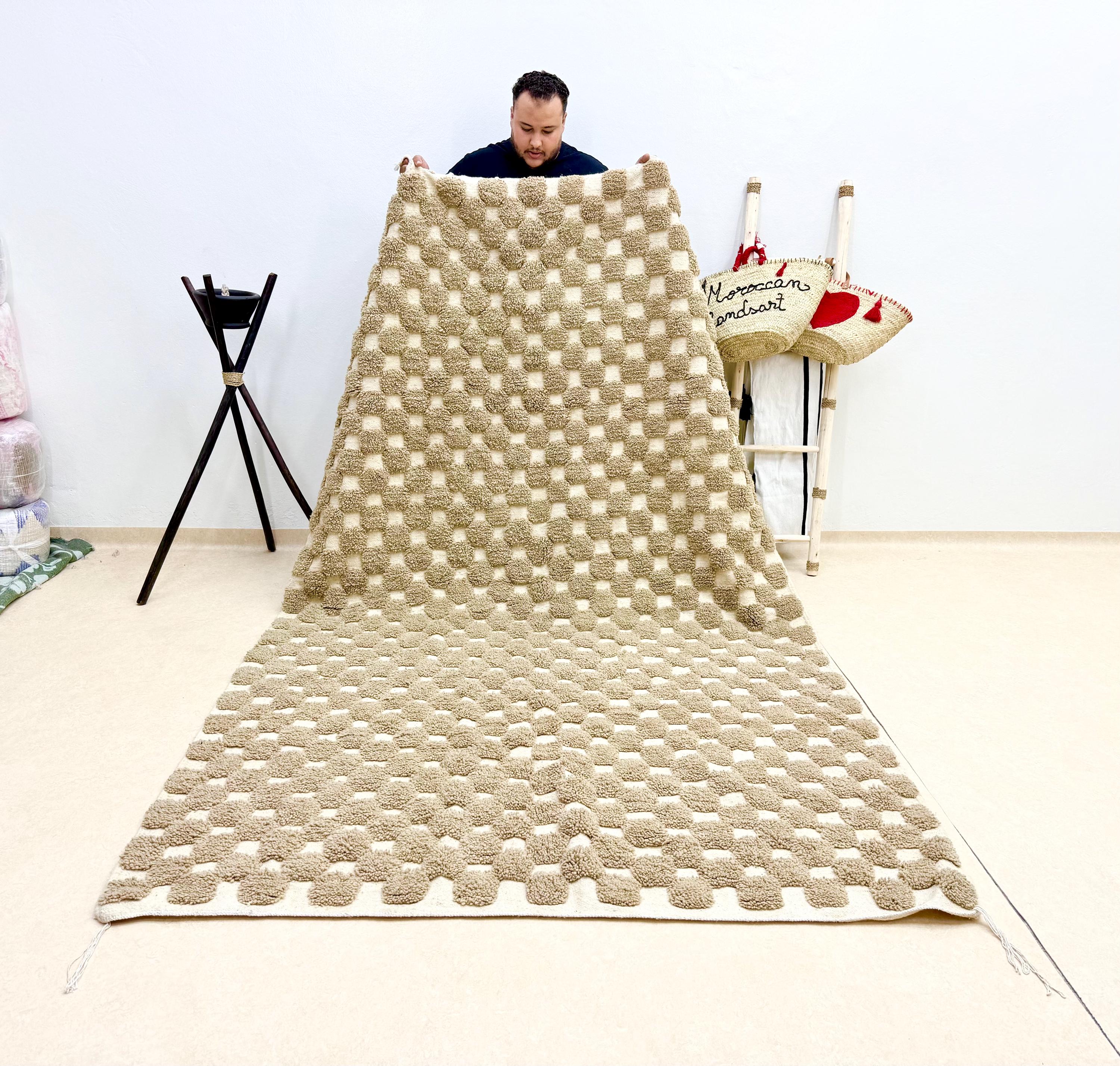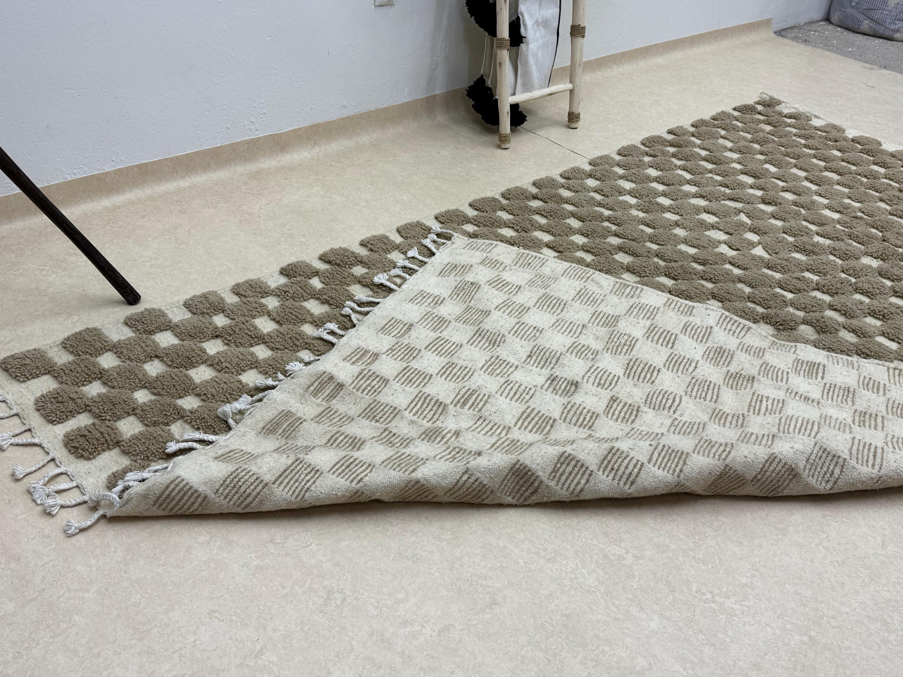 Transform your space with our Fluffy Handmade Rug! This stunning Checkered Brown & White Rug adds a touch of warmth and elegance to any room. Crafted with care, our Luxurious Moroccan Rug features a classic design reminiscent of traditional Beni Ourain style. Made from high-quality wool, this Tufted Berber Carpet promises durability and softness underfoot. Perfect for living rooms or bedrooms, this High-Quality Wool Rug elevates your decor while providing comfort. Grab yours today and enjoy the luxury!