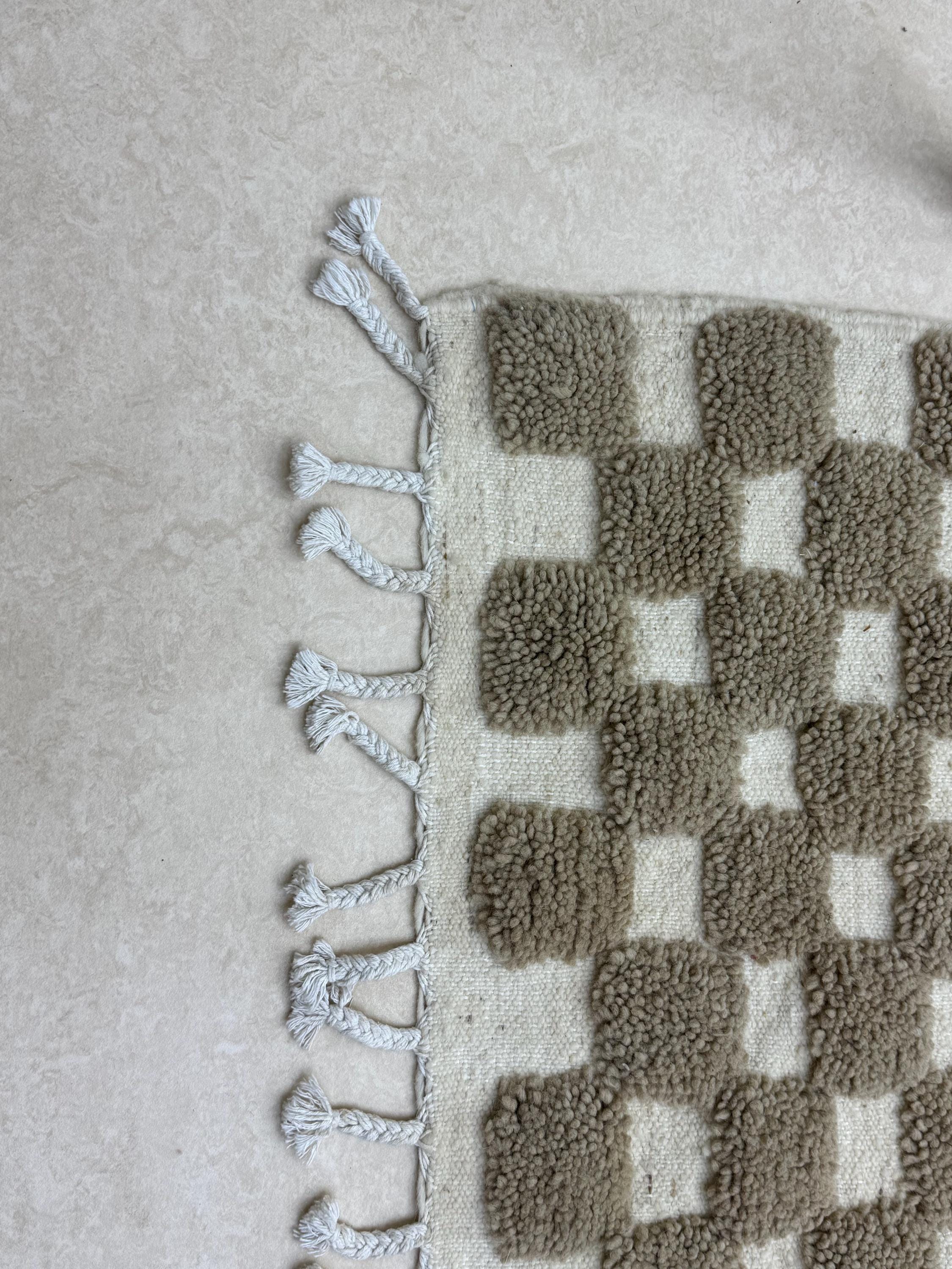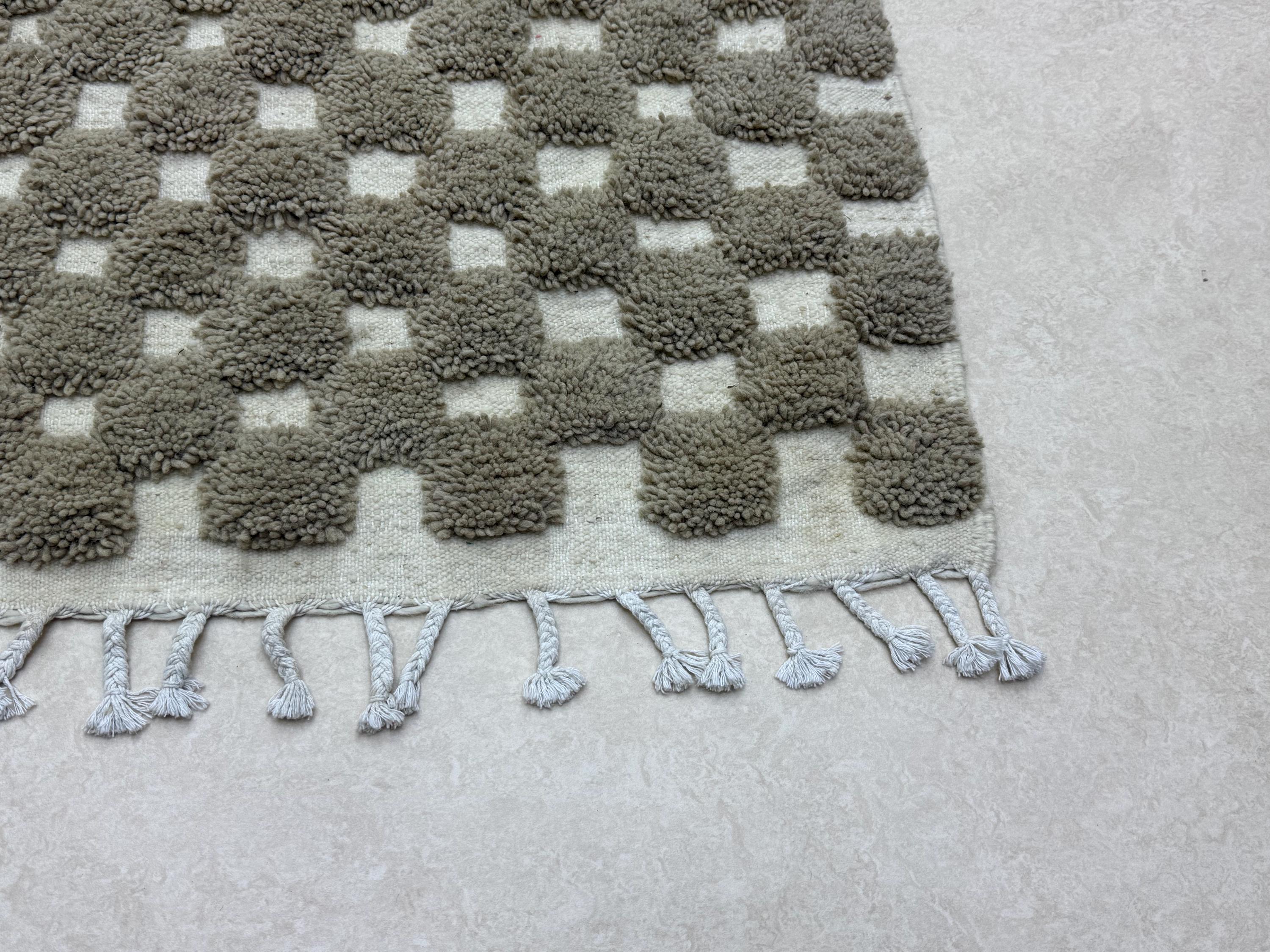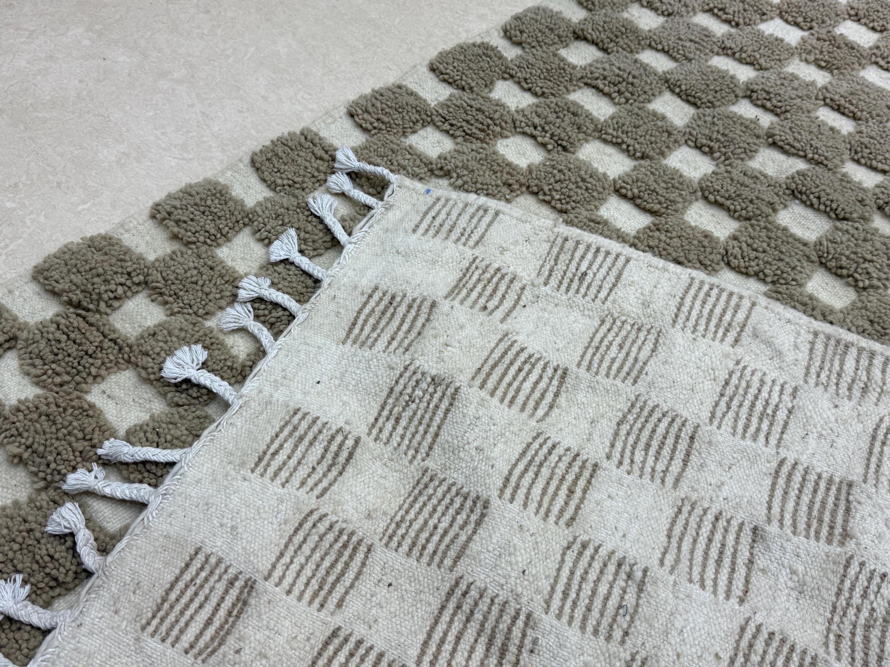 Transform your space with our Fluffy Handmade Rug! This stunning Checkered Brown & White Rug adds a touch of warmth and elegance to any room. Crafted with care, our Luxurious Moroccan Rug features a classic design reminiscent of traditional Beni Ourain style. Made from high-quality wool, this Tufted Berber Carpet promises durability and softness underfoot. Perfect for living rooms or bedrooms, this High-Quality Wool Rug elevates your decor while providing comfort. Grab yours today and enjoy the luxury!
