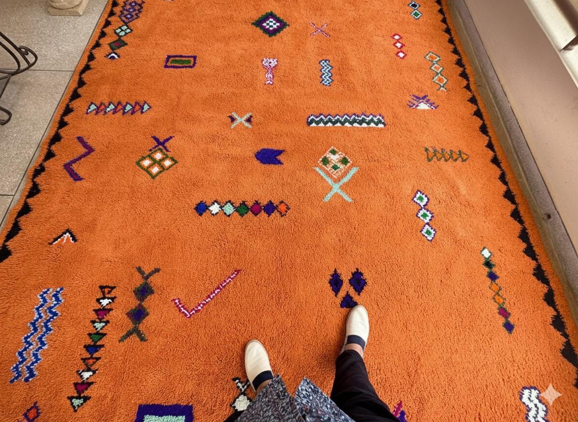 "Transform your home with a piece of Moroccan heritage that exudes both elegance and warmth 🌟. Whether placed under your sofa 🛋️, in your bedroom 🛏️, or even as a wall hanging 🖼️, these rugs invite a sense of history, style, and comfort 🧶✨. Explore our full collection of Beni Ourain, Azilal, and Boucherouite rugs for unique pieces that tell a story 📚💫."