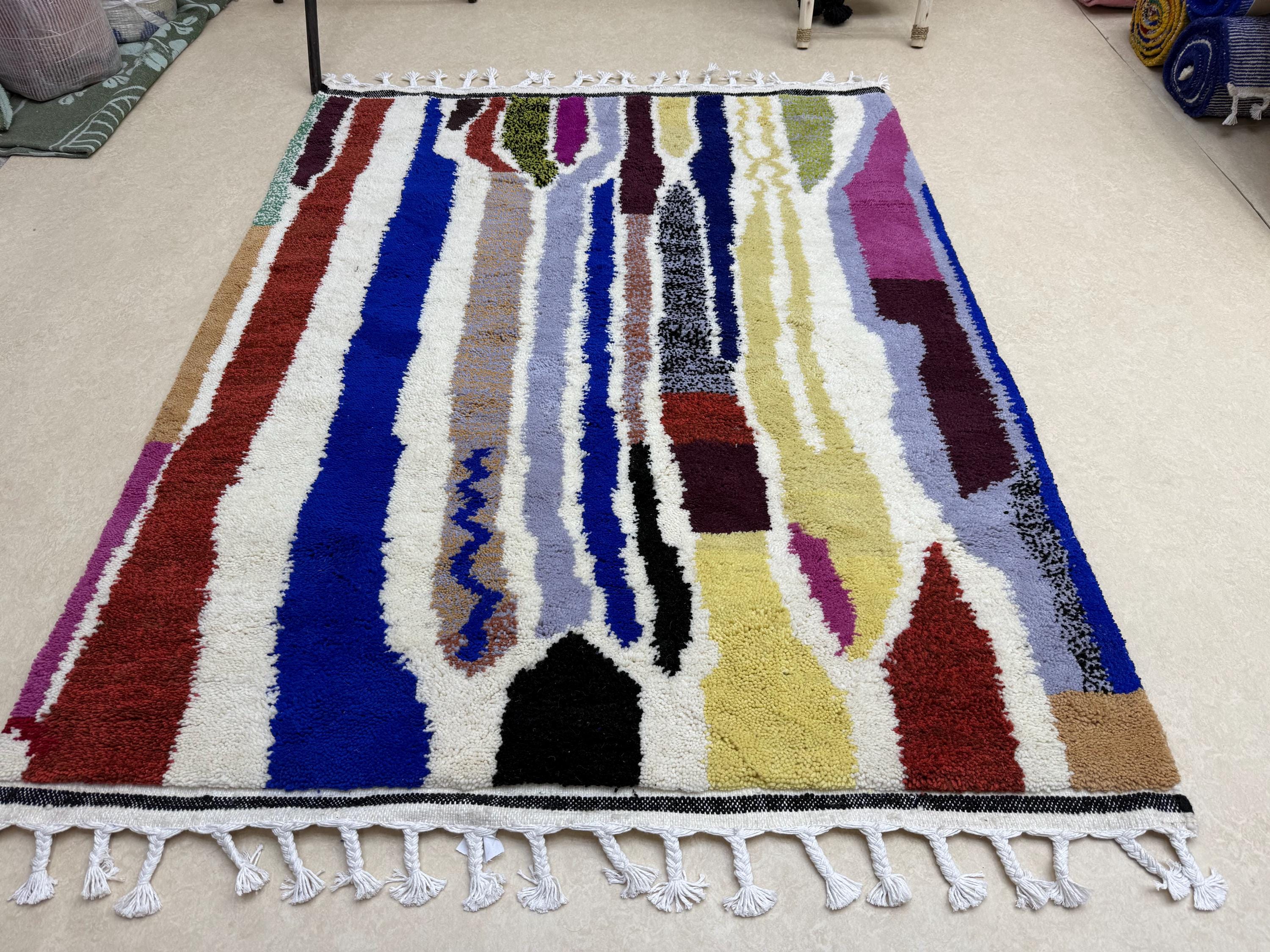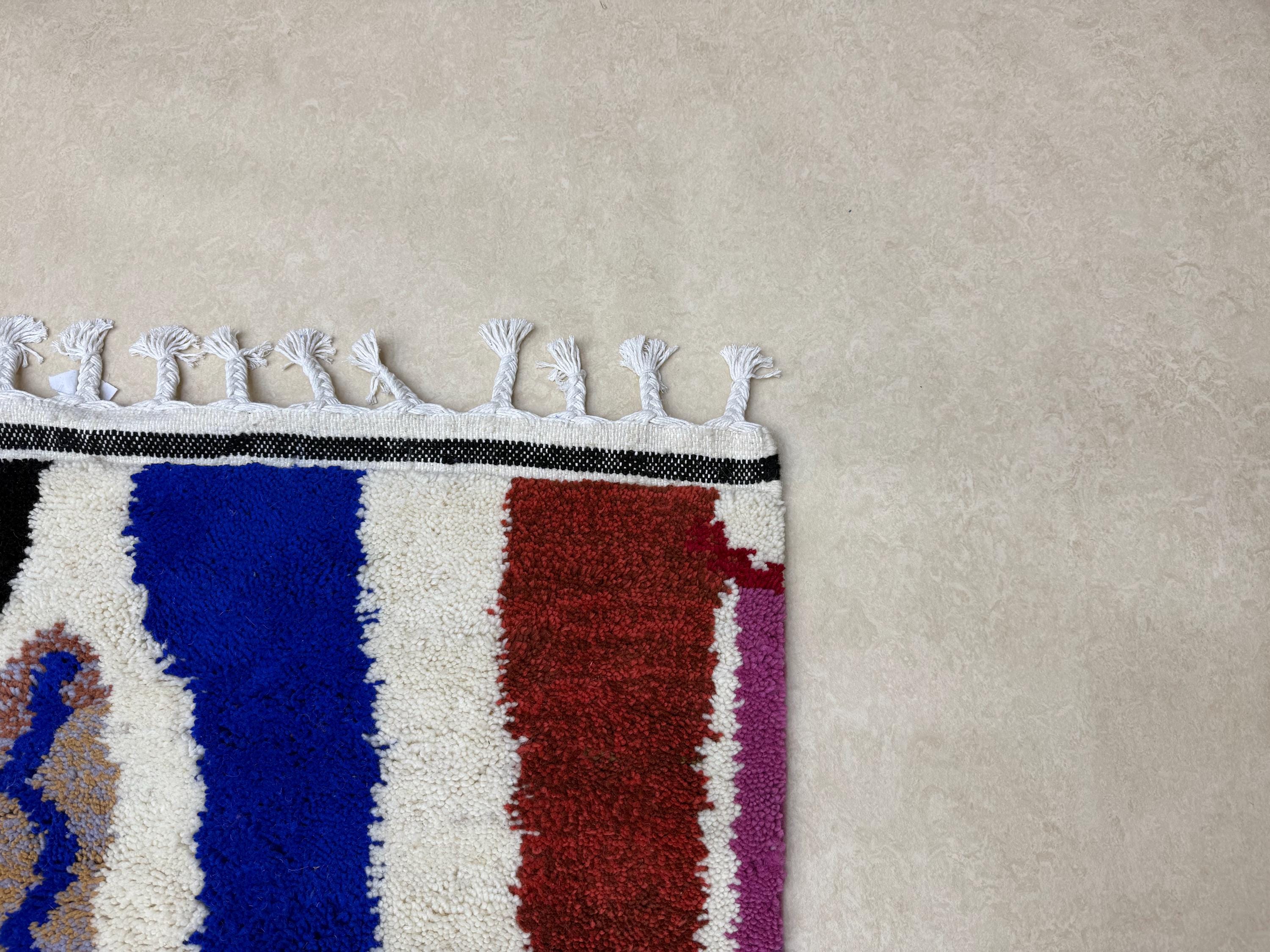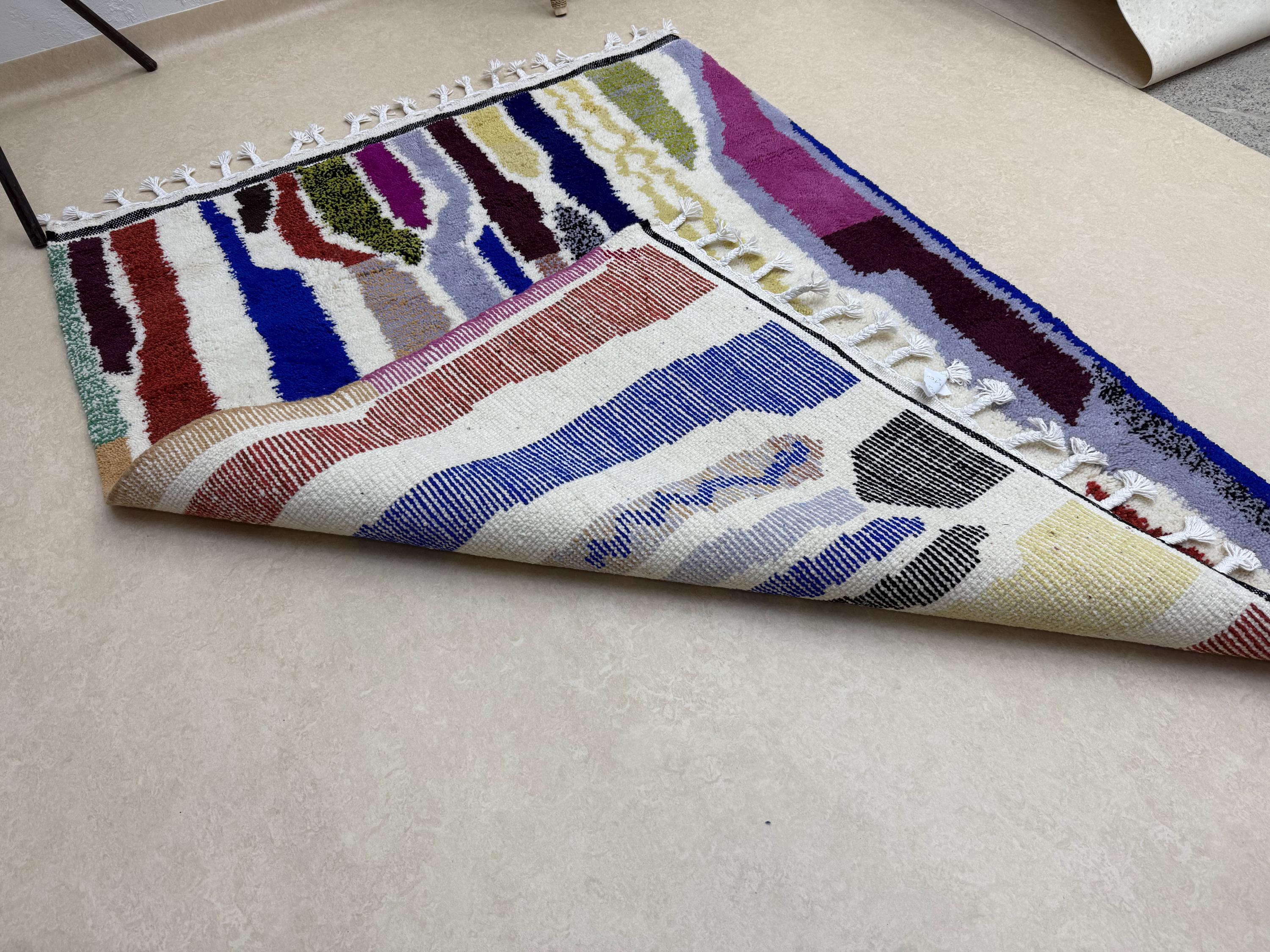 Transform your space with our stunning Multicolor Area Rug, a striking blend of contemporary design and traditional craftsmanship. This Handmade Modern Floor Accent features a unique abstract pattern inspired by the iconic Beni Ourain style, crafted from soft shag carpet. Perfect for adding warmth and style, our Custom Moroccan Rug elevates any room. Embrace comfort and artistry with this exquisite Abstract Pattern Berber Rug—ideal for living rooms, bedrooms, or any area that needs that perfect pop!