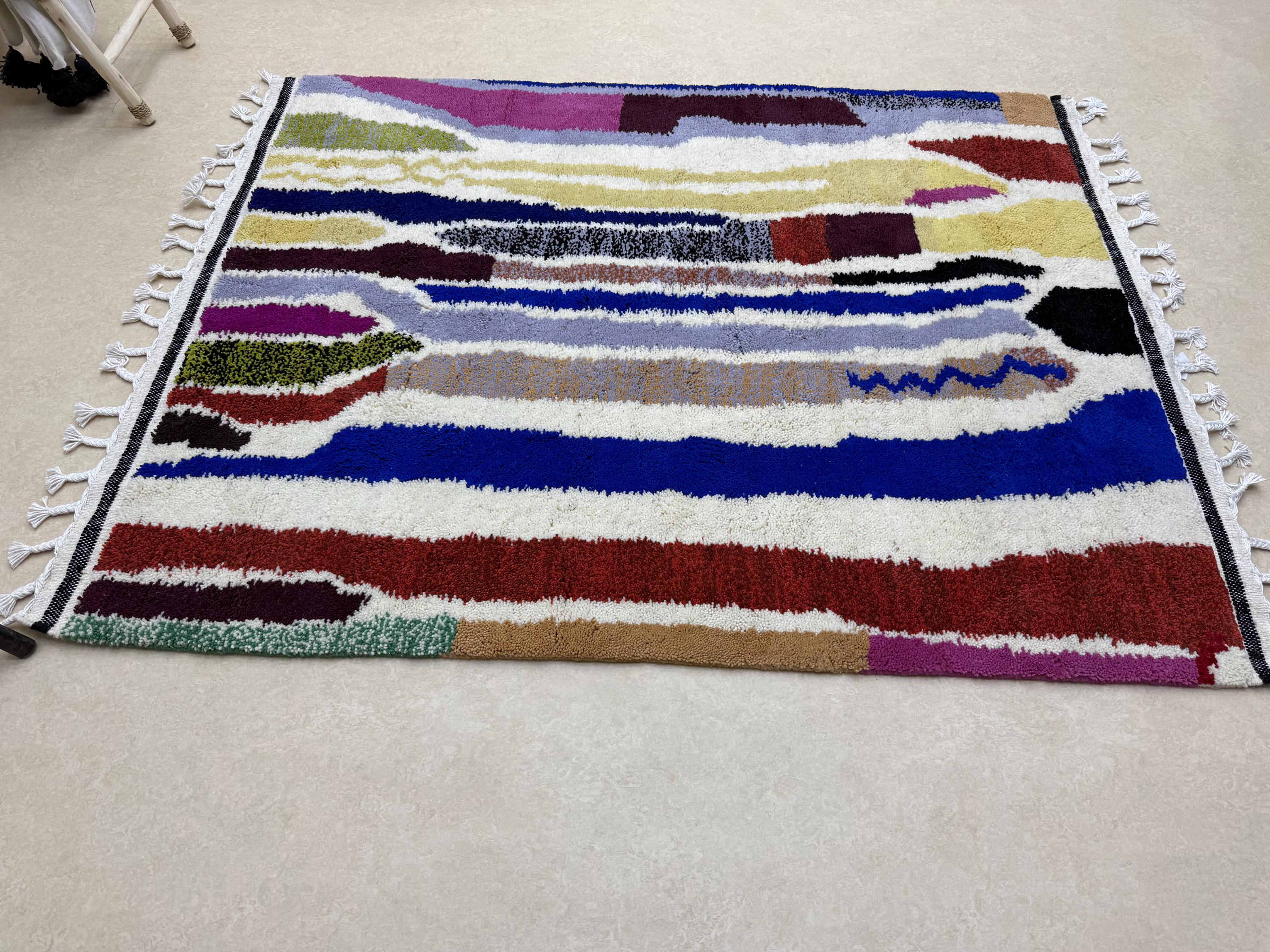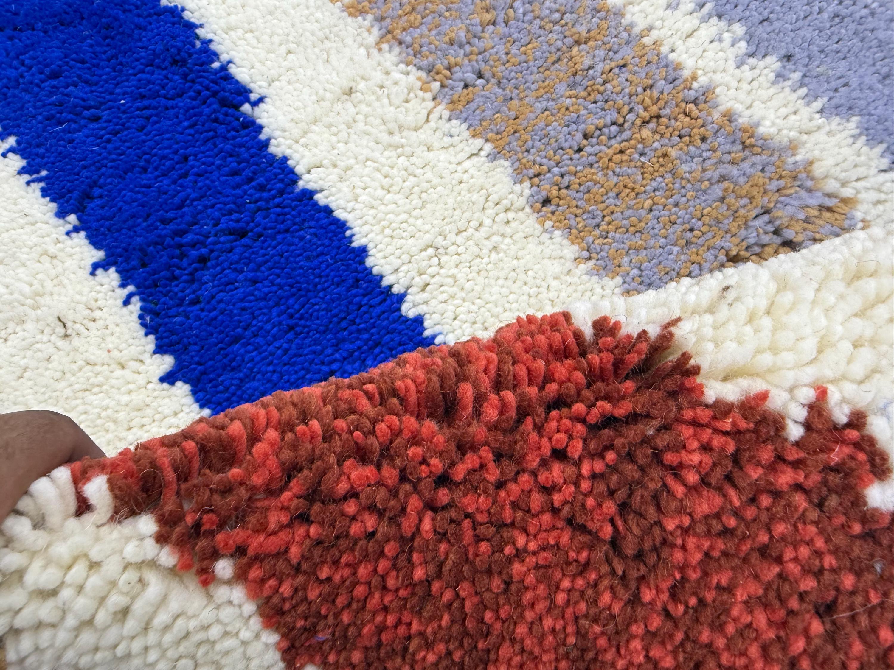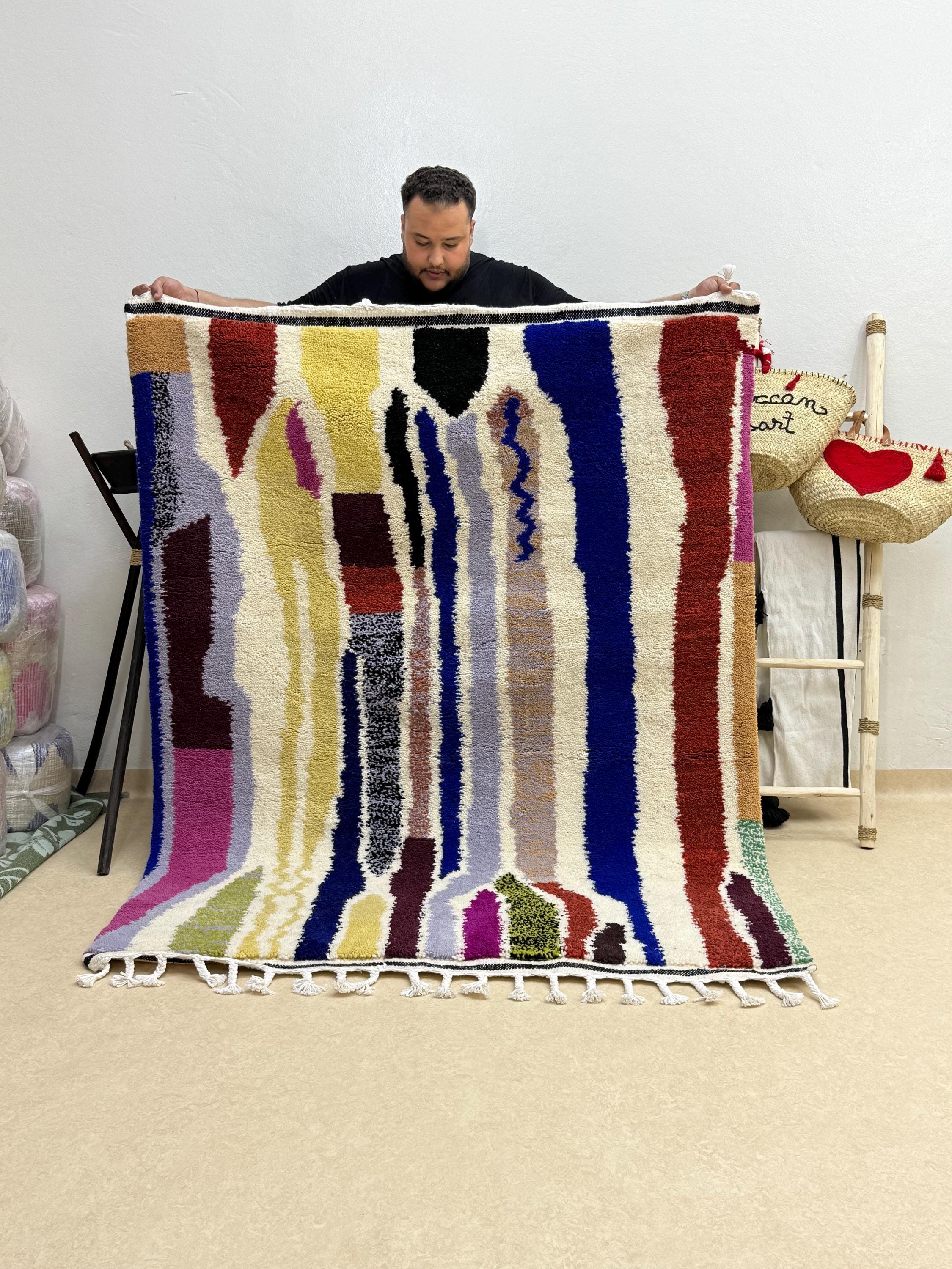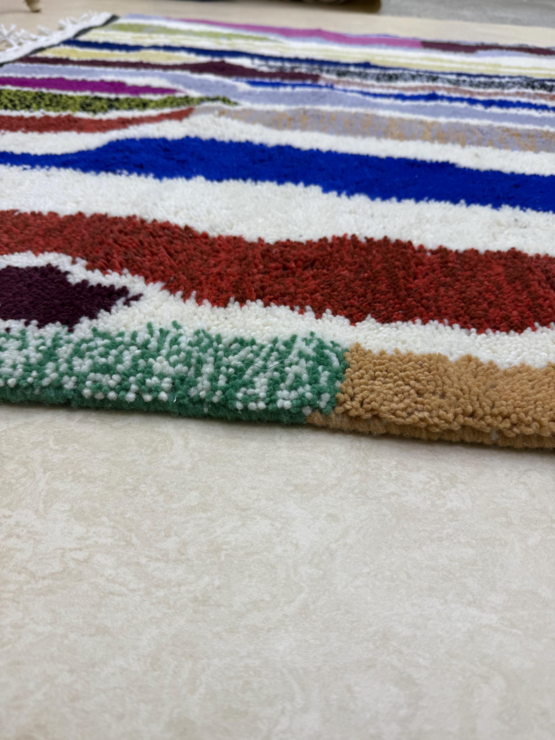 Transform your space with our stunning Multicolor Area Rug, a striking blend of contemporary design and traditional craftsmanship. This Handmade Modern Floor Accent features a unique abstract pattern inspired by the iconic Beni Ourain style, crafted from soft shag carpet. Perfect for adding warmth and style, our Custom Moroccan Rug elevates any room. Embrace comfort and artistry with this exquisite Abstract Pattern Berber Rug—ideal for living rooms, bedrooms, or any area that needs that perfect pop!