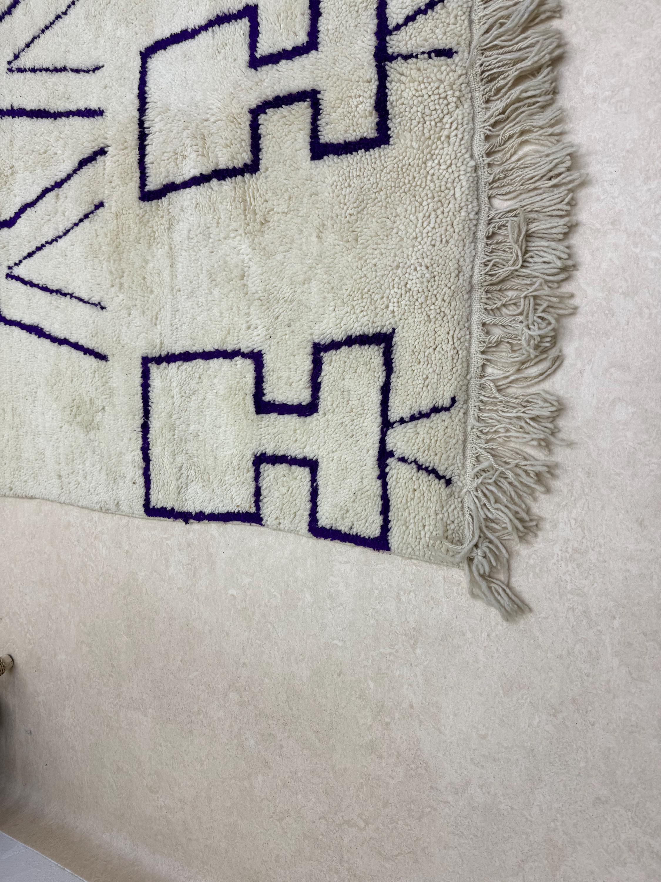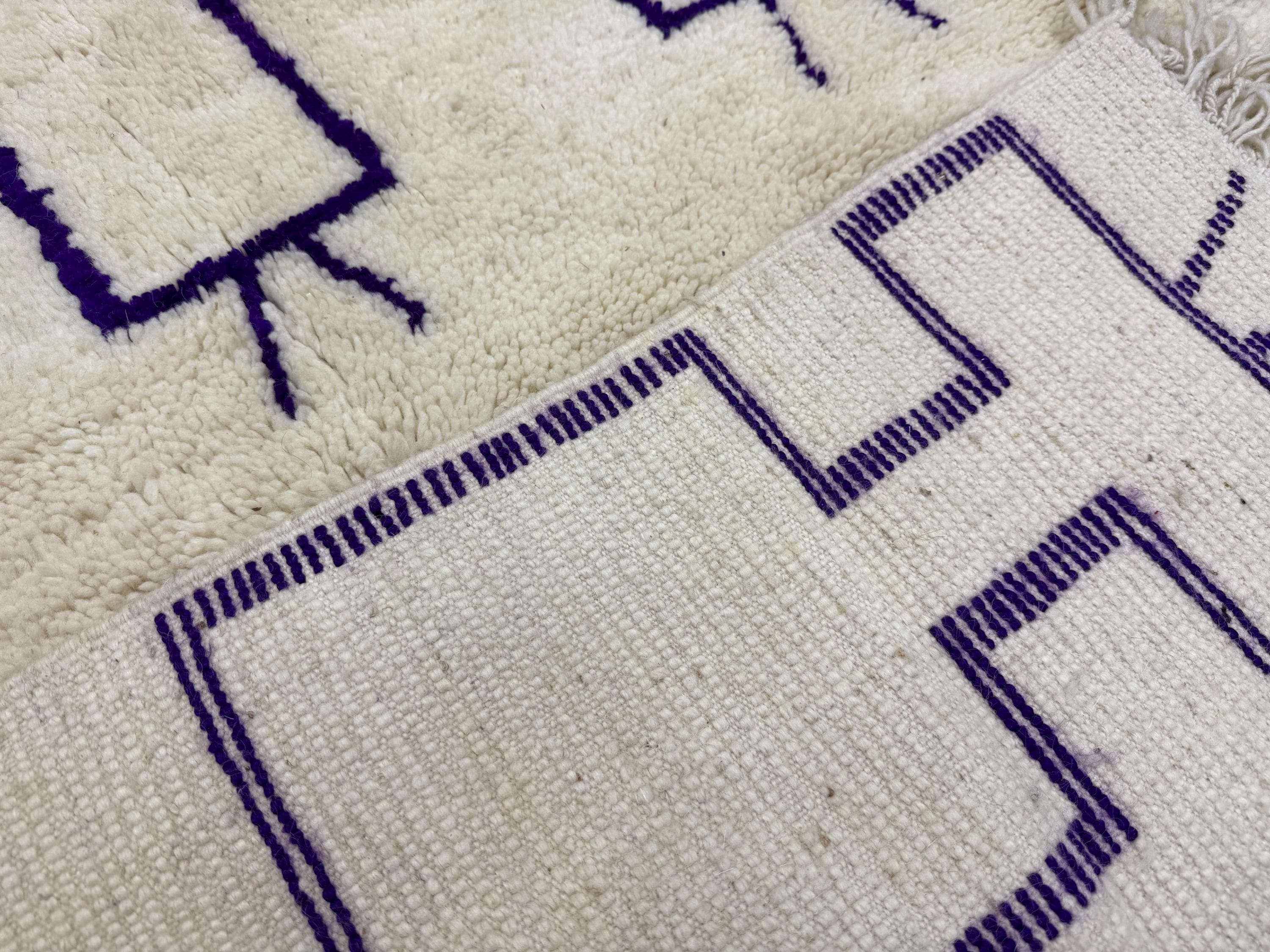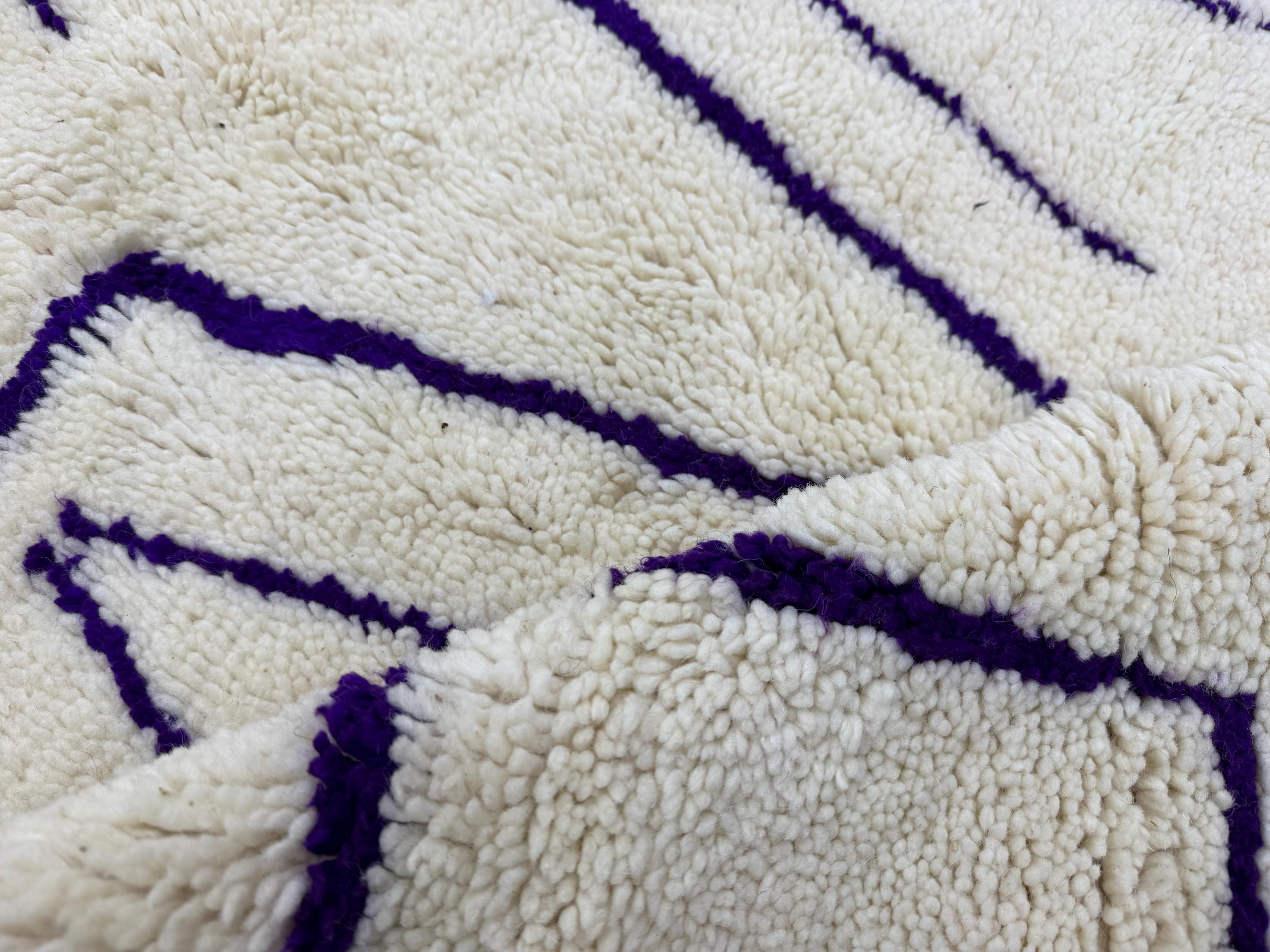 Elevate your space with our stunning 7.3x4.5ft MODERN BERBER CARPET! This Handmade Moroccan Rug features an Abstract Beni Ourain Design, beautifully showcasing a blend of white and purple hues. Crafted from high-quality artisan wool, this Shag Rug not only adds warmth and texture but is also perfect for any contemporary home. Transform your living area or bedroom with this unique floor covering that embodies both comfort and style. Experience the artistry of Moroccan craftsmanship today!