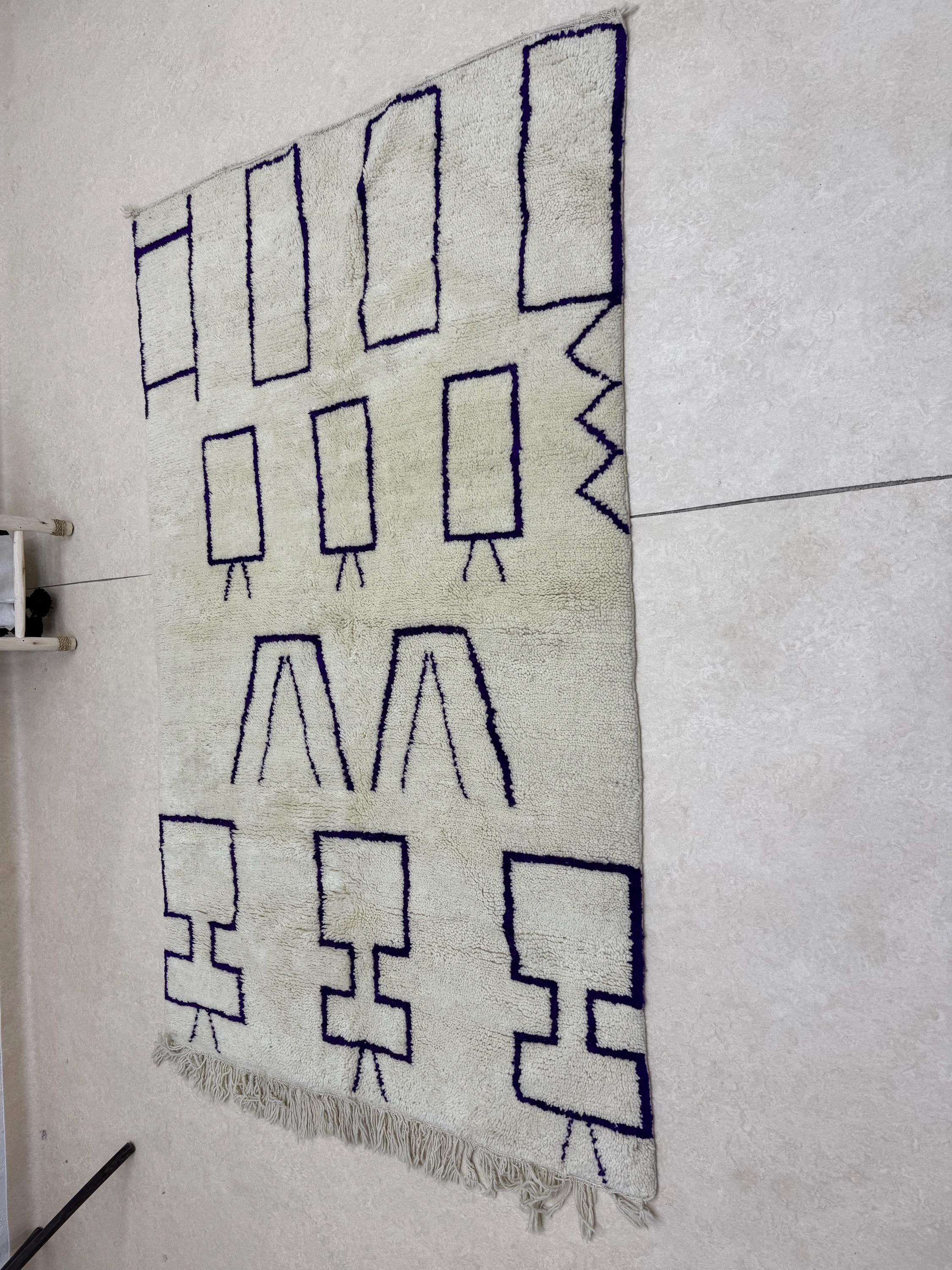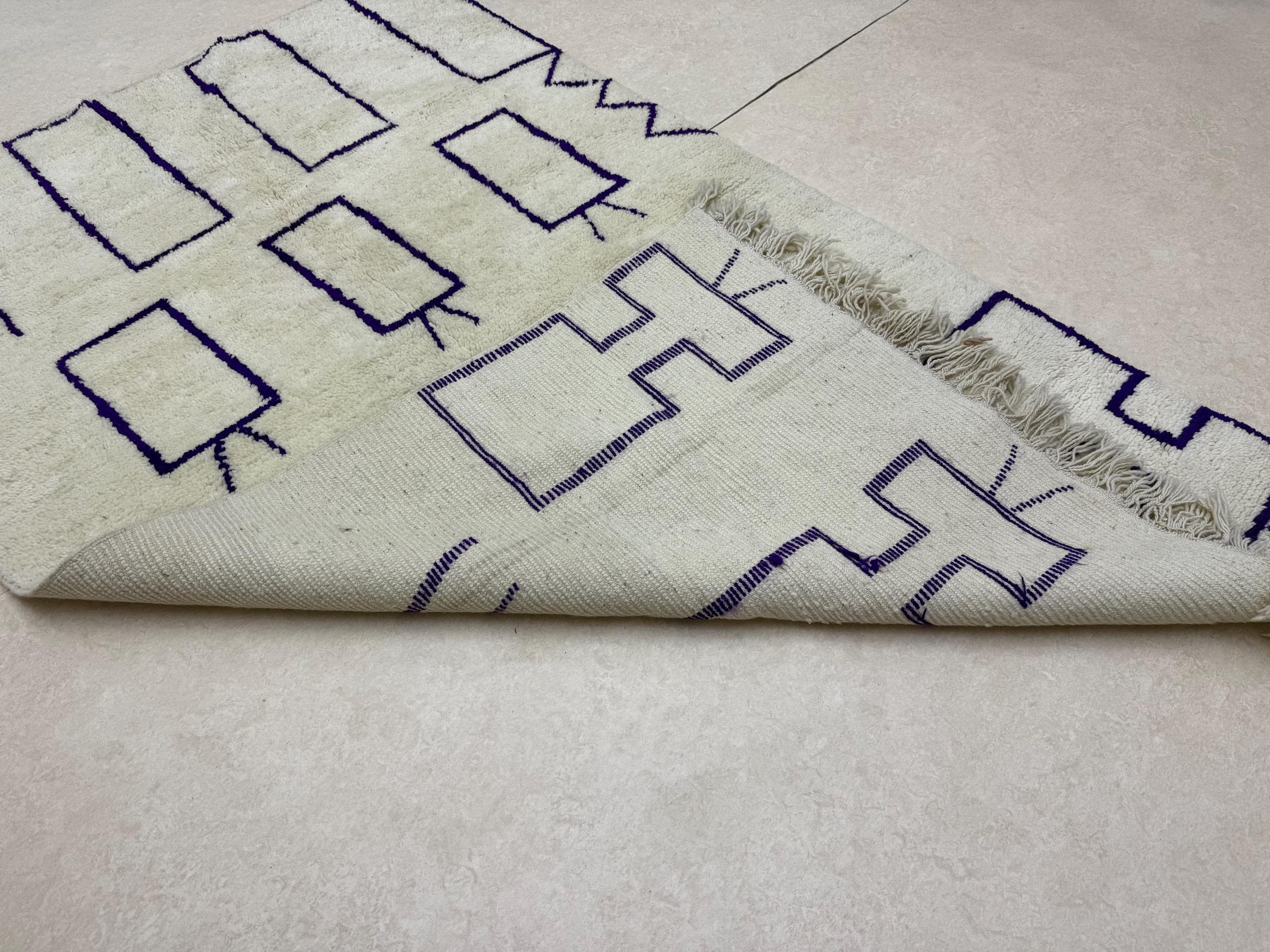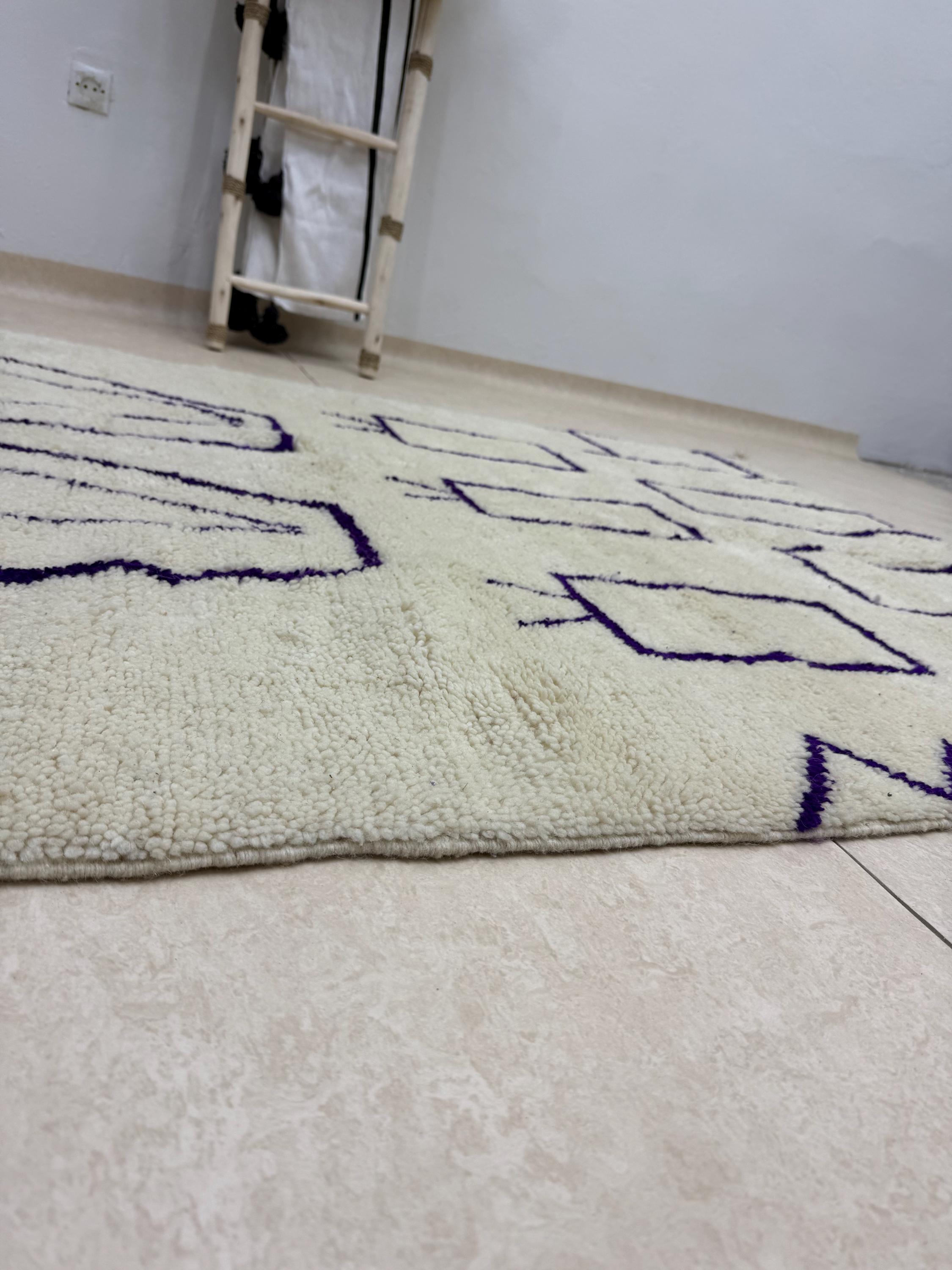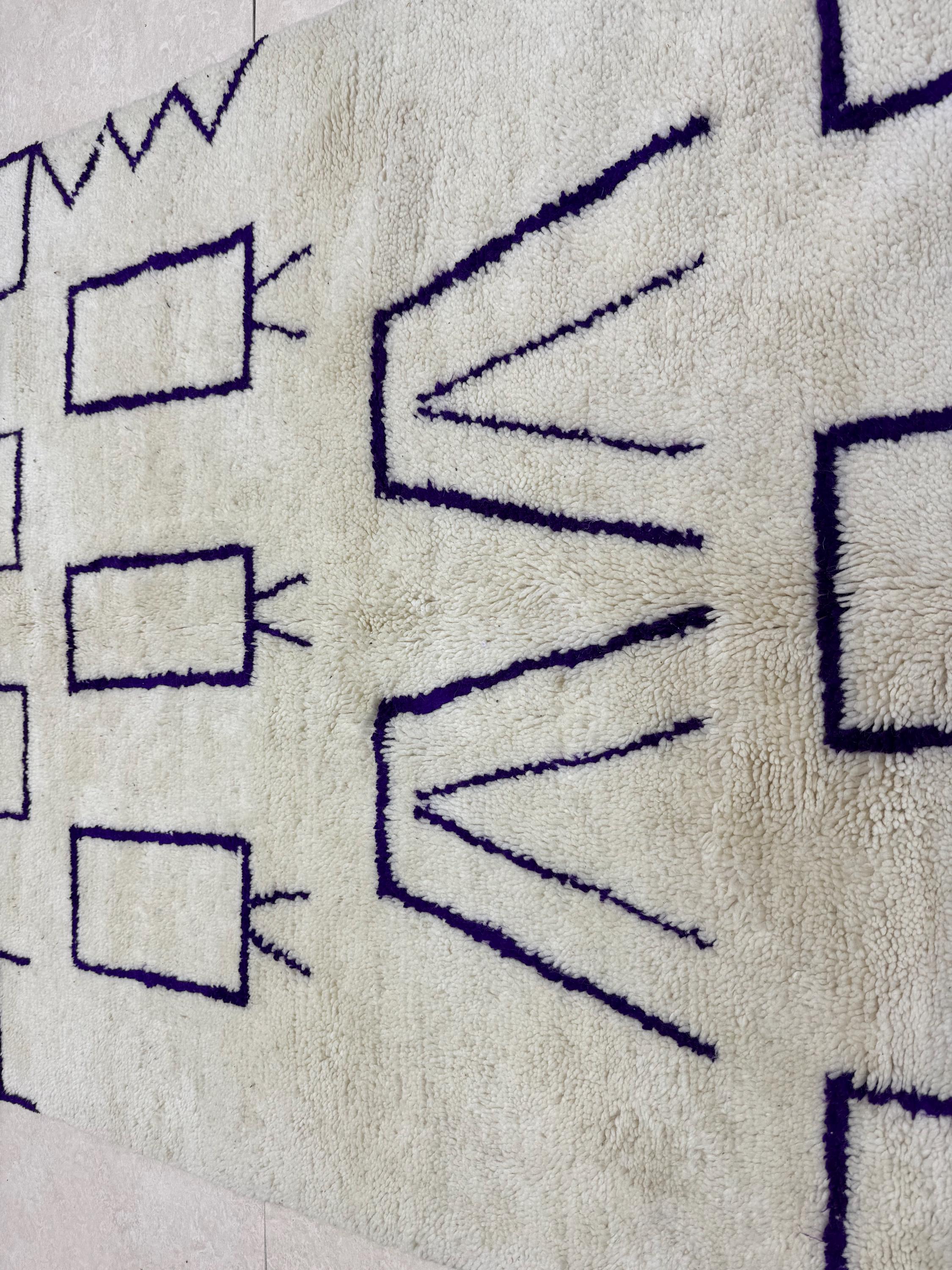 Elevate your space with our stunning 7.3x4.5ft MODERN BERBER CARPET! This Handmade Moroccan Rug features an Abstract Beni Ourain Design, beautifully showcasing a blend of white and purple hues. Crafted from high-quality artisan wool, this Shag Rug not only adds warmth and texture but is also perfect for any contemporary home. Transform your living area or bedroom with this unique floor covering that embodies both comfort and style. Experience the artistry of Moroccan craftsmanship today!