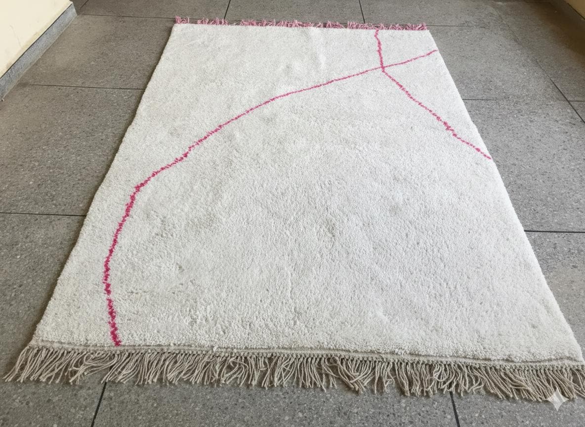 Transform your space with our stunning White & Pink Rug, a perfect blend of style and comfort. This Modern Abstract Moroccan Rug features a unique handwoven design, crafted from premium wool to elevate any room. Embrace minimalist elegance with our Beni Ourain-inspired rug, ideal for both contemporary and traditional interiors. Available in custom sizes, this versatile Berber Carpet is perfect for living rooms, bedrooms, or cozy office spaces. Elevate your decor with this unique centerpiece today!