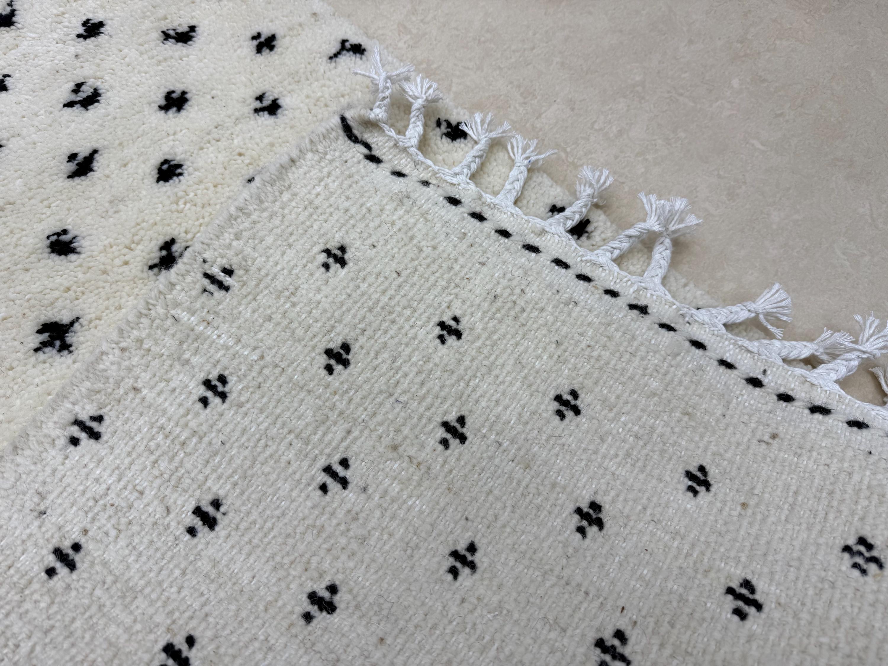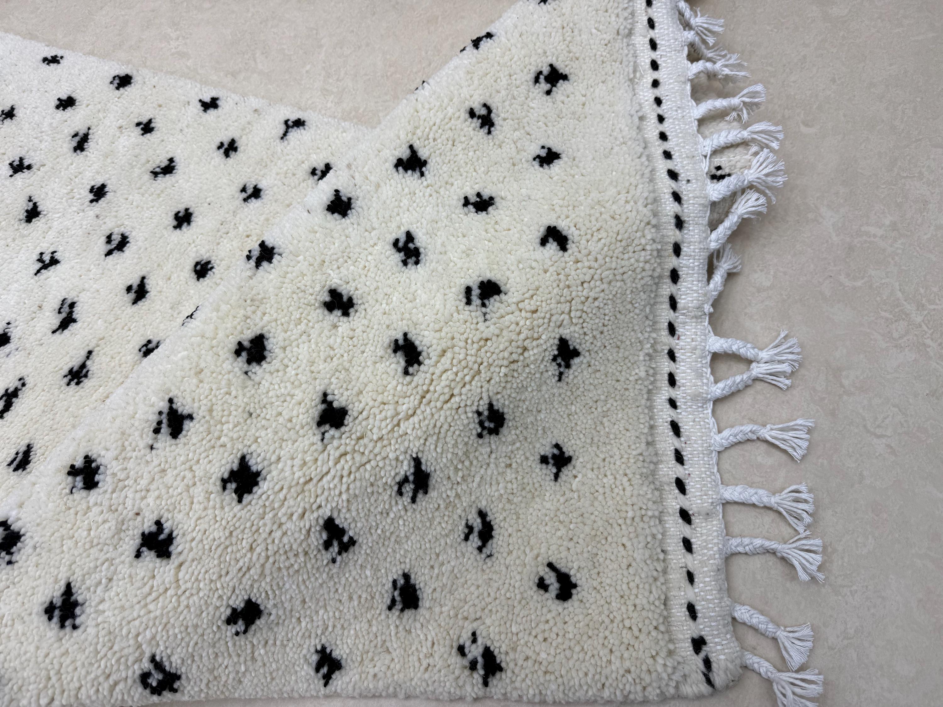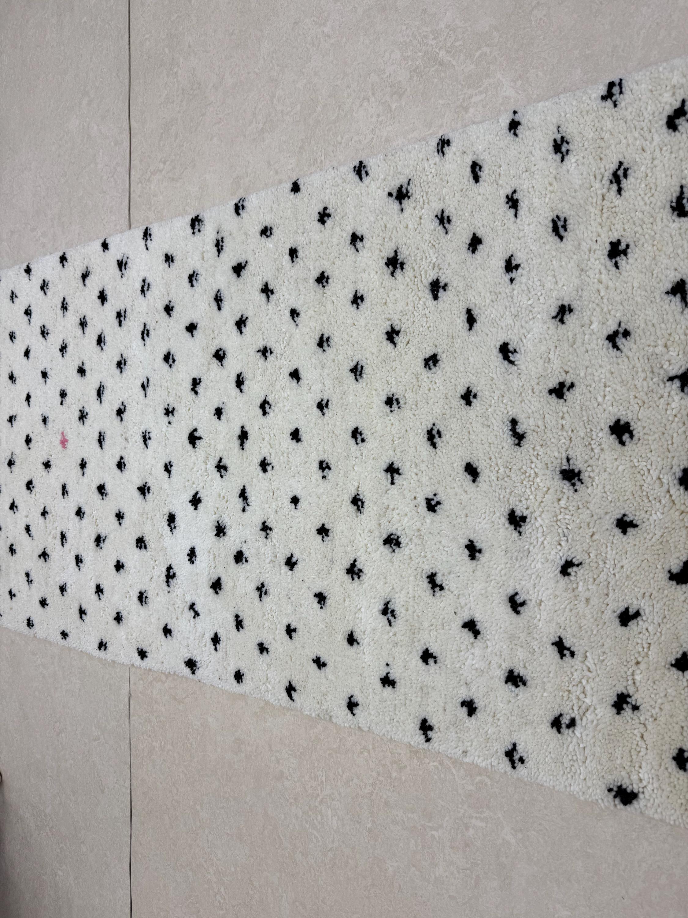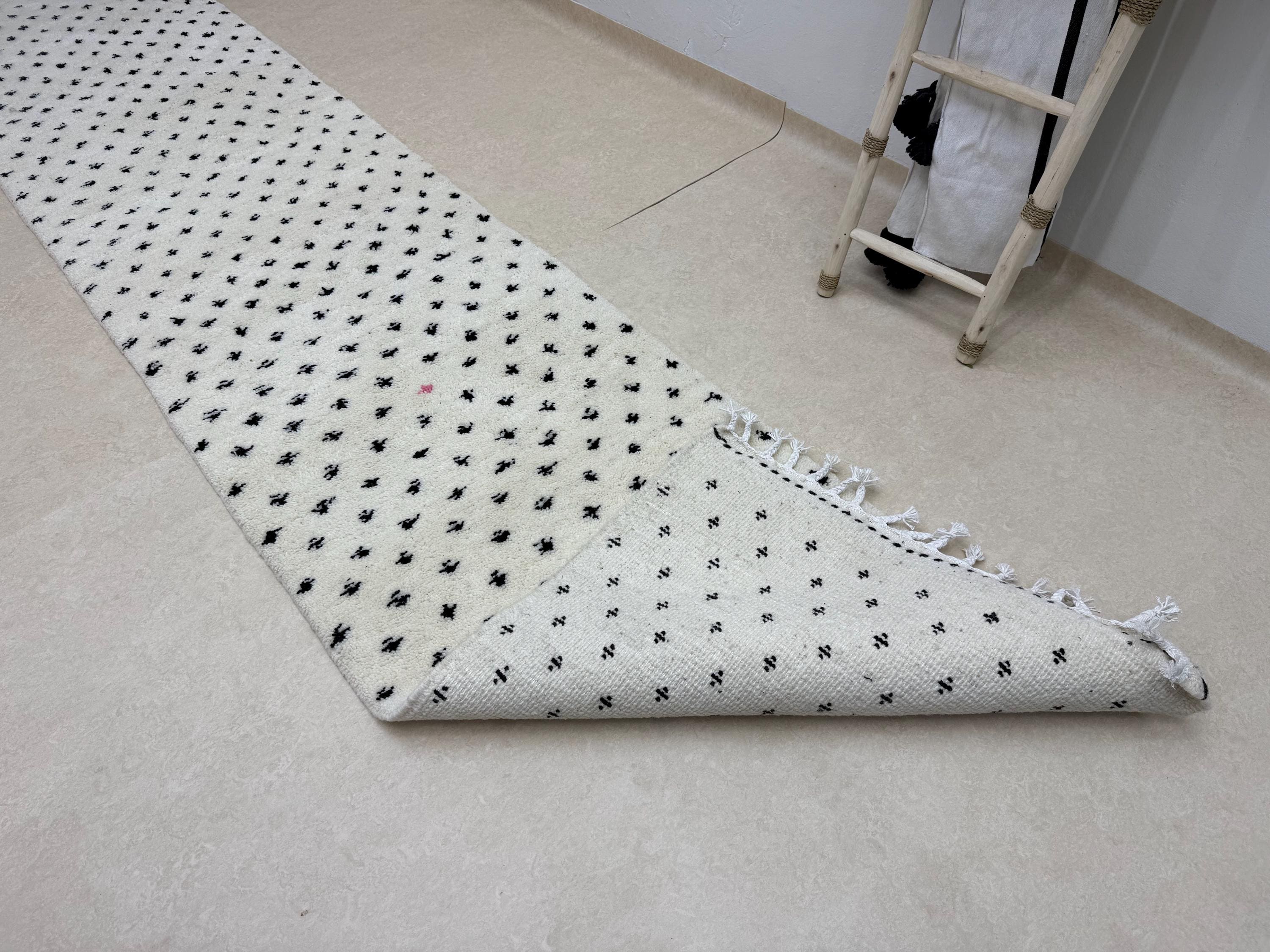 Transform your space with our Soft Hallway Runner, a stunning addition to any home. This Custom Handmade Beni Ourain Runner Rug showcases the beauty of traditional Moroccan craftsmanship. Made from luxurious wool, it features a unique dotted design in classic white and black tones, creating a striking contrast that enhances your hallway or living area. Perfect as a Berber Rug, it's not just a rug; it's a statement piece that adds warmth and elegance to your decor. Elevate your home today!