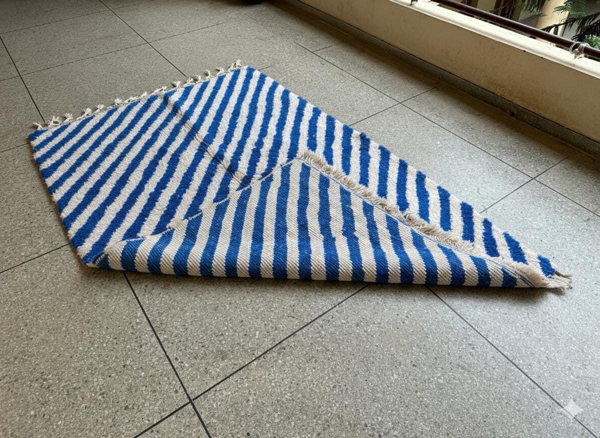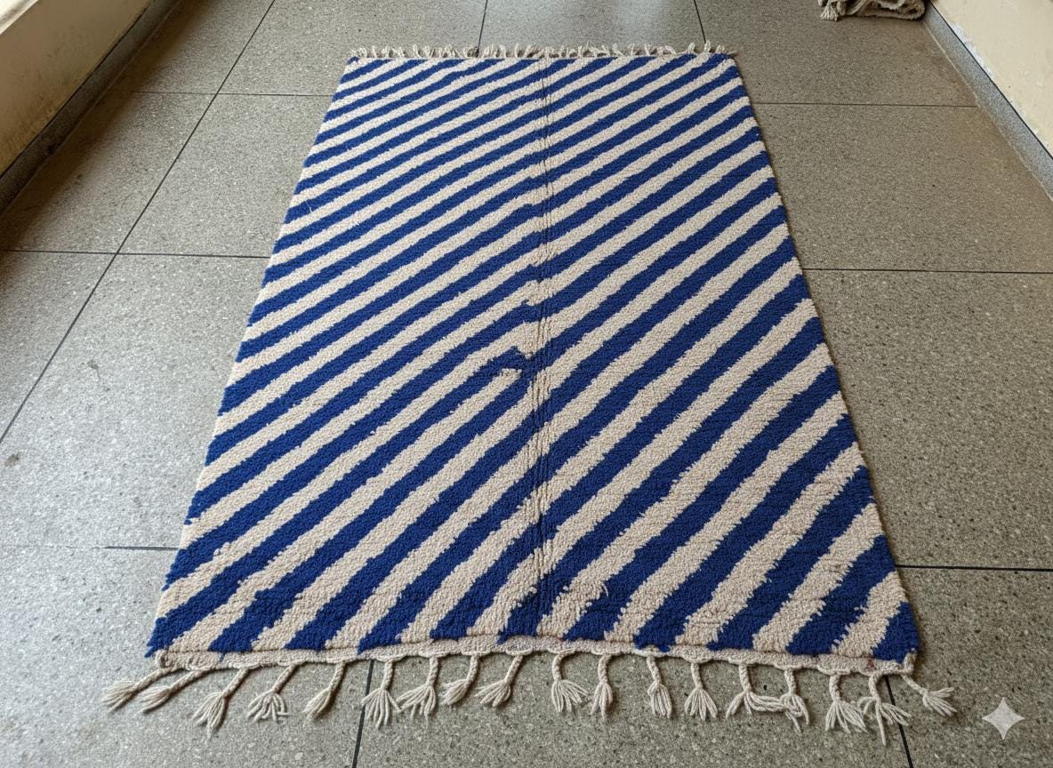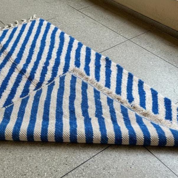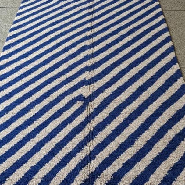 Enhance the warmth of your space with this COZY BLUE RUG. Handcrafted with care, this Custom Moroccan Rug features a blend of Berber design and modern style. Made from luxurious Beni Ourain Wool, this Handmade Striped Carpet adds a touch of elegance to any room. Embrace comfort and luxury living with this Luxe Shag Rug, perfect for contemporary homes. Elevate your decor effortlessly!