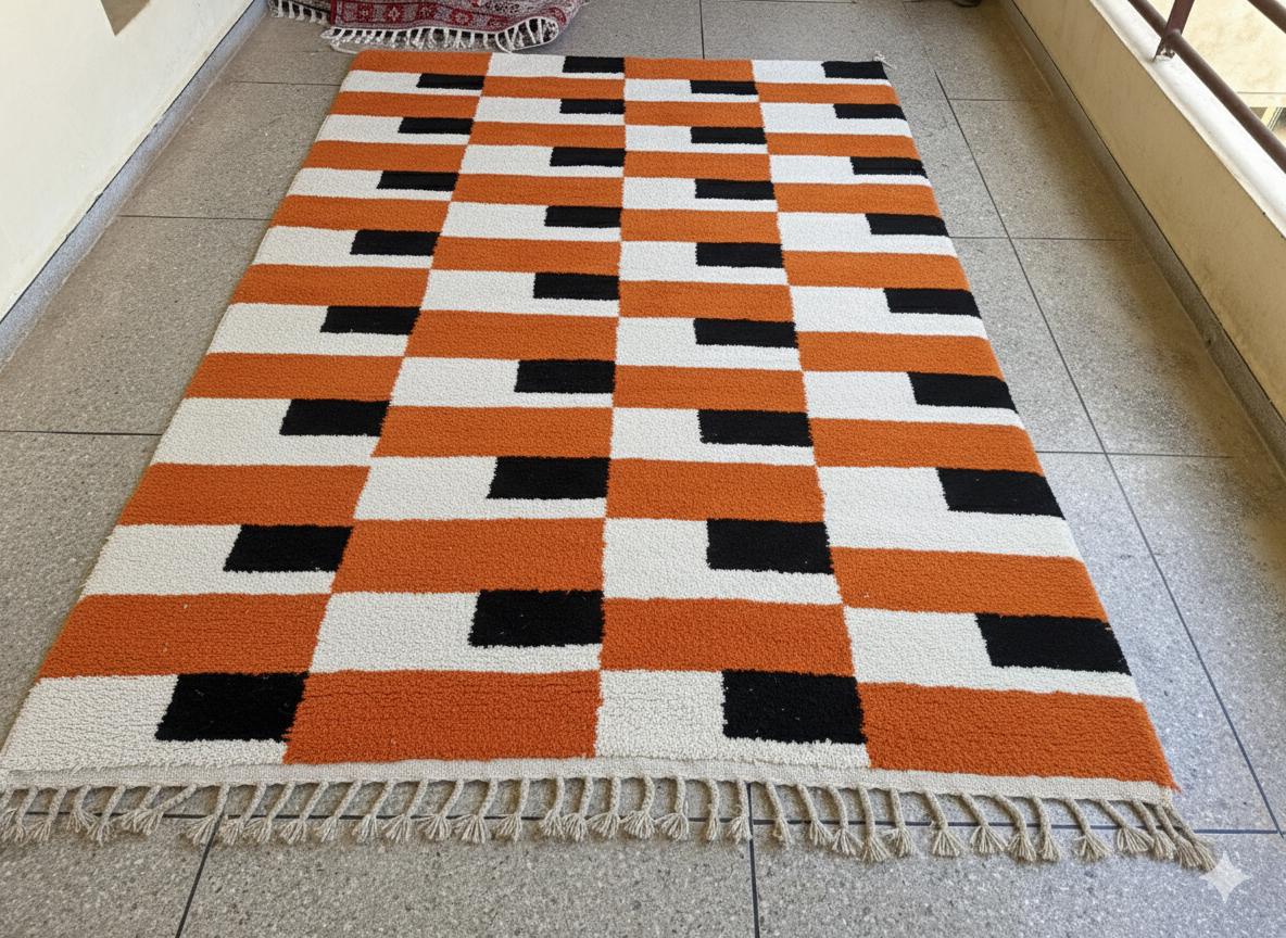 Transform your space with our stunning Custom Moroccan Wool Rug! Featuring a beautiful Beni Ourain Orange and white geometric design, this handwoven Berber carpet offers both style and comfort. Perfect as a chic square shag rug, it adds warmth and texture to any room. Each piece is crafted with care, showcasing the artistry of Moroccan weaving traditions. Elevate your home décor with this unique, artisanal addition that reflects both elegance and coziness. Order yours today and experience the charm of authentic Moroccan craftsmanship!
