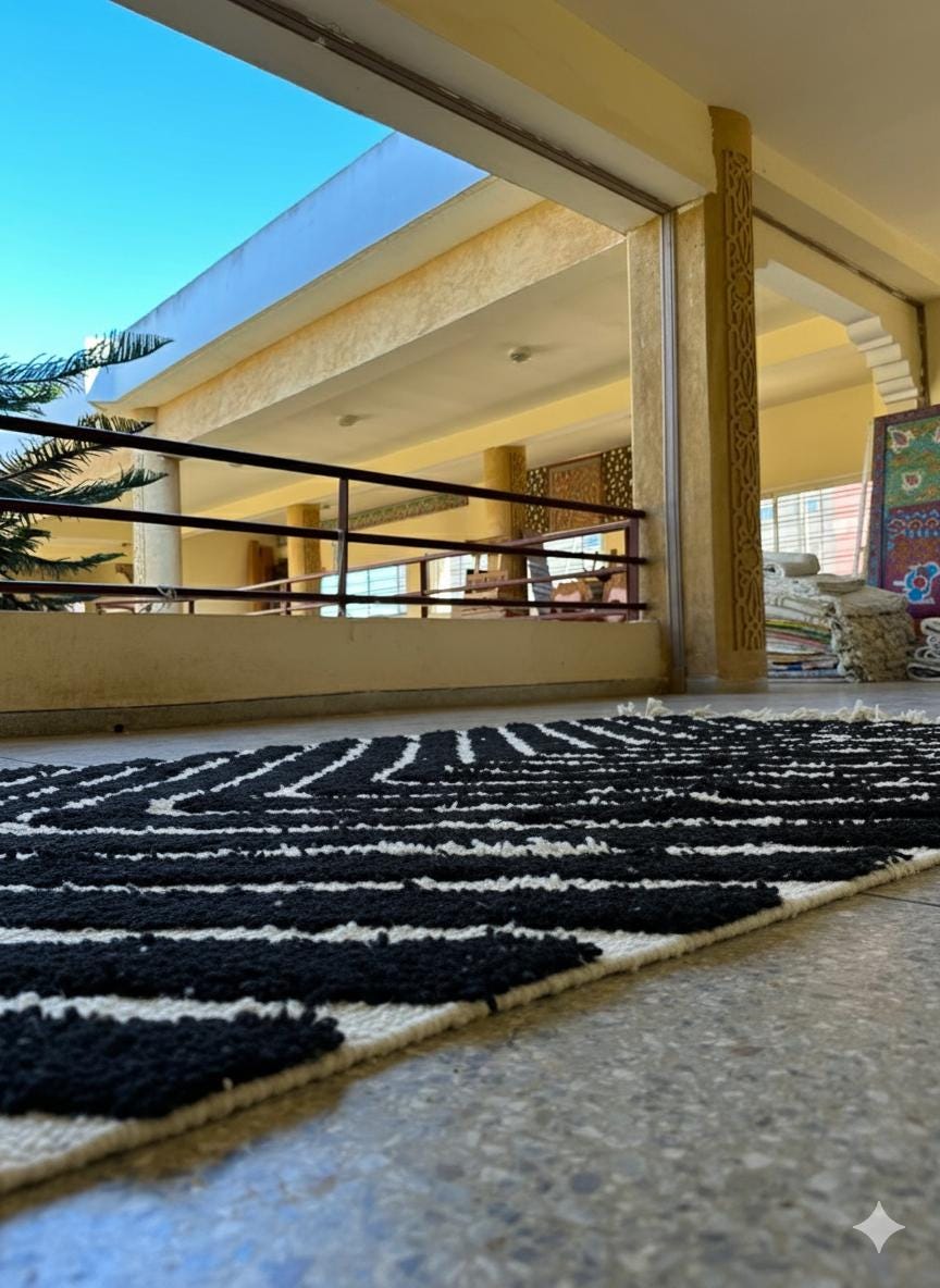 "Transform your home with a piece of Moroccan heritage that exudes both elegance and warmth 🌟. Whether placed under your sofa 🛋️, in your bedroom 🛏️, or even as a wall hanging 🖼️, these rugs invite a sense of history, style, and comfort 🧶✨. Explore our full collection of Beni Ourain, Azilal, and Boucherouite rugs for unique pieces that tell a story 📚💫."
